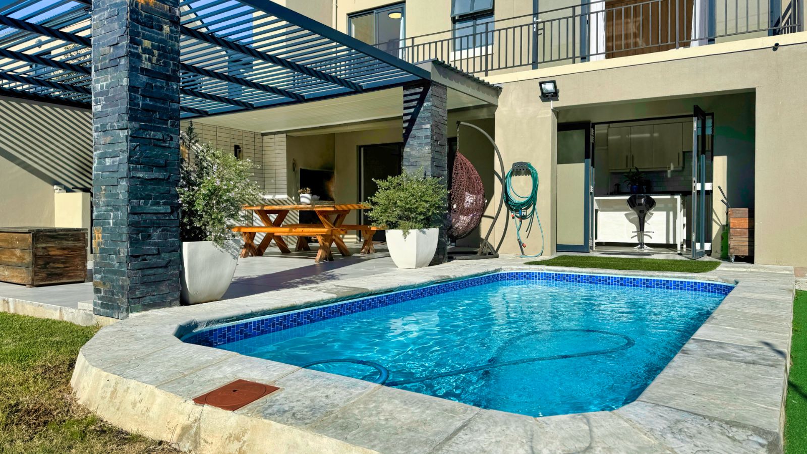 - Indoor-Outdoor Flow: Open-plan living and dining areas connect to an expansive enclosed garden with a braai area, pergola, swimming pool, golf putting green, children’s lawn, and vegetable/herb garden.