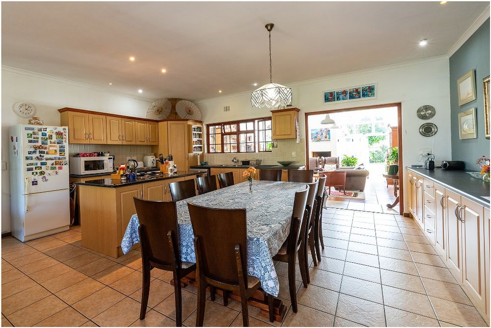 This beautiful home consists of an open-plan lounge with built-in book shelves and a wall unit, dining room and a well- designed kitchen with lots of cupboards and space for washing machine and dishwasher.