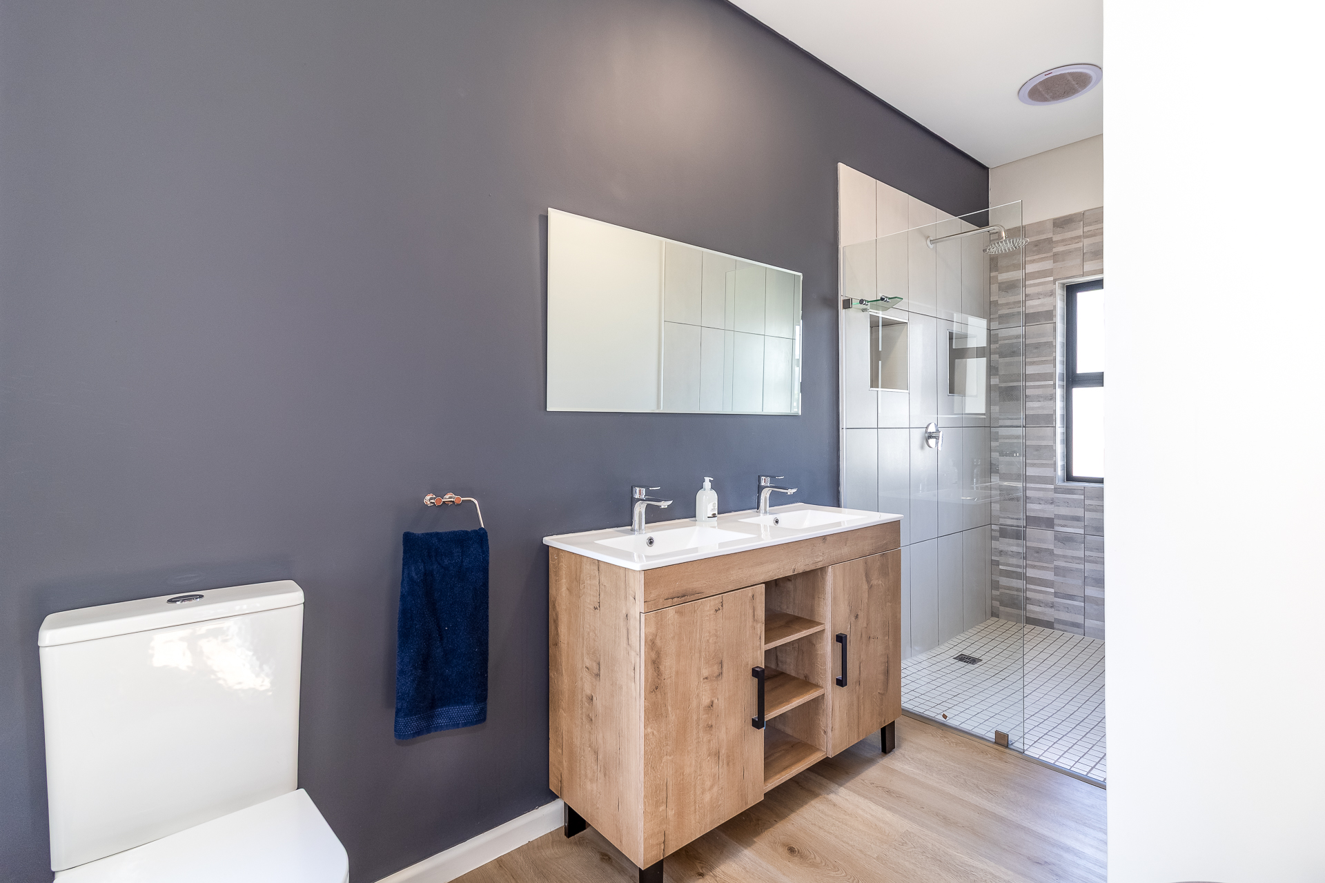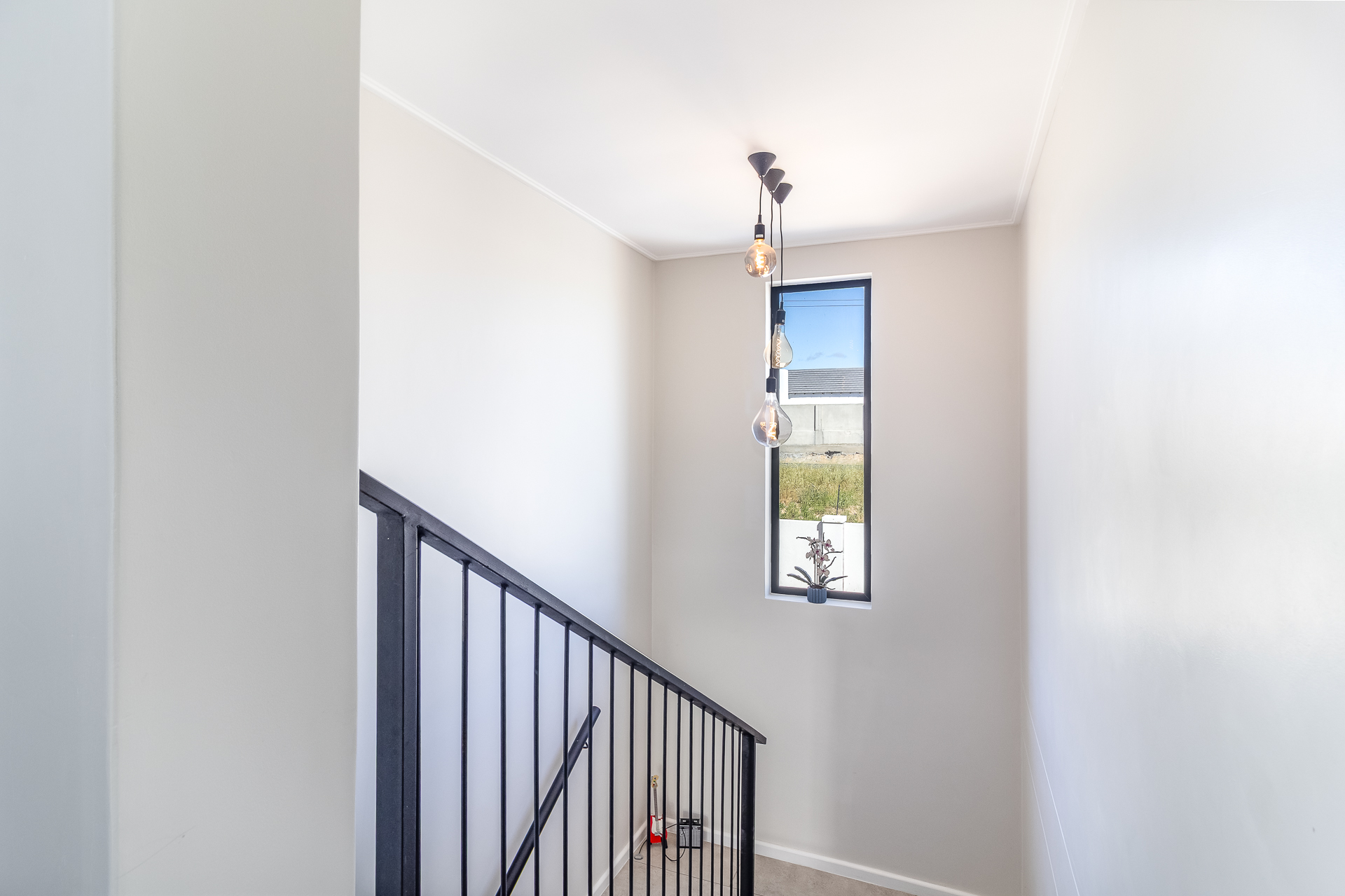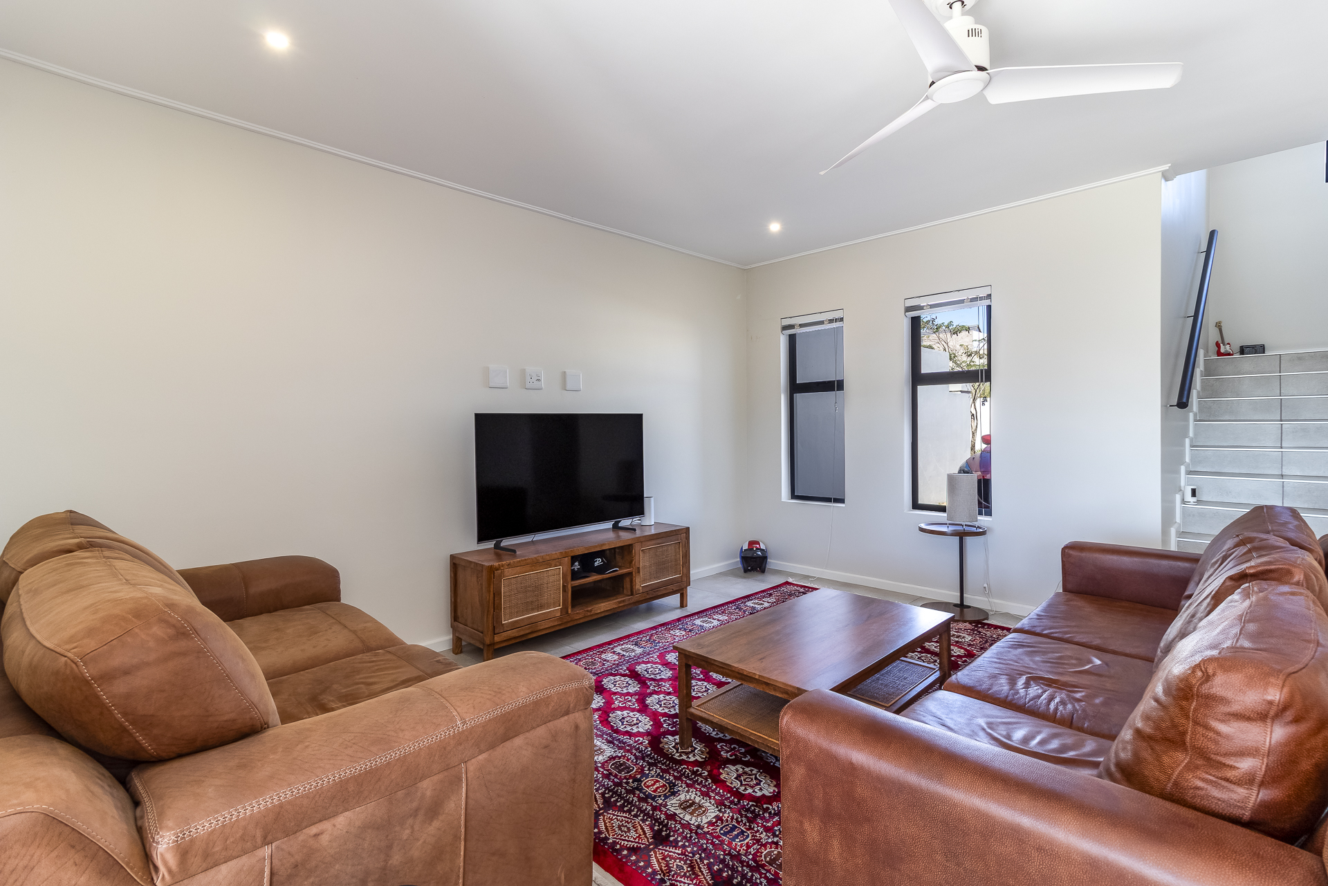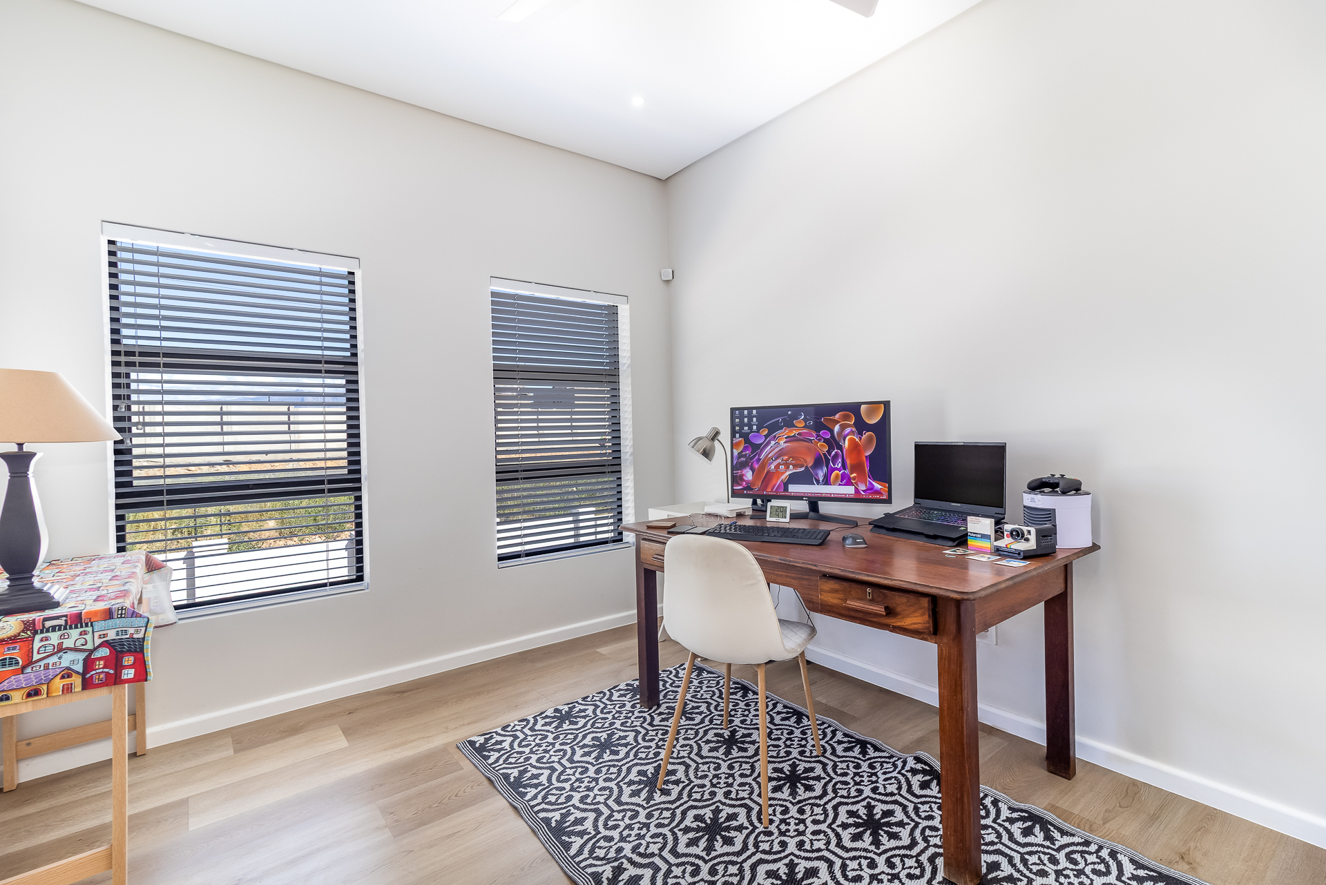 Upstairs, you'll find three generously sized bedrooms and two bathrooms, including a master en-suite. Each room is fitted with ceiling fans and ample storage space. The main bedroom also features air conditioning and a spacious en-suite bathroom. Completing this home is a single garage along with extra parking. Additional highlights include an inverter with batteries, solar panels, two air conditioning units, and a prime position within the estate.