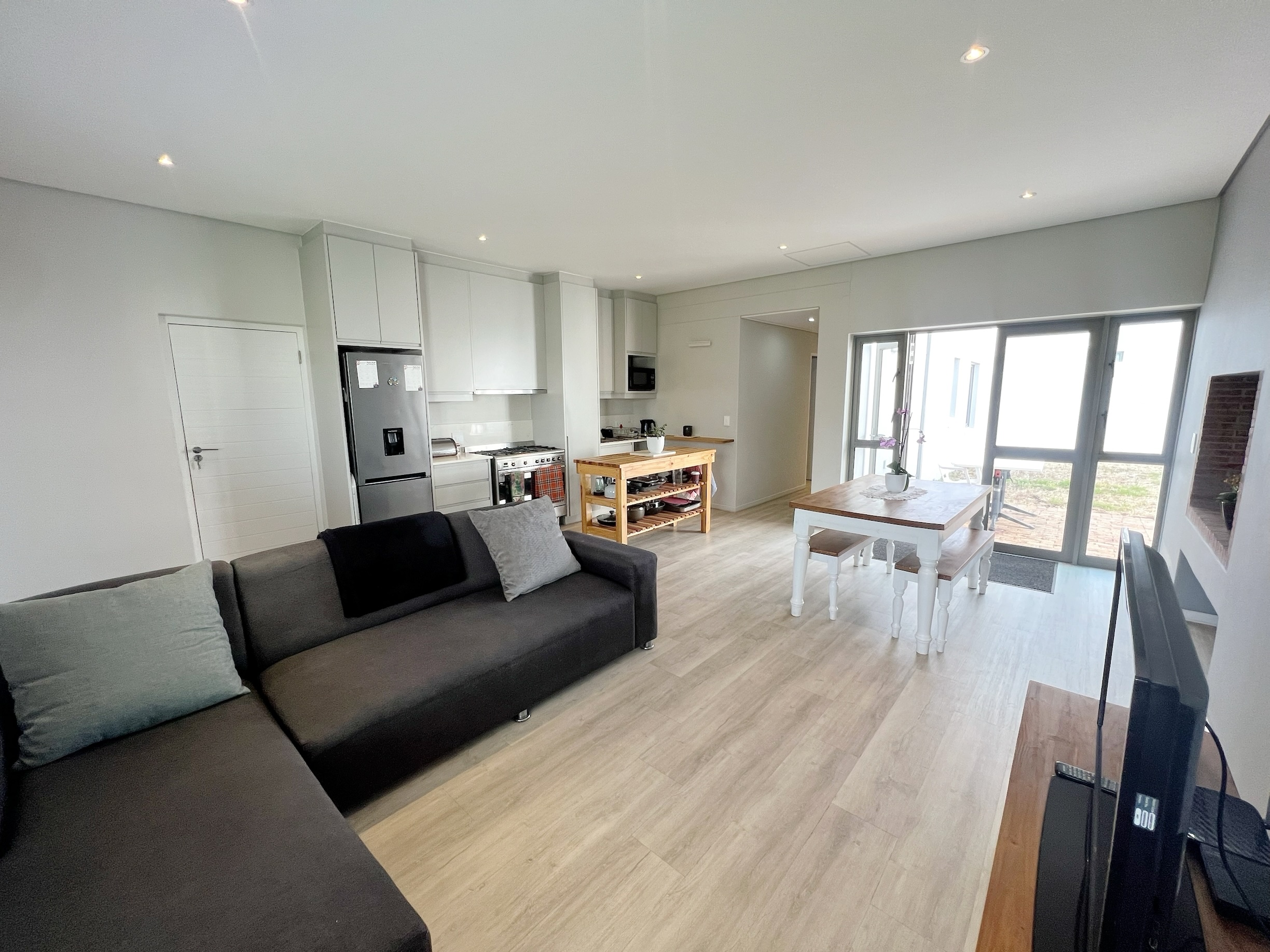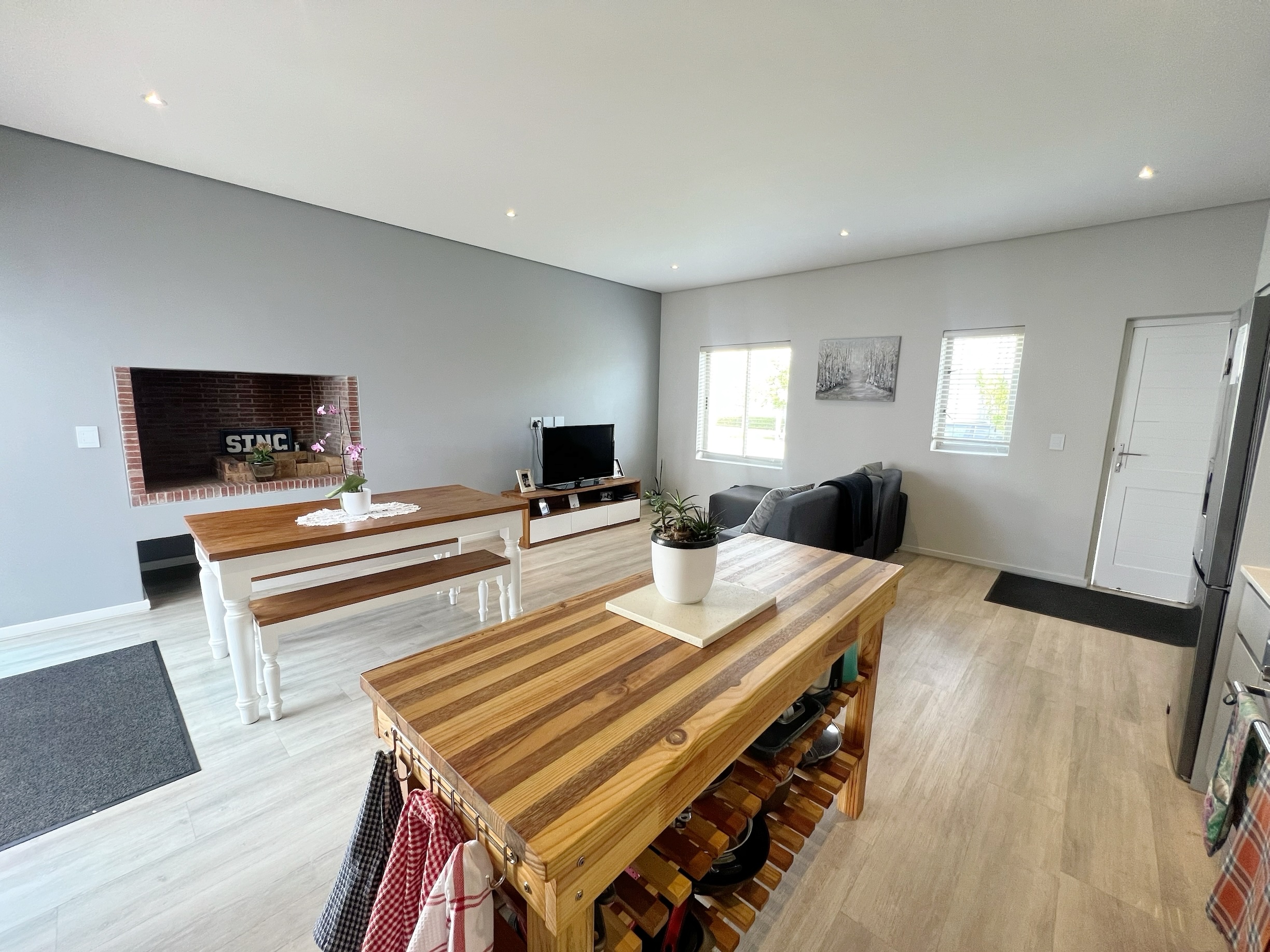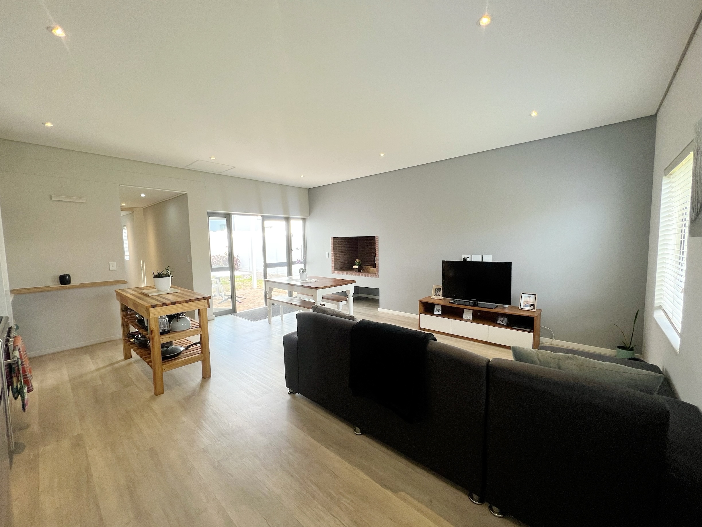 Step into a beautifully designed home boasting high-quality modern finishes throughout. The open-plan layout flows seamlessly between the living room, dining area (complete with a built-in braai), and a contemporary kitchen equipped with a SMEG gas hob and electric oven—perfect for effortless cooking and entertaining.