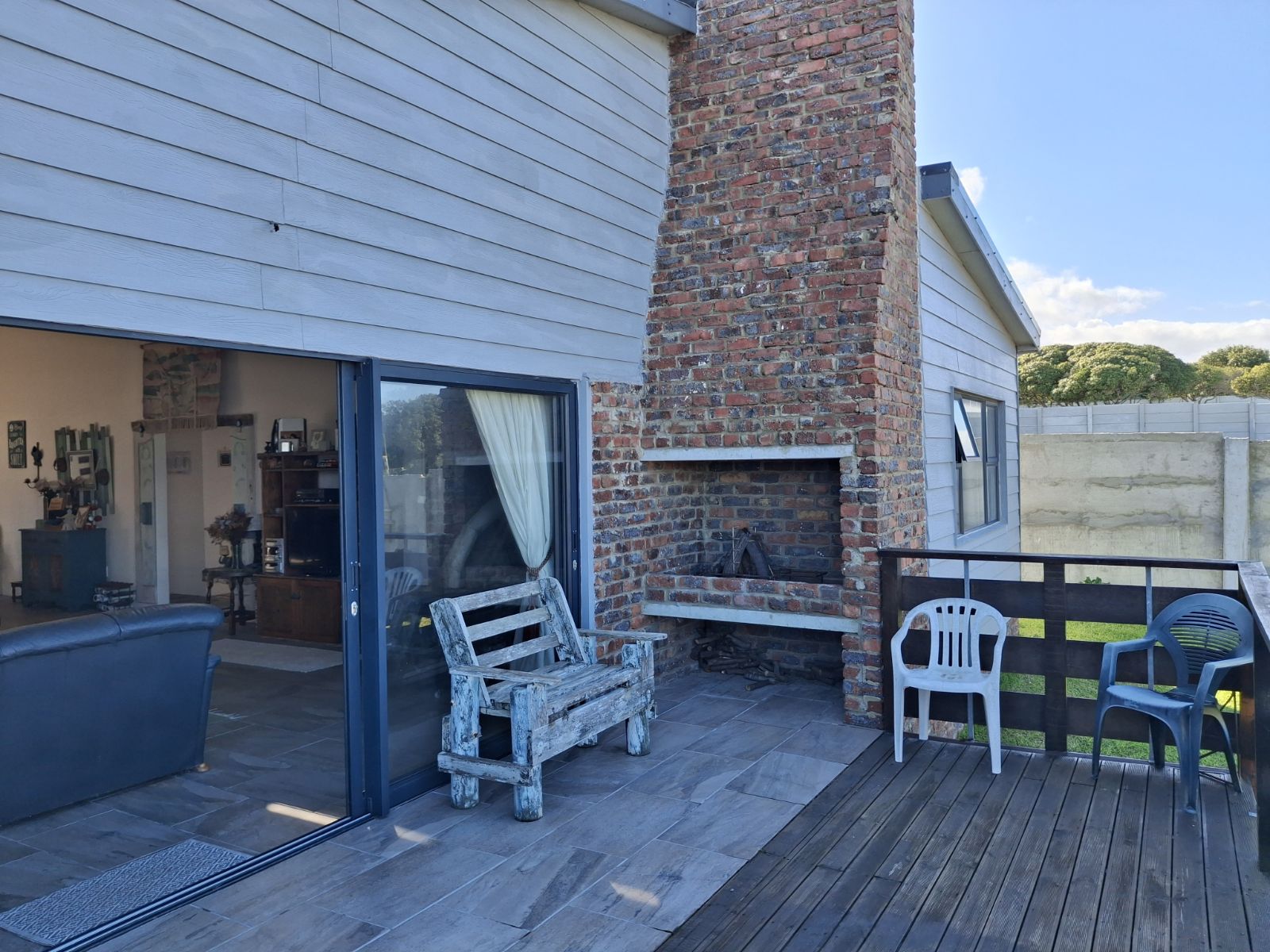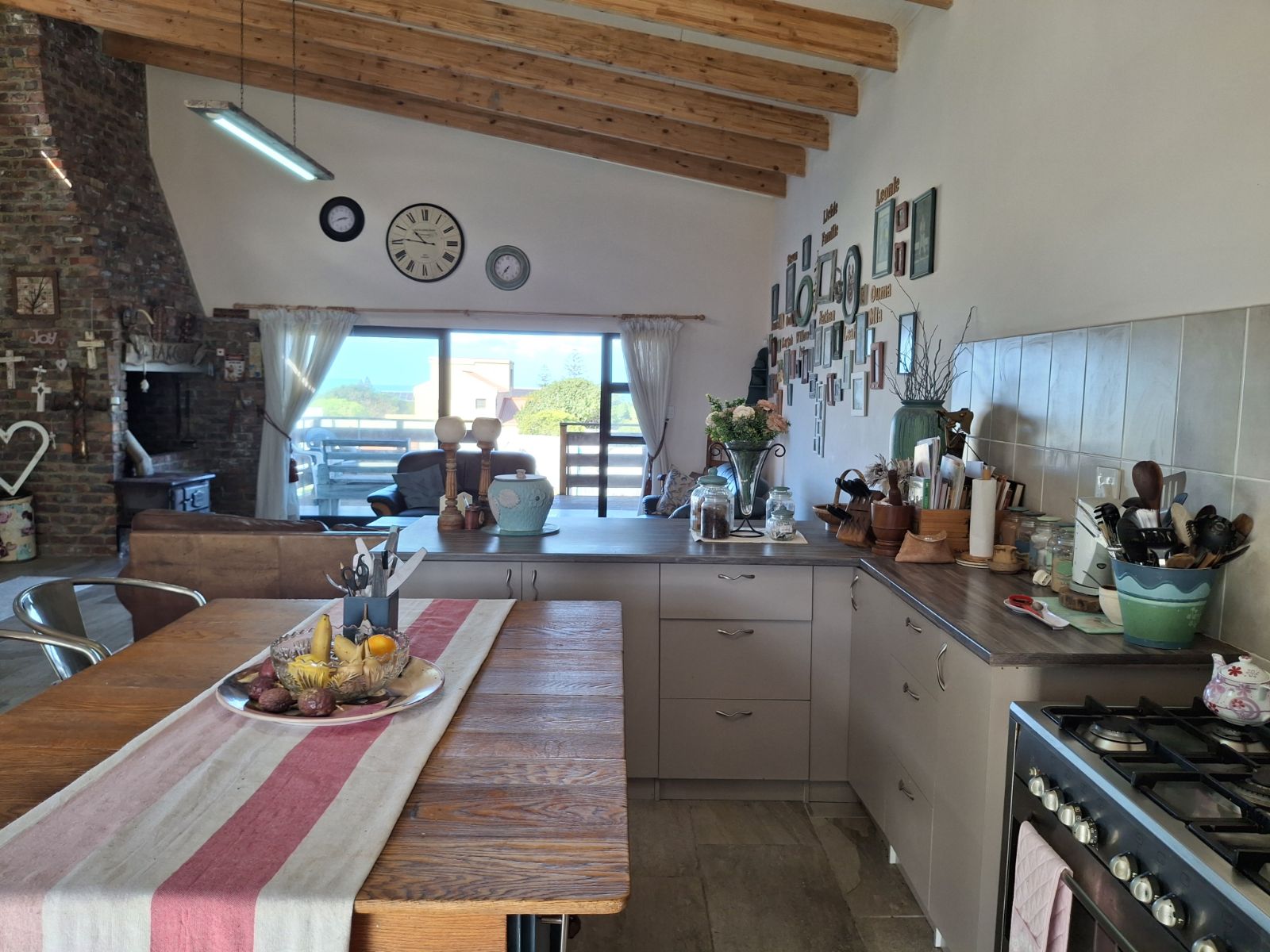 Step inside and fall in love with the open-plan living, dining and kitchen area featuring high ceilings and exposed trusses — creating a light, airy feel perfect for entertaining. A large indoor braai flows seamlessly onto the covered stoep and wooden deck, where you can enjoy ocean views and fresh sea air.