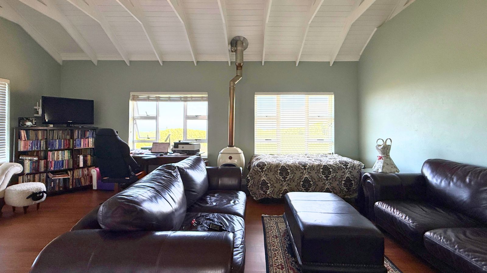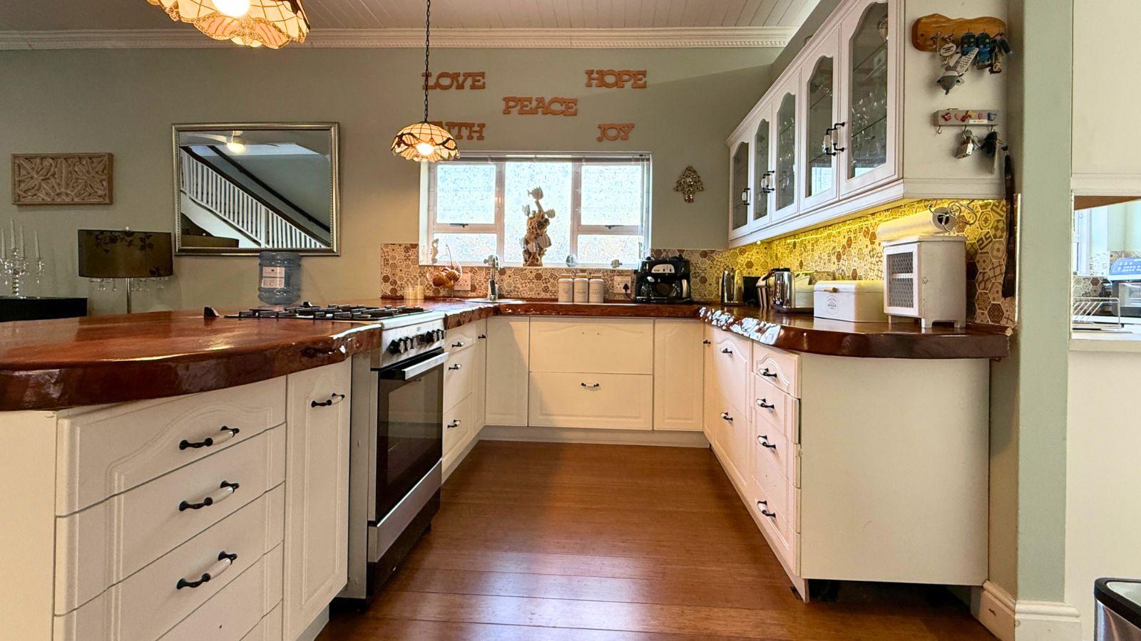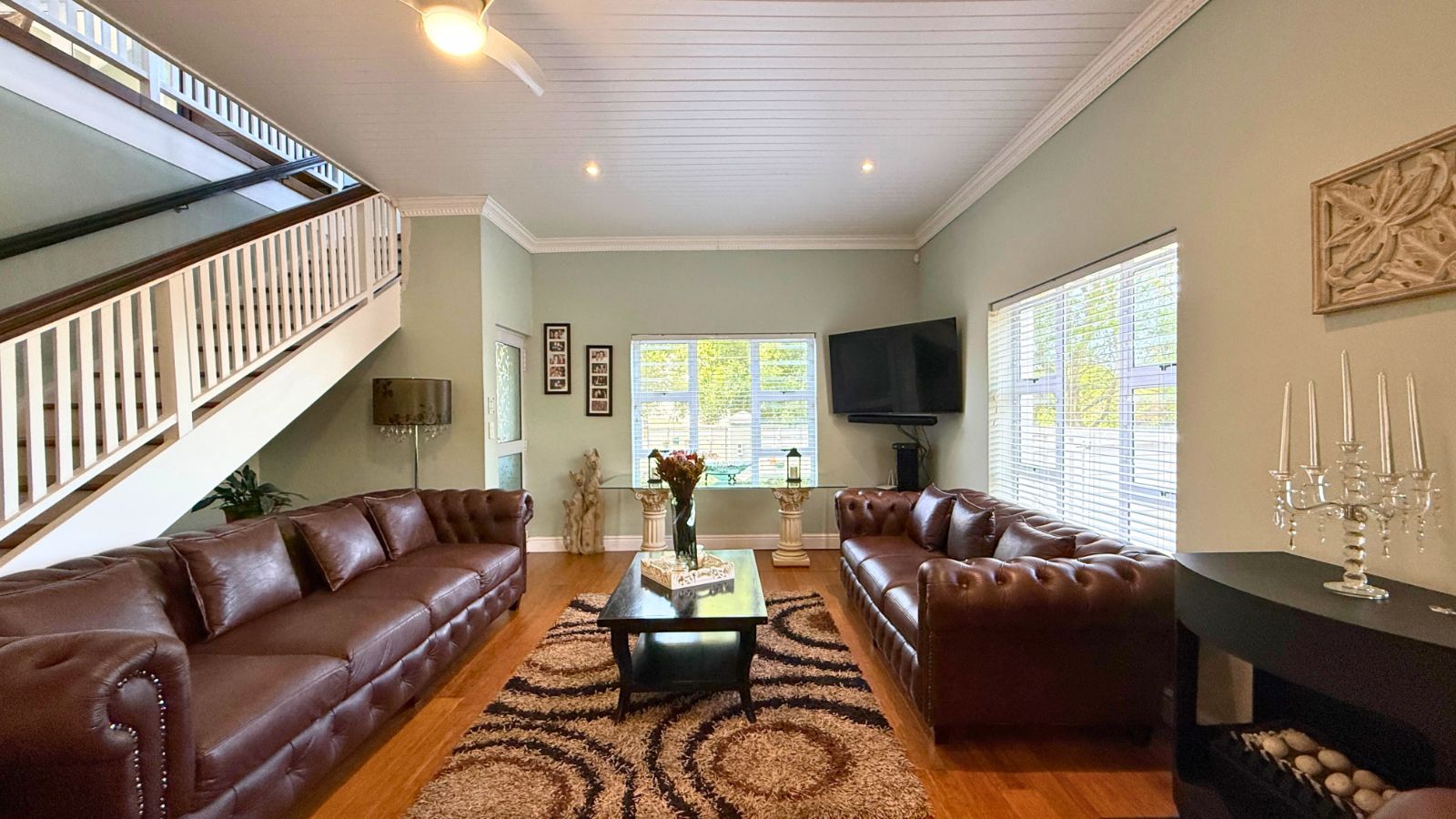 This unique property offers the perfect balance of family connection and independent space, featuring three complete living areas. The main residence boasts four large bedrooms, three downstairs and one upstairs, each with its own luxurious en suite bathroom, plus a convenient guest toilet. The downstairs area is an entertainer's dream, centred around a spacious, enclosed braai room and a gourmet kitchen with a separate pantry and scullery. The main lounge is warmed by a state-of-the-art piped gas flueless fireplace with a decorative pebble fuel bed, and the main bedroom's en suite downstairs is further enhanced with a heated towel rail, adding a touch of everyday luxury.