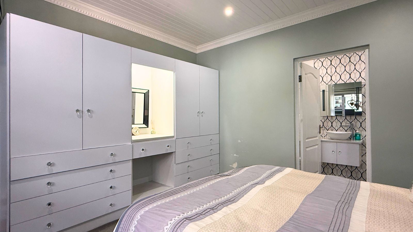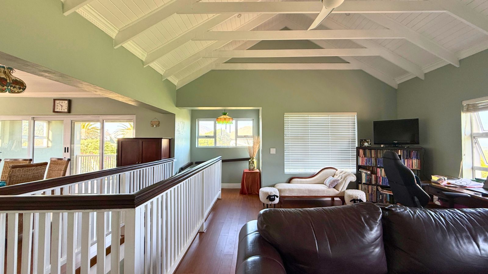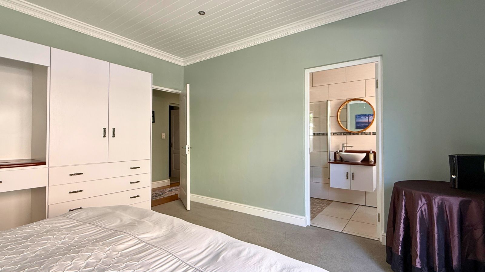 This unique property offers the perfect balance of family connection and independent space, featuring three complete living areas. The main residence boasts four large bedrooms, three downstairs and one upstairs, each with its own luxurious en suite bathroom, plus a convenient guest toilet. The downstairs area is an entertainer's dream, centred around a spacious, enclosed braai room and a gourmet kitchen with a separate pantry and scullery. The main lounge is warmed by a state-of-the-art piped gas flueless fireplace with a decorative pebble fuel bed, and the main bedroom's en suite downstairs is further enhanced with a heated towel rail, adding a touch of everyday luxury.