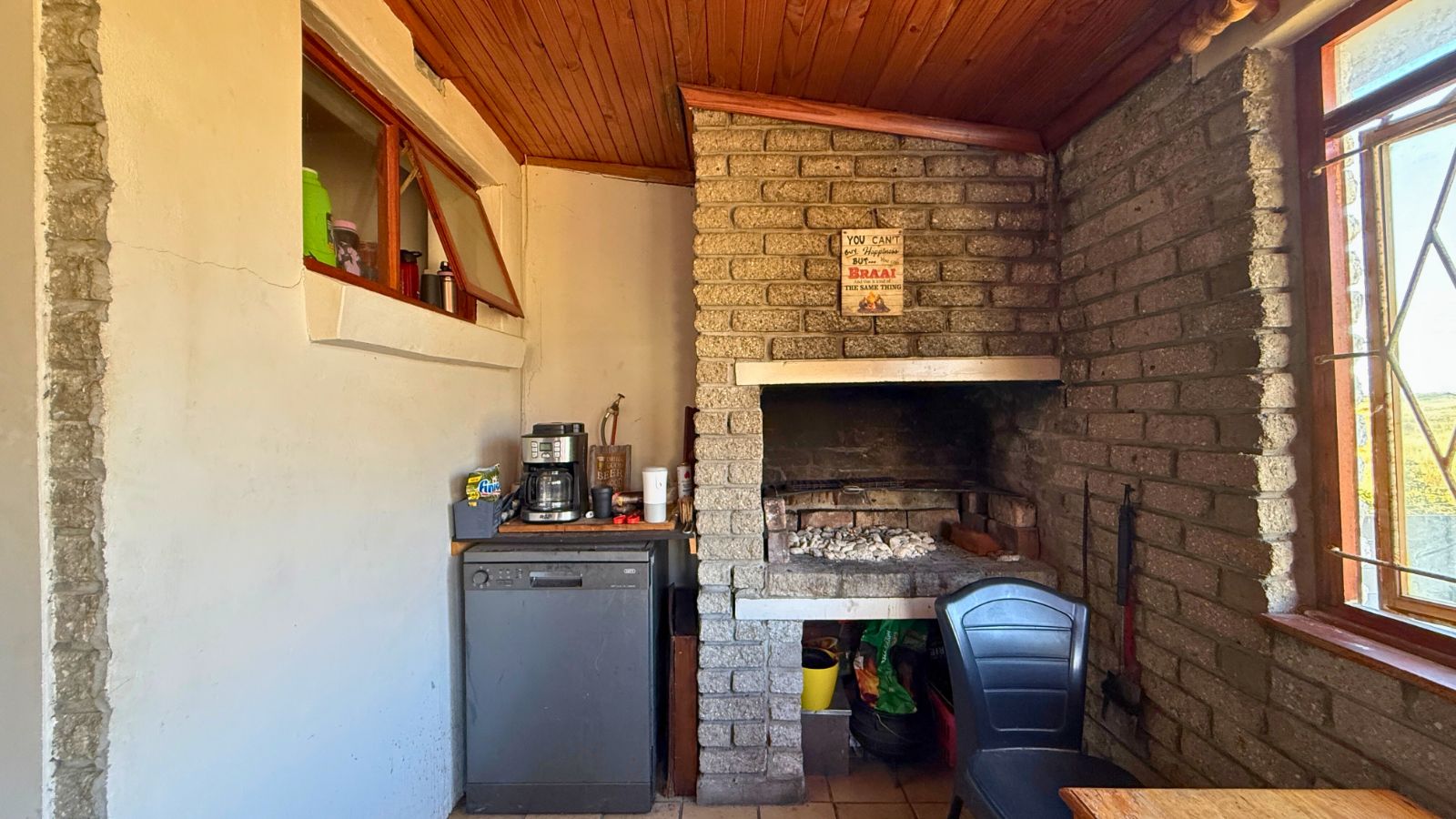 Welcome to this solid, low-maintenance face brick family home at 9 Bosbok Street, well situated in a tranquil, established pocket of Kleinbaai. Designed for comfortable family living and year round coastal enjoyment, this property offers a seamless blend of practicality and peaceful seaside charm. The open plan layout ensures family connection, flowing from the sunny lounge and dining area directly into the well appointed kitchen, which includes a convenient small scullery for easy cleanup. The home is completed by a popular enclosed braai room, ensuring your family gatherings and entertaining can happen in any weather.