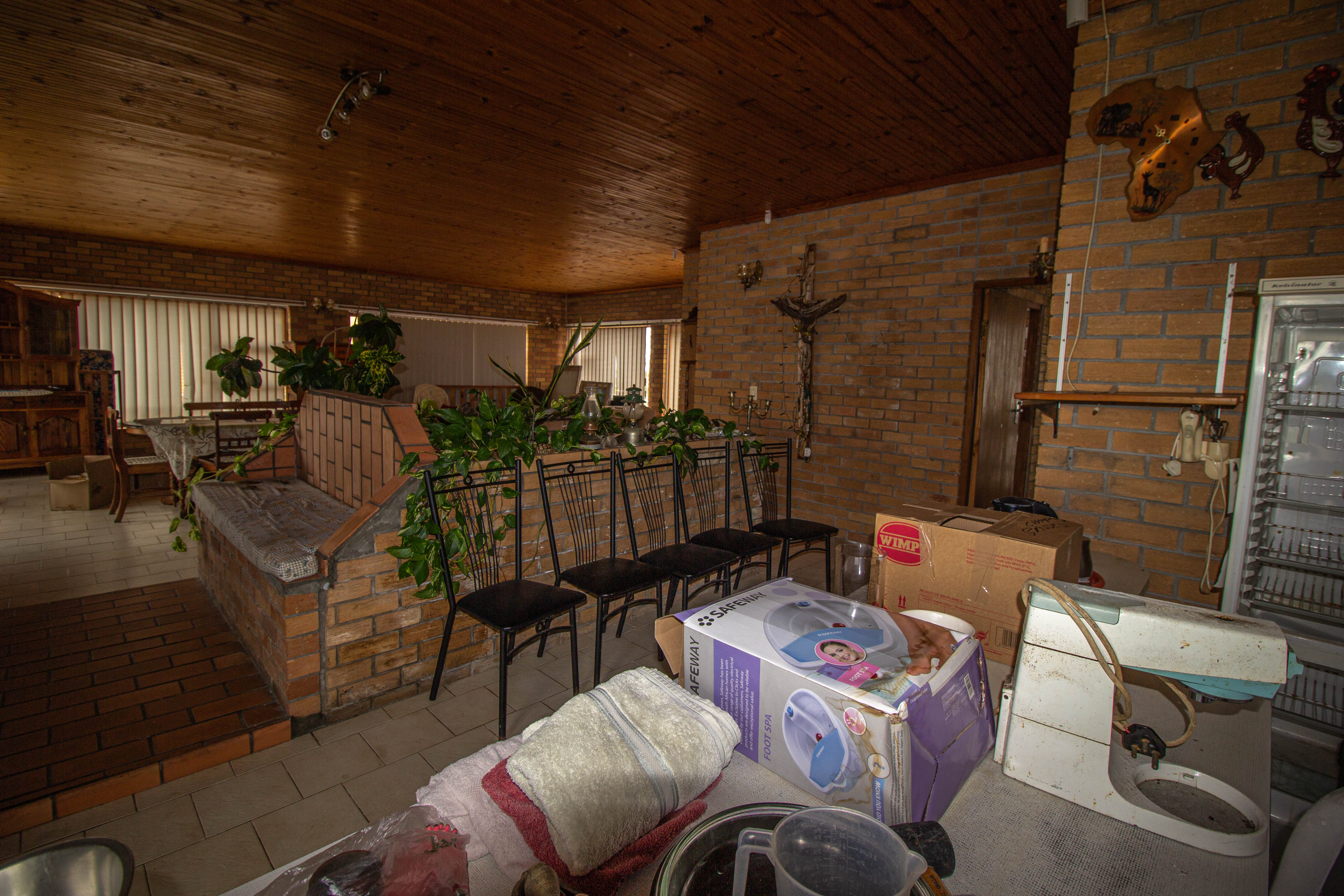The rest of the first floor is one big entertainment area with a wrap-around balcony and large sliding doors offering views in all directions. There is a guest cloakroom and a open plan kitchen with glass sliding doors opening up onto a entertainment size balcony/deck facing the mountains and golf course. This expansive space is what you make of it, but can accommodate a large dining area, lounge and office. There is a build in braai, open to the kitchen and the deck.