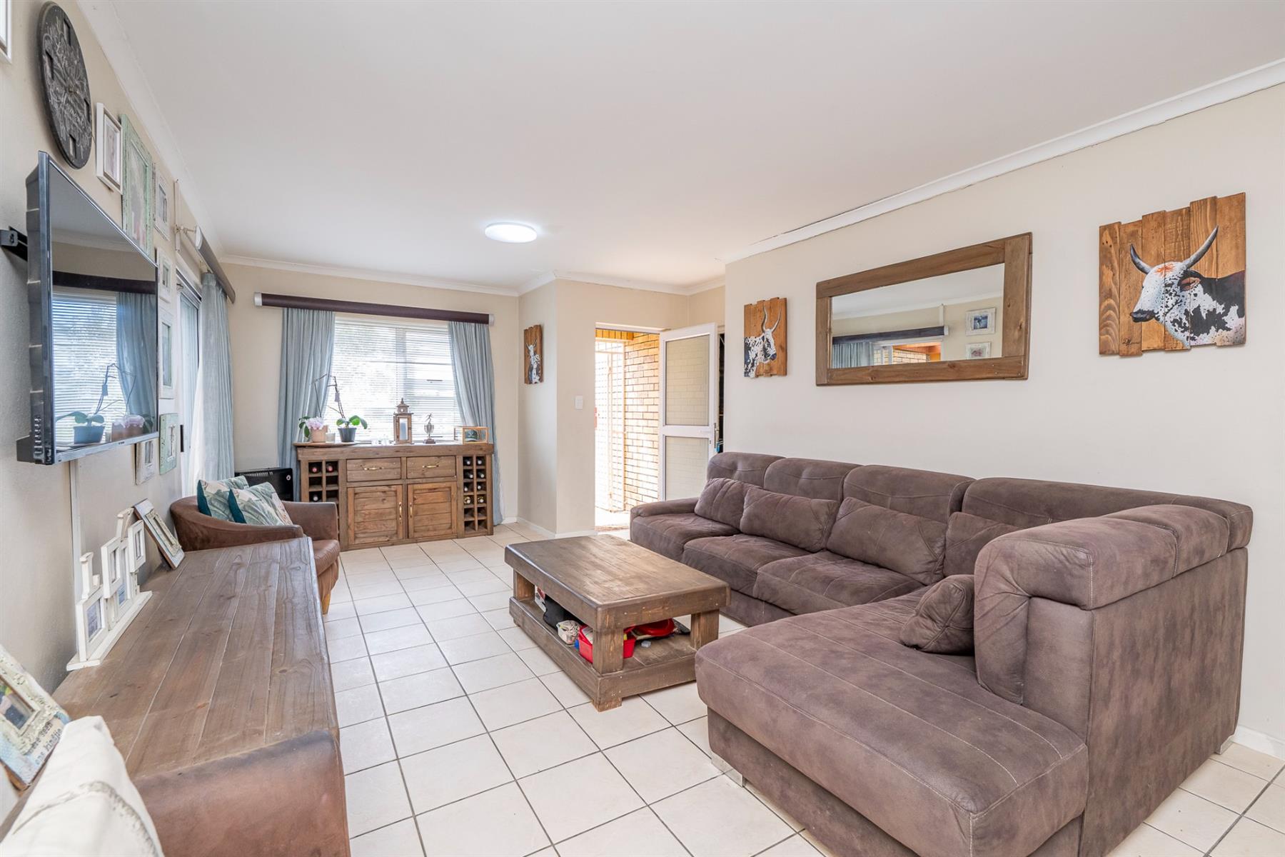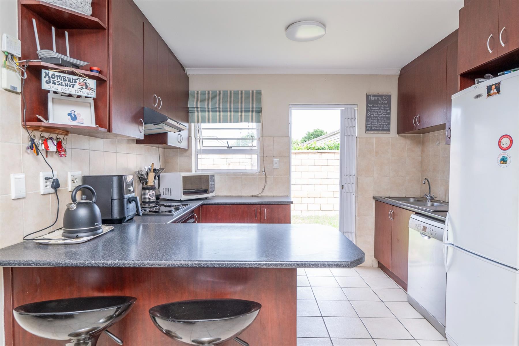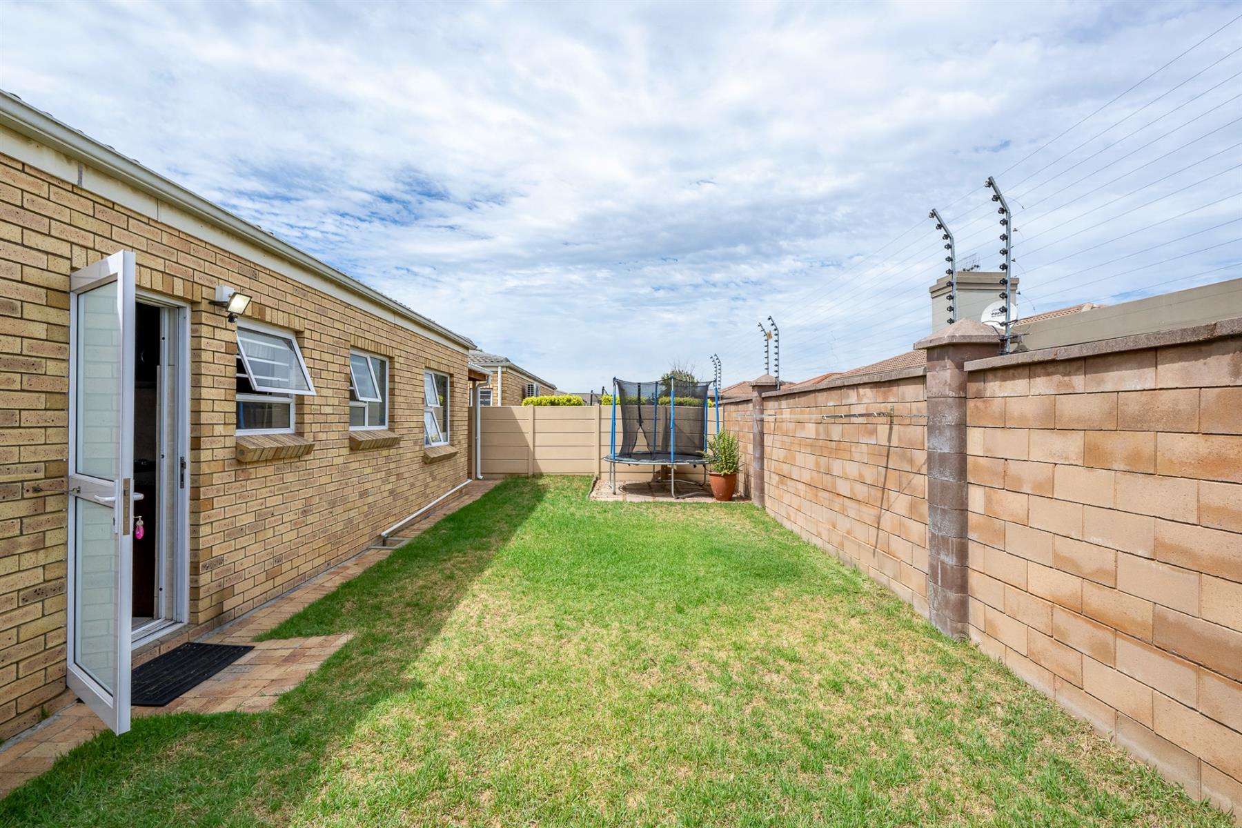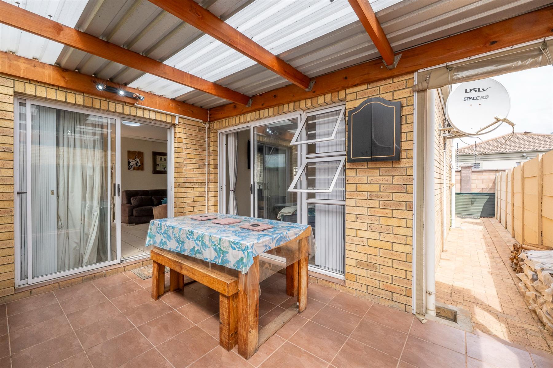 From the living area, the front garden provides a sense of privacy and greenery, enhancing the overall atmosphere of the home.The private, low-maintenance backyard borders Kleinbron Estate with a secure boundary wall, enhancing both the home’s appeal and long-term value.