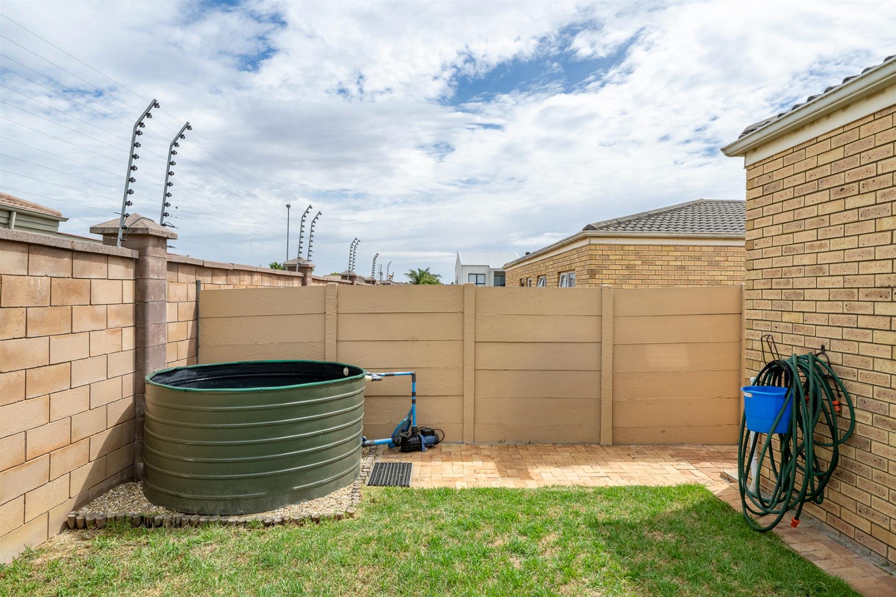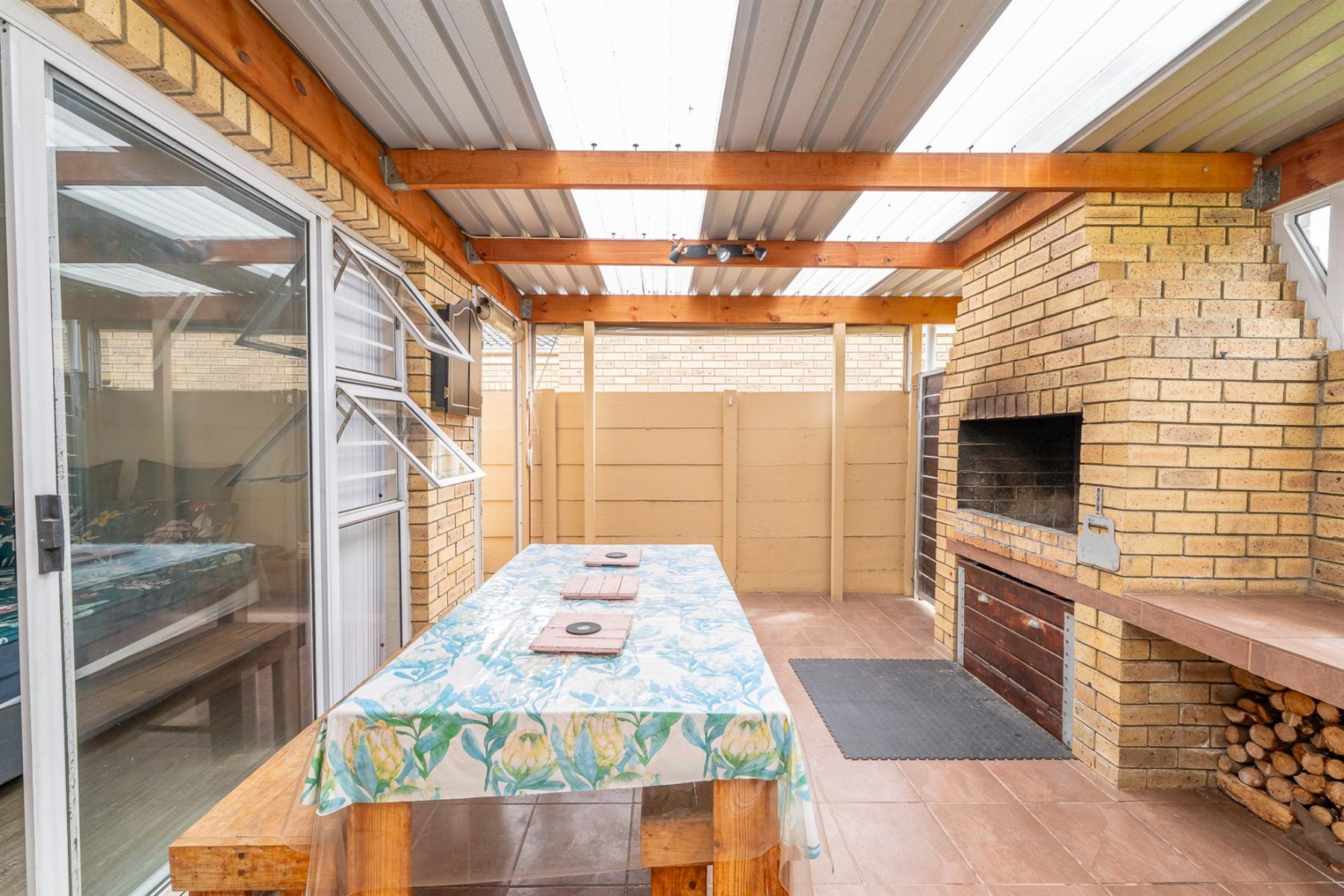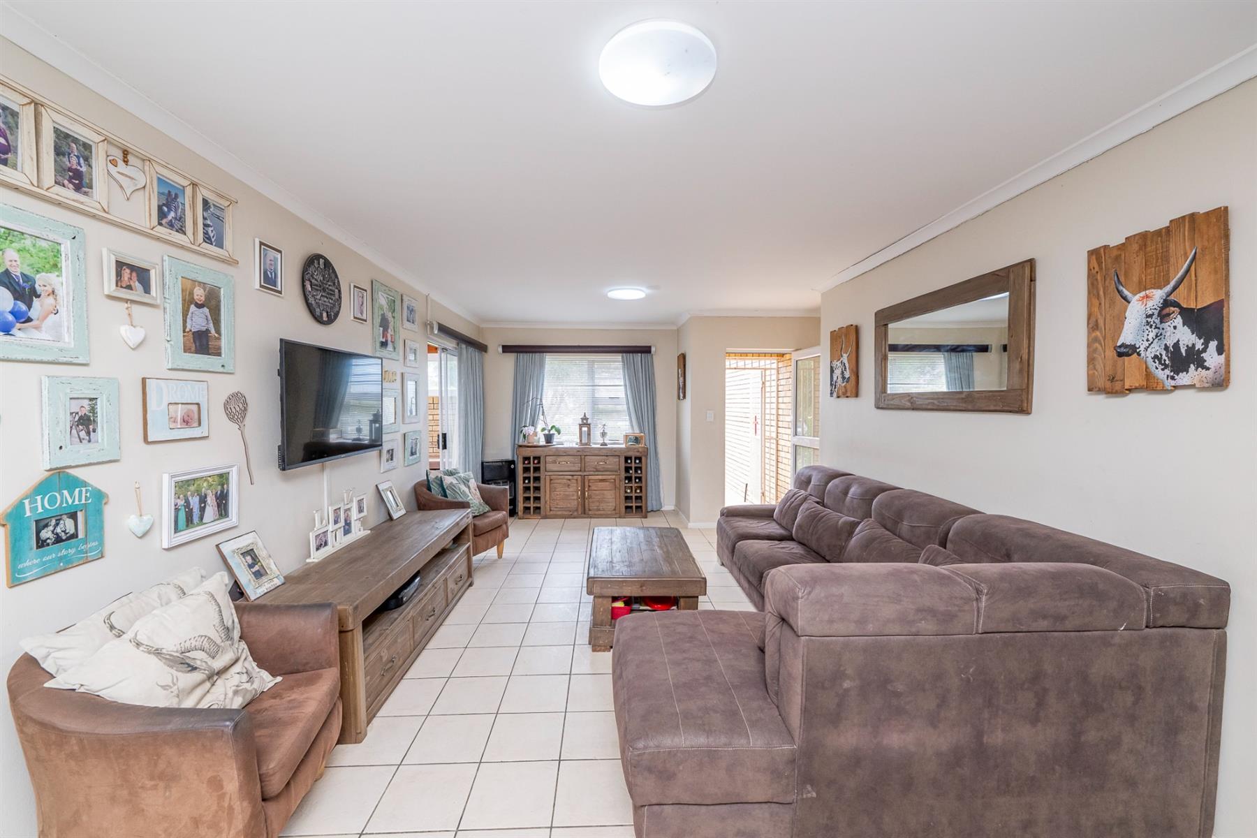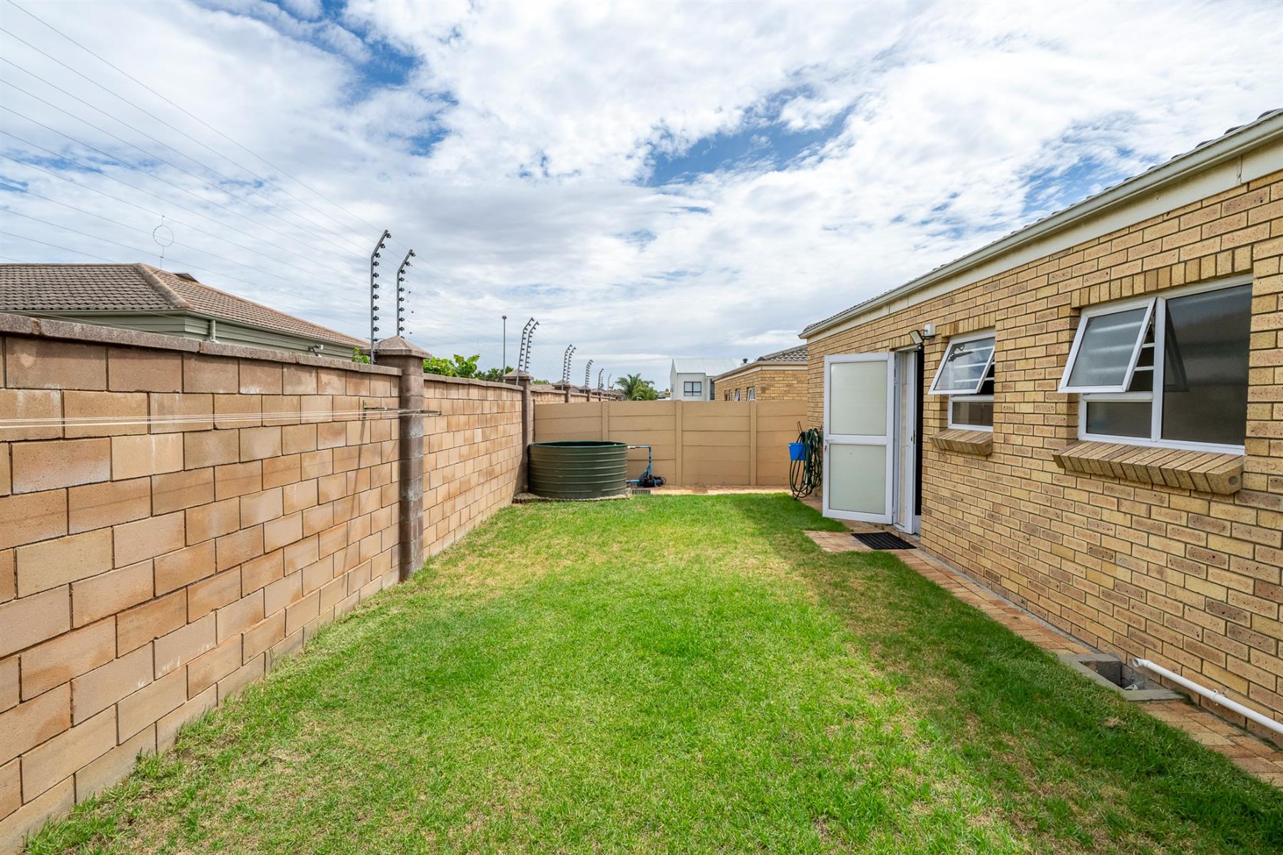 From the living area, the front garden provides a sense of privacy and greenery, enhancing the overall atmosphere of the home.The private, low-maintenance backyard borders Kleinbron Estate with a secure boundary wall, enhancing both the home’s appeal and long-term value.