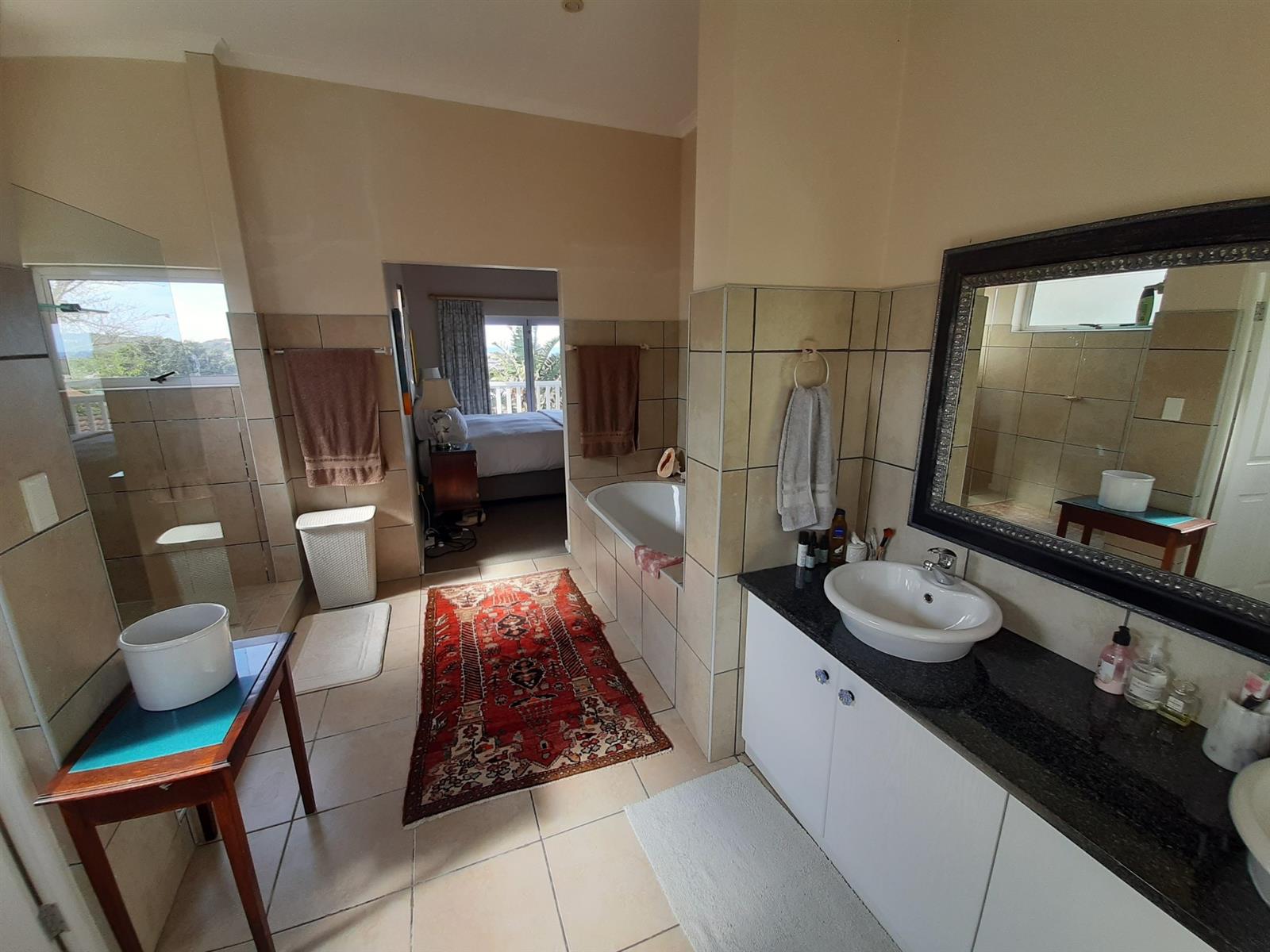 The property also boasts a large double garage with a storeroom, an inverter and solar system for energy efficiency, and four tanks supplying fresh water throughout the house. All the windows are aluminum, and the roof chromadek, ensuring the home is not only beautiful but durable and practical.