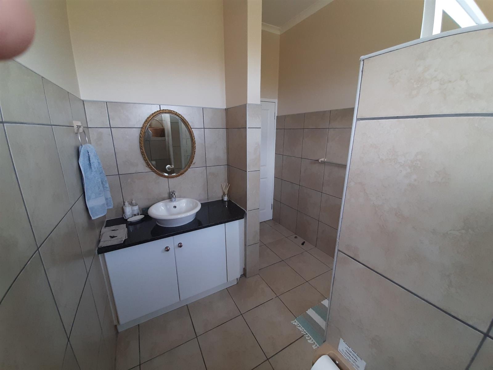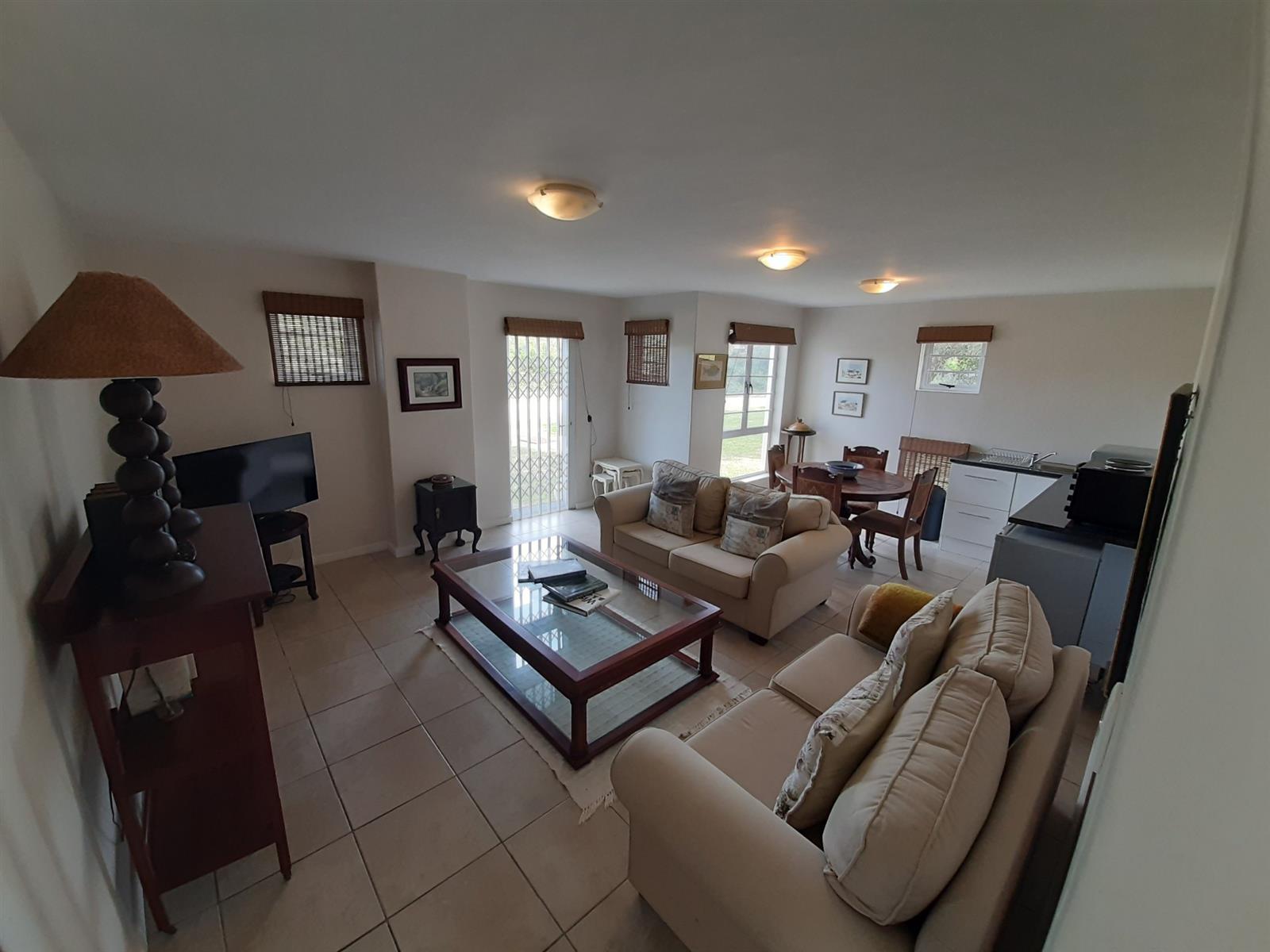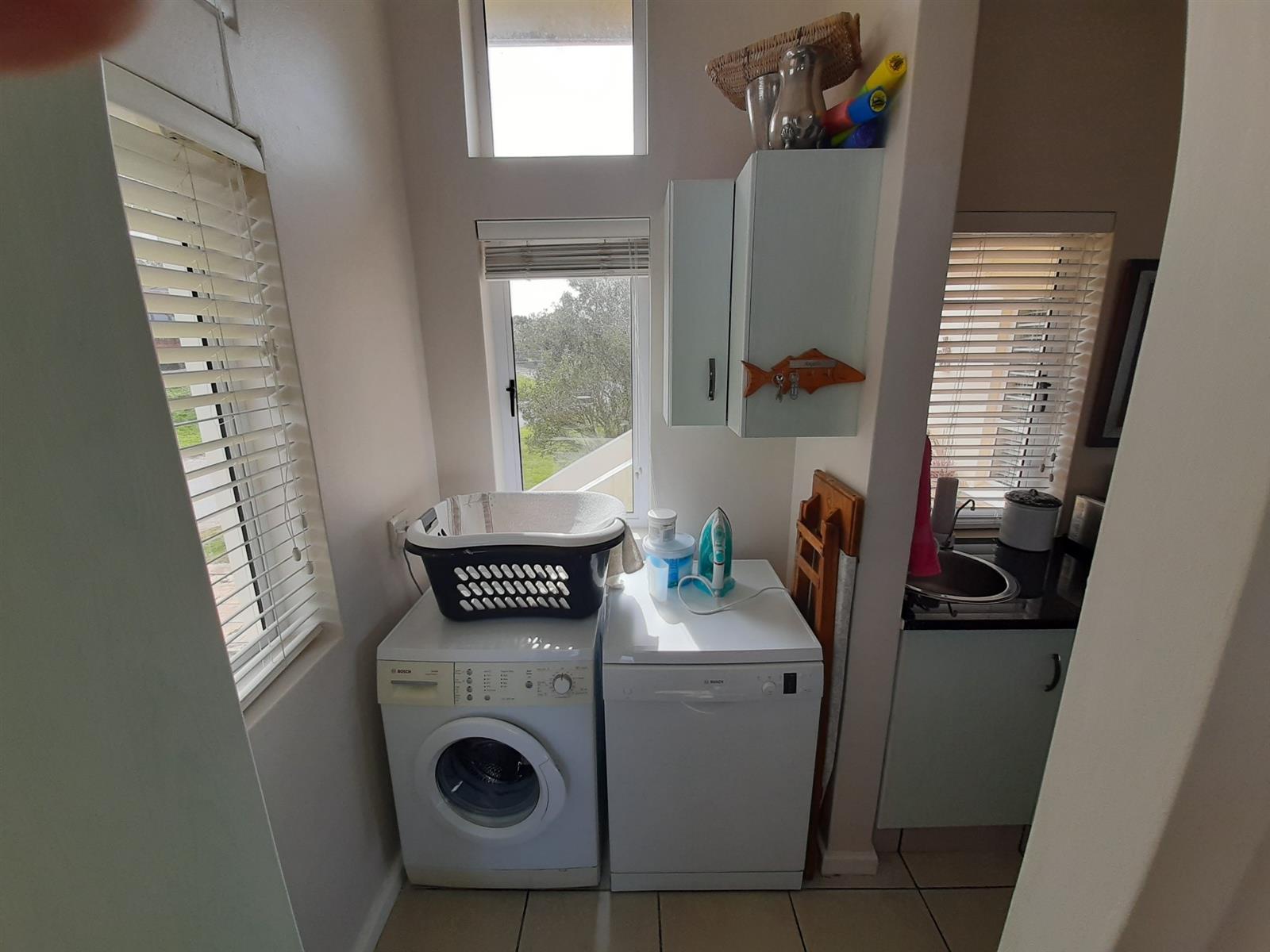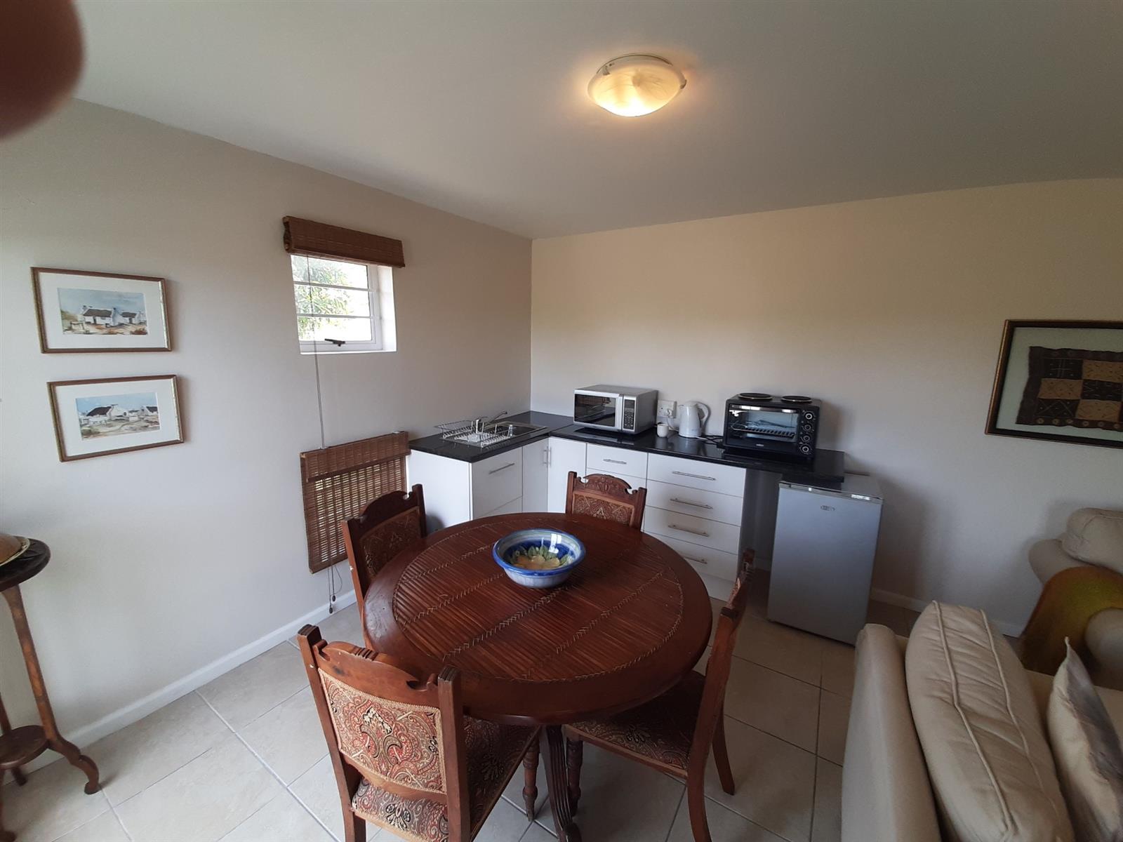 Adjacent to the dining area is a special nook, perfect for enjoying a braai while still being part of the action. The kitchen, though compact, is well-equipped and leads into an entertainment area, with a separate small scullery and laundry space for added convenience.