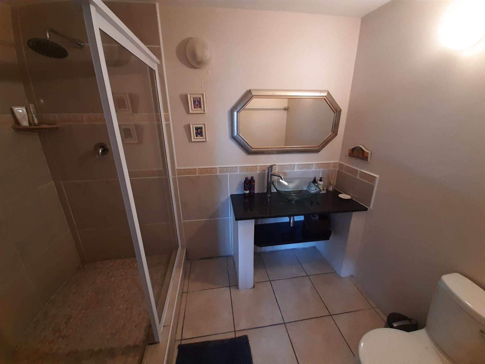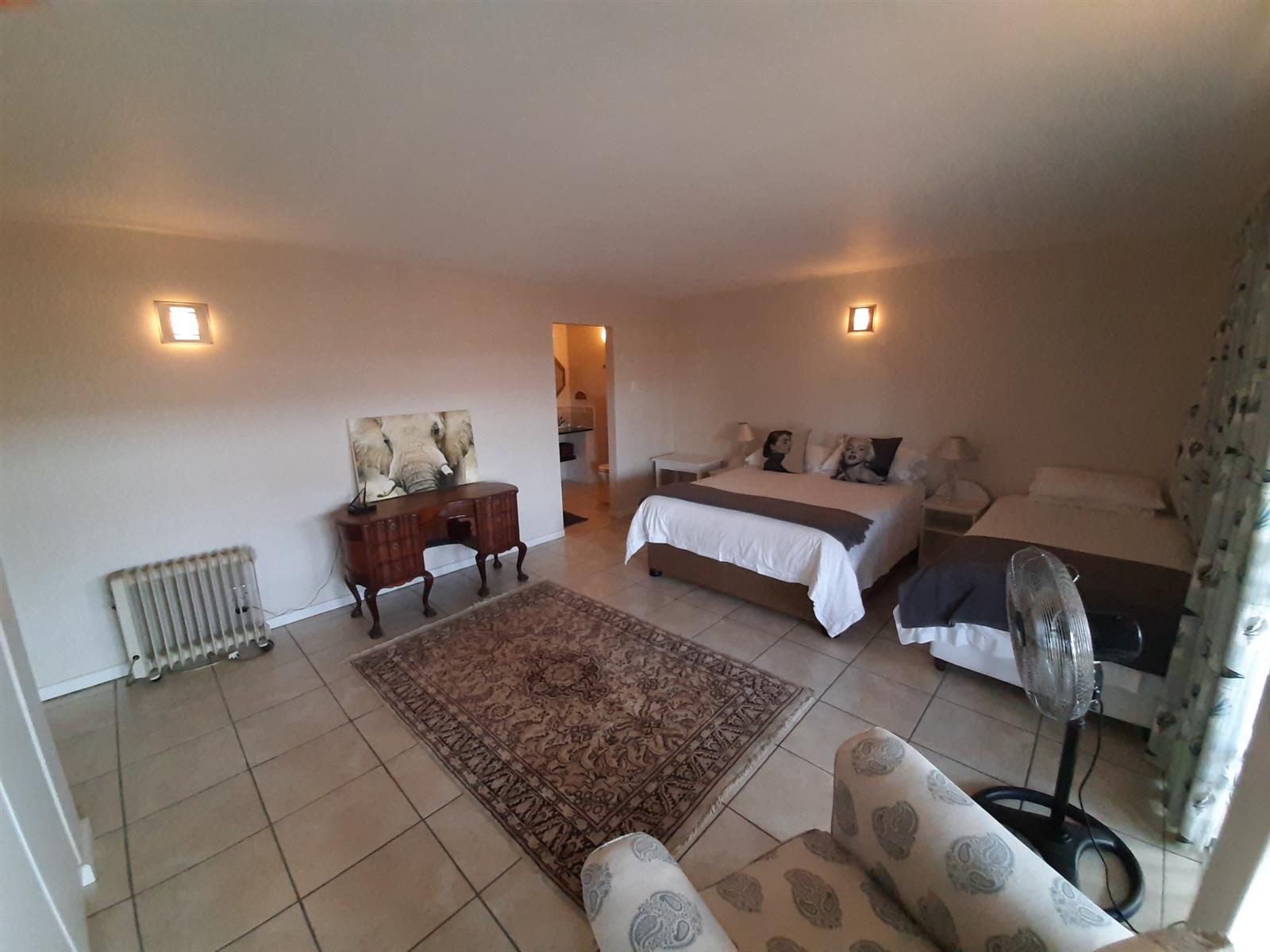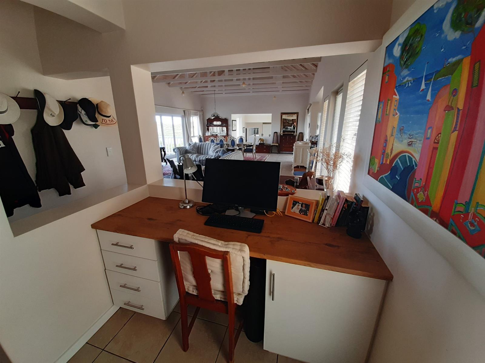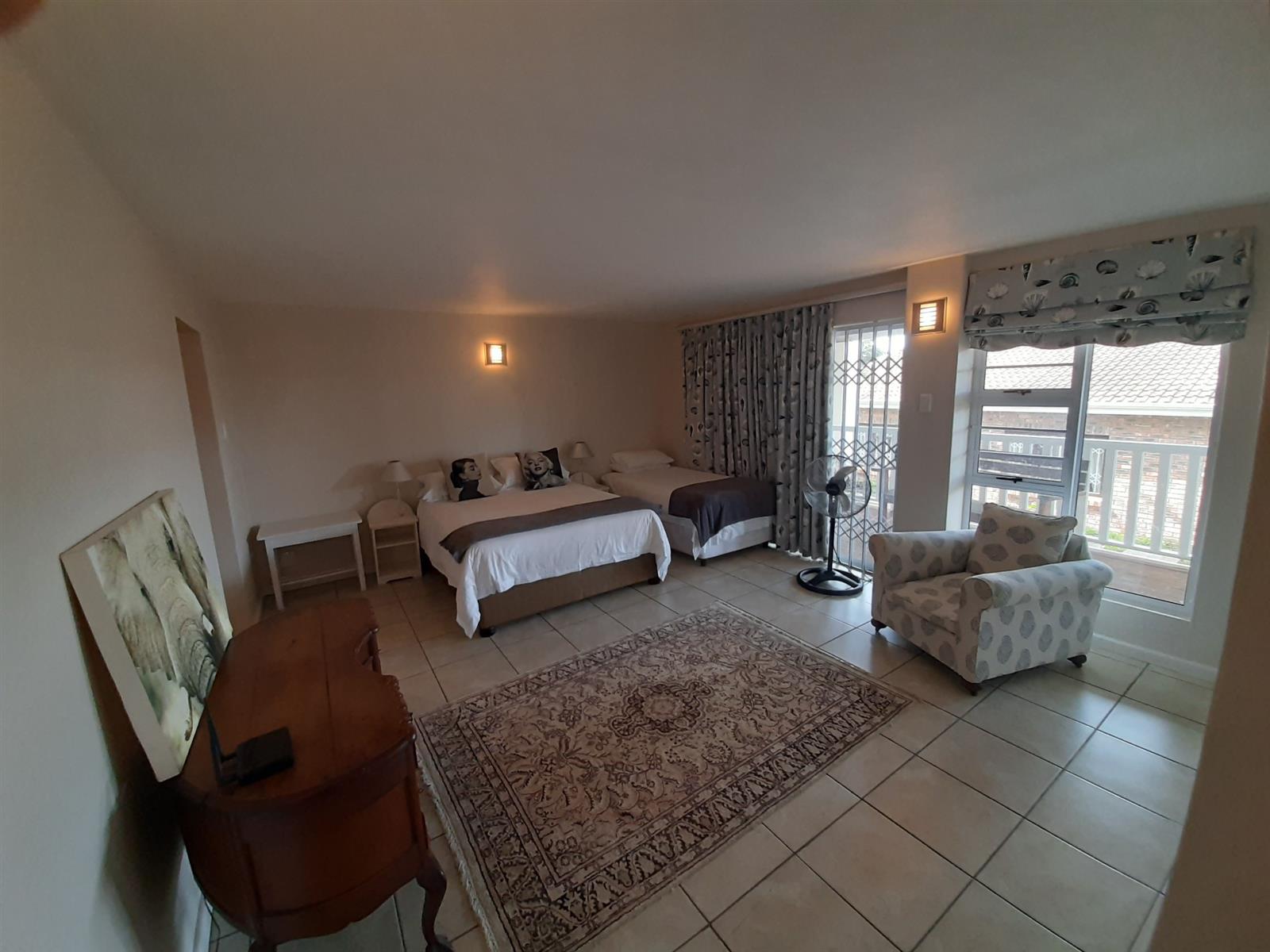 Adjacent to the dining area is a special nook, perfect for enjoying a braai while still being part of the action. The kitchen, though compact, is well-equipped and leads into an entertainment area, with a separate small scullery and laundry space for added convenience.