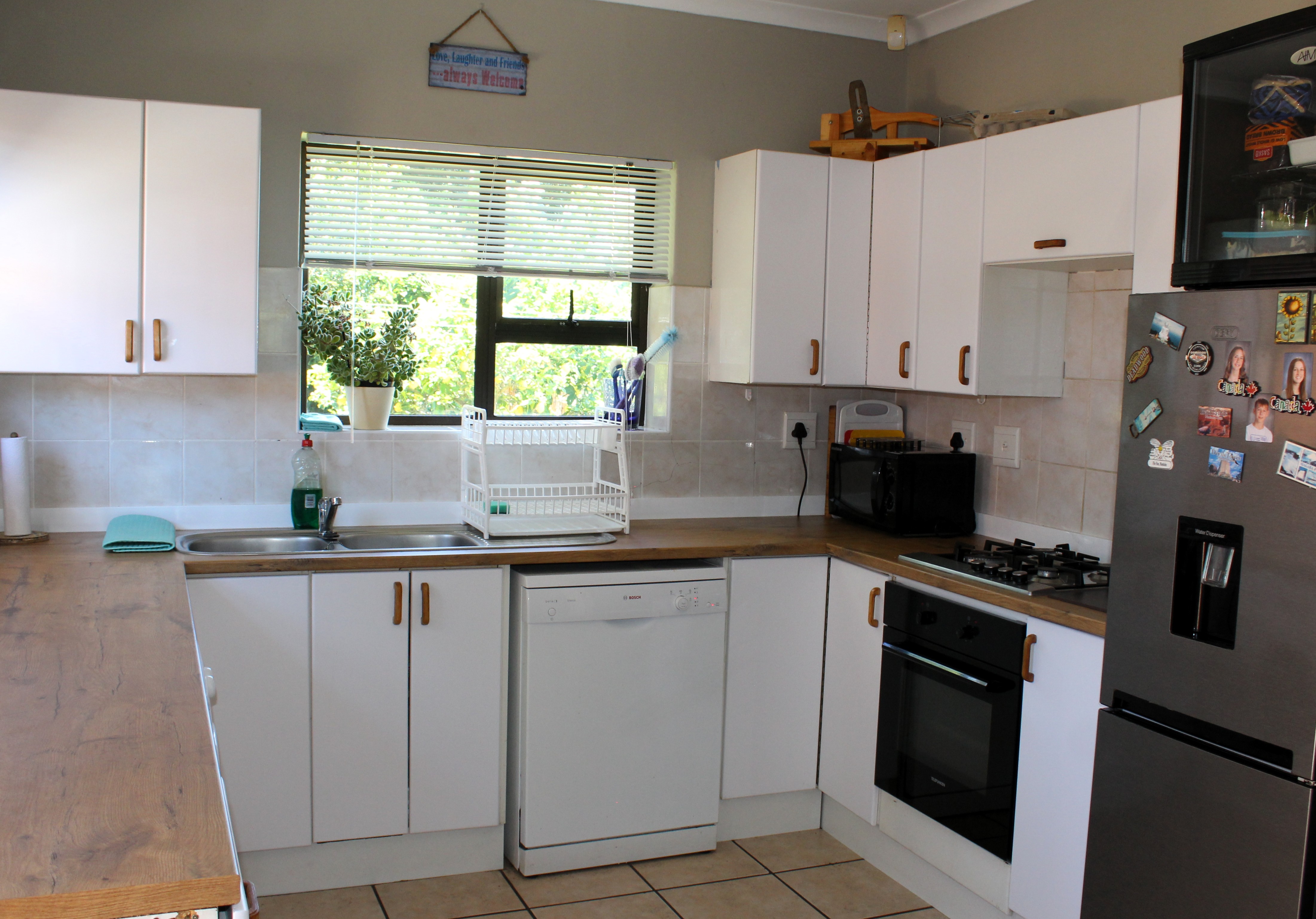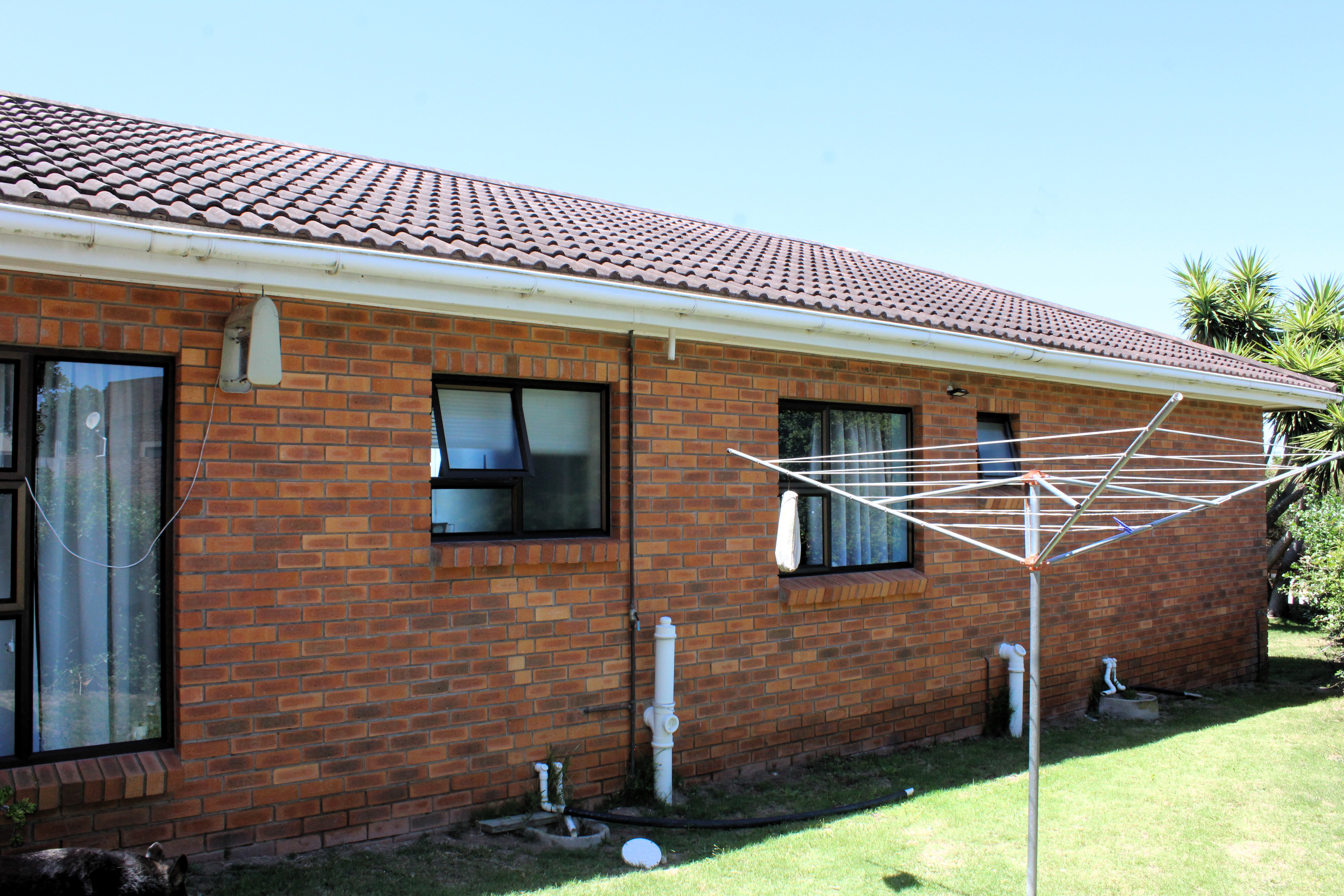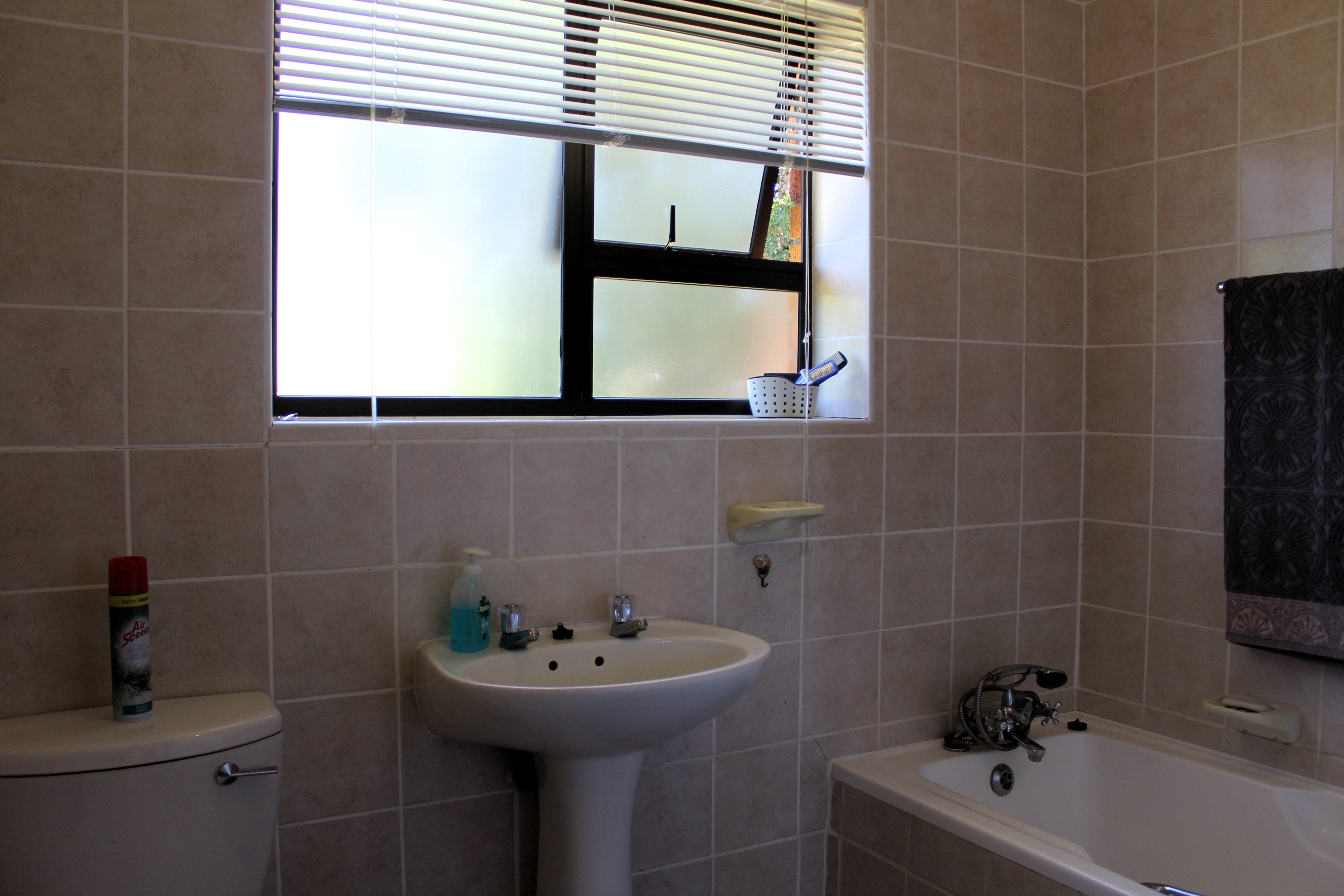 The spacious main bedroom features built in cupboards and an en-suite bathroom, while two additional guest bedrooms, both with built in cupboards, share a neat family bathroom.