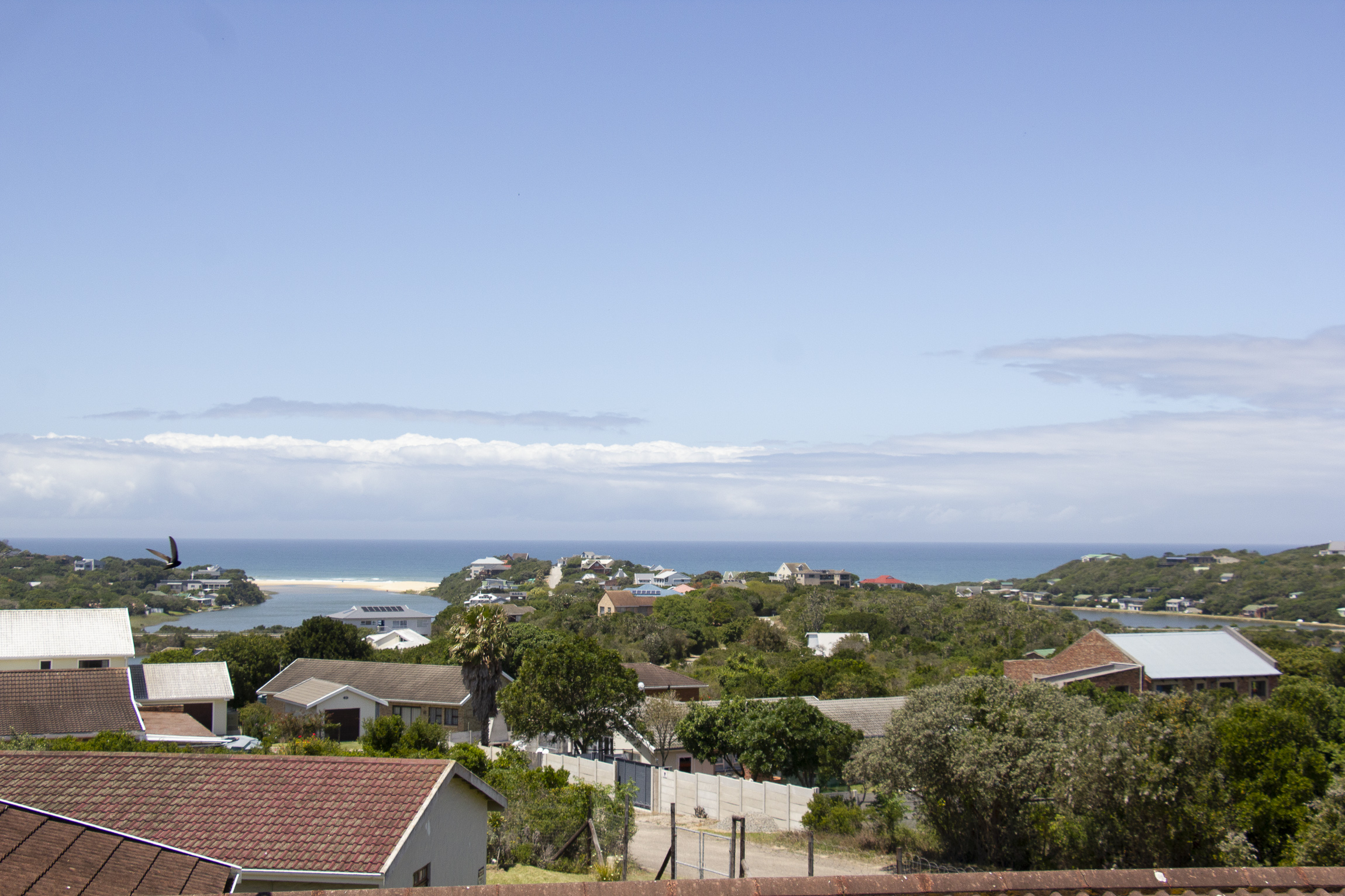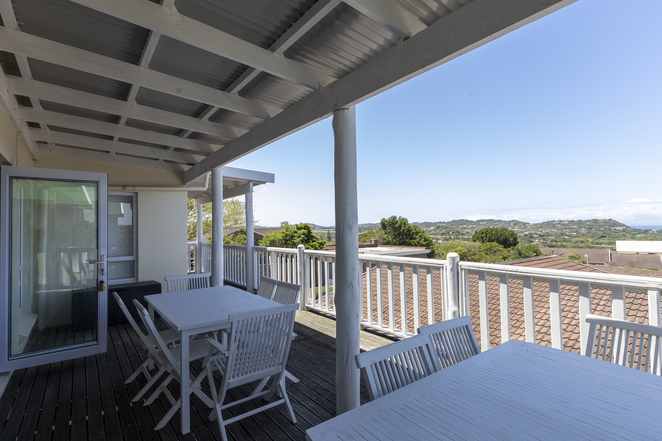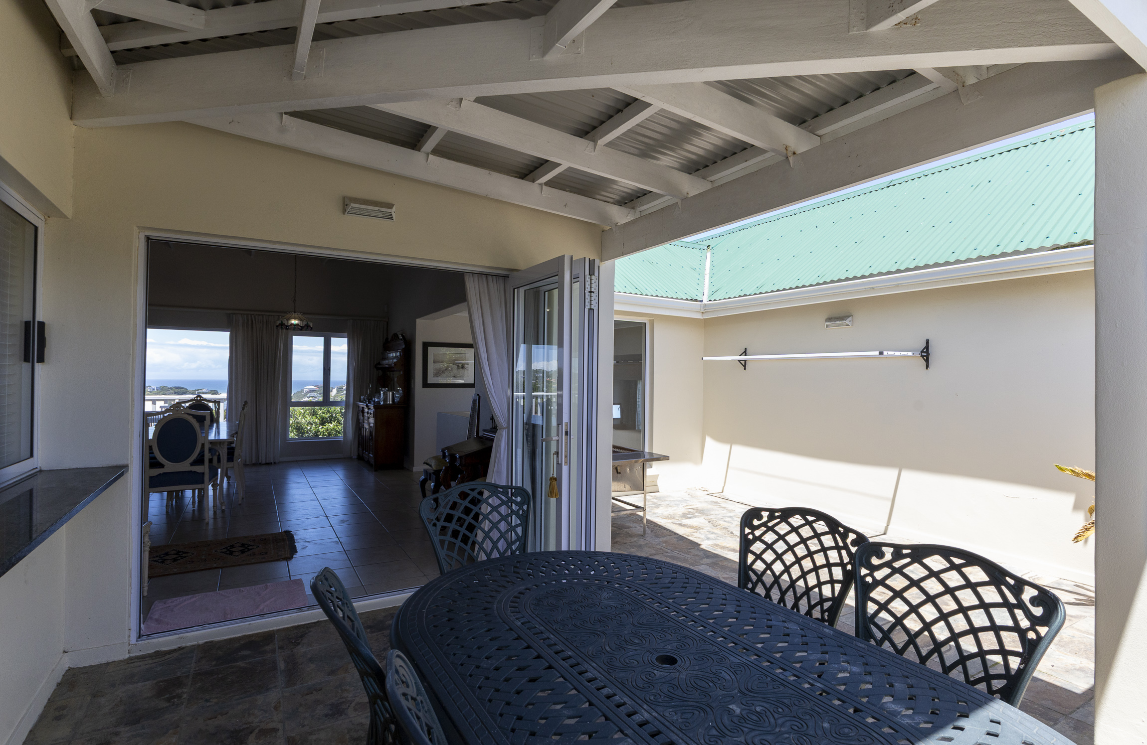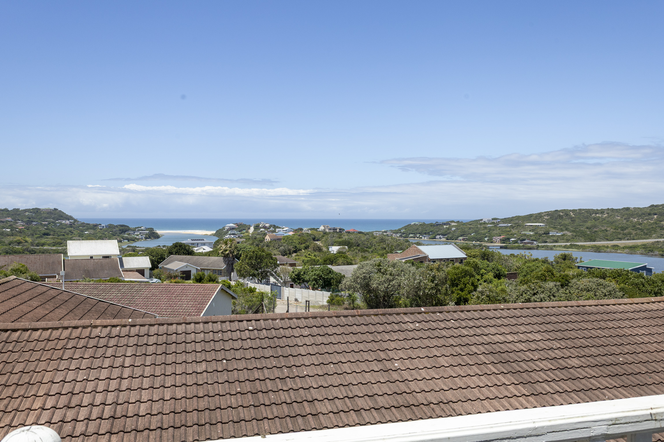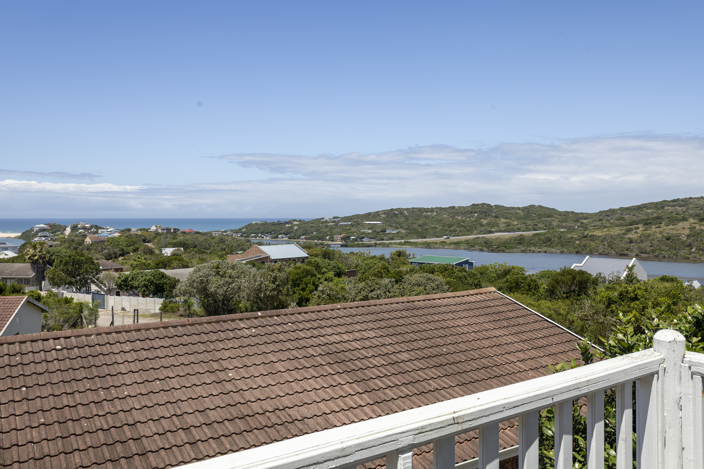 Perched above the tranquil landscape of Kleinemonde, this beautifully maintained home captures the essence of refined coastal living. With breath taking ocean and river views, it offers a harmonious blend of modern design, spacious interiors, and seamless indoor outdoor flow. A graceful staircase leads you to the upper level, where an open-plan living area welcomes you with captivating views and abundant natural light. Stacker doors open onto an expansive deck, the perfect setting for entertaining guests or enjoying spectacular sunrises over the water. The contemporary kitchen features clean lines and direct access to an enclosed courtyard, creating both style and functionality.