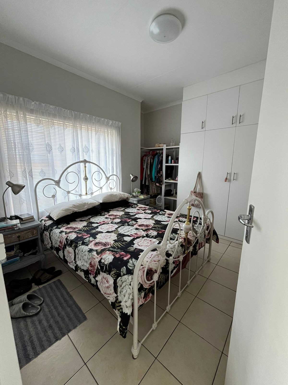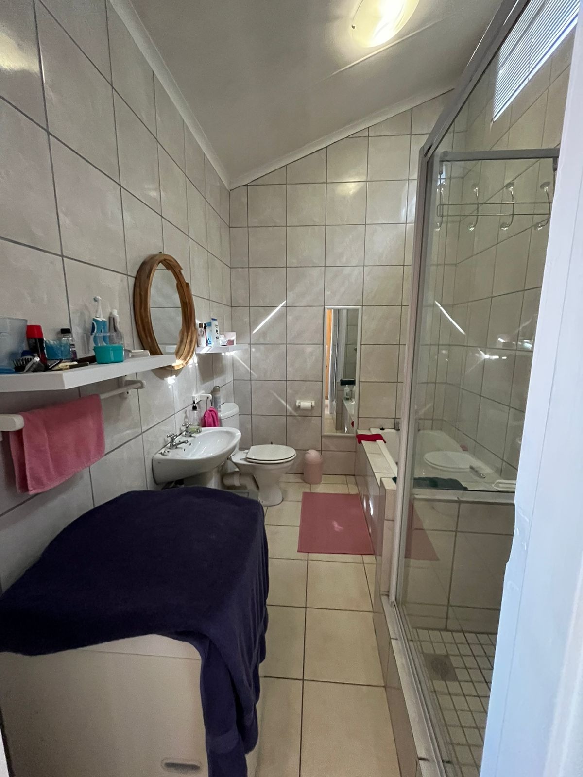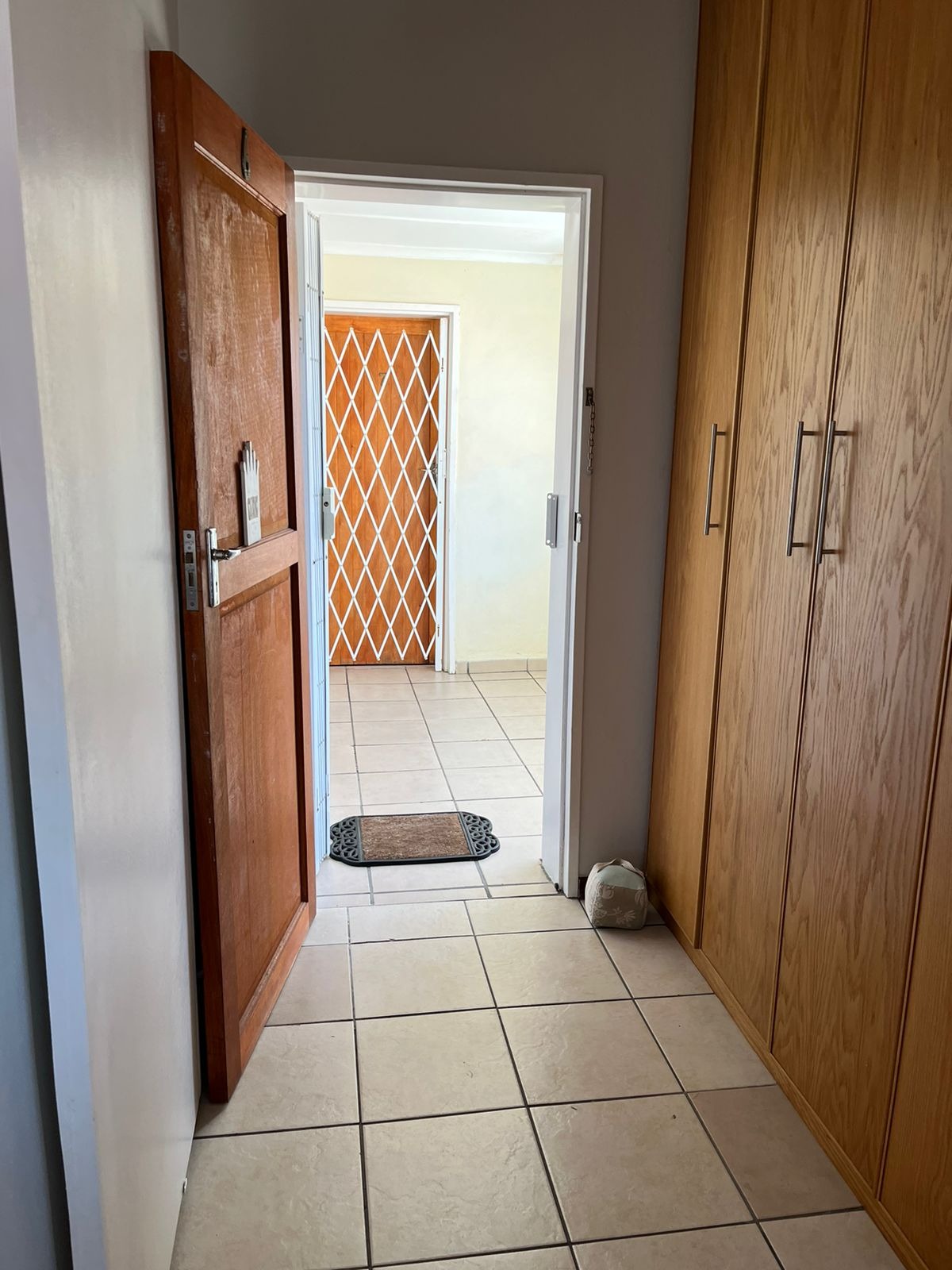 As you enter this apartment you will find ample cupboard space to the left and a sliding door to the right leading to the bathroom. The bathroom has a bath with a separate shower and space for a washing machine.