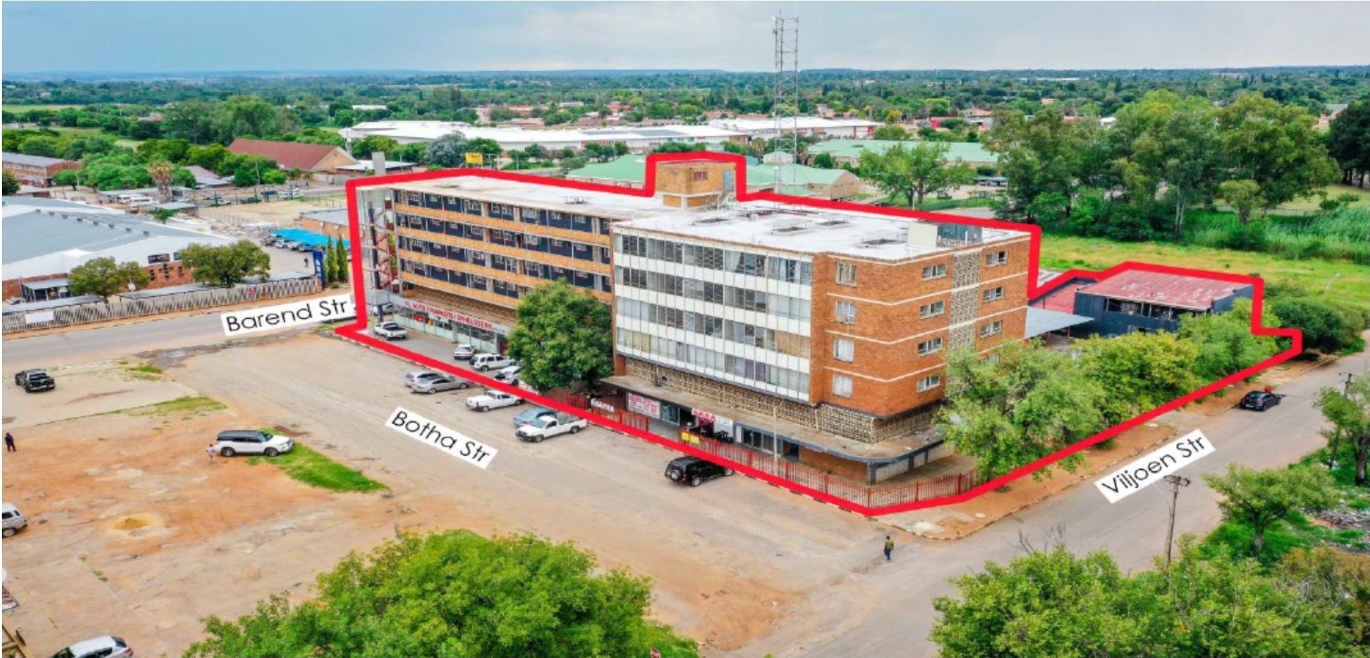 TThe property is partly enclosed on two sides with fencing/walling. The property has a structured parking area with 43 parking bays.