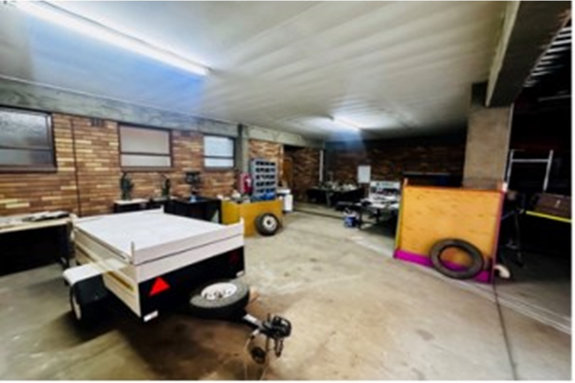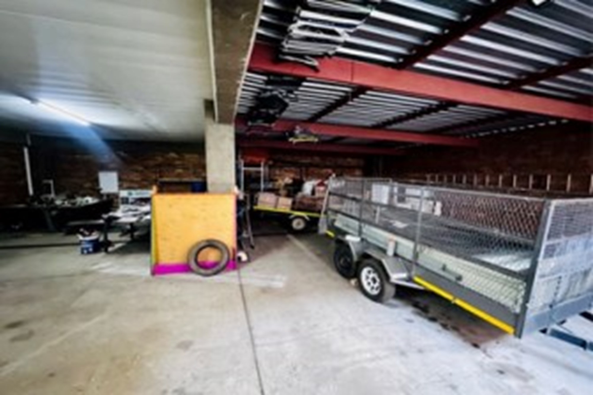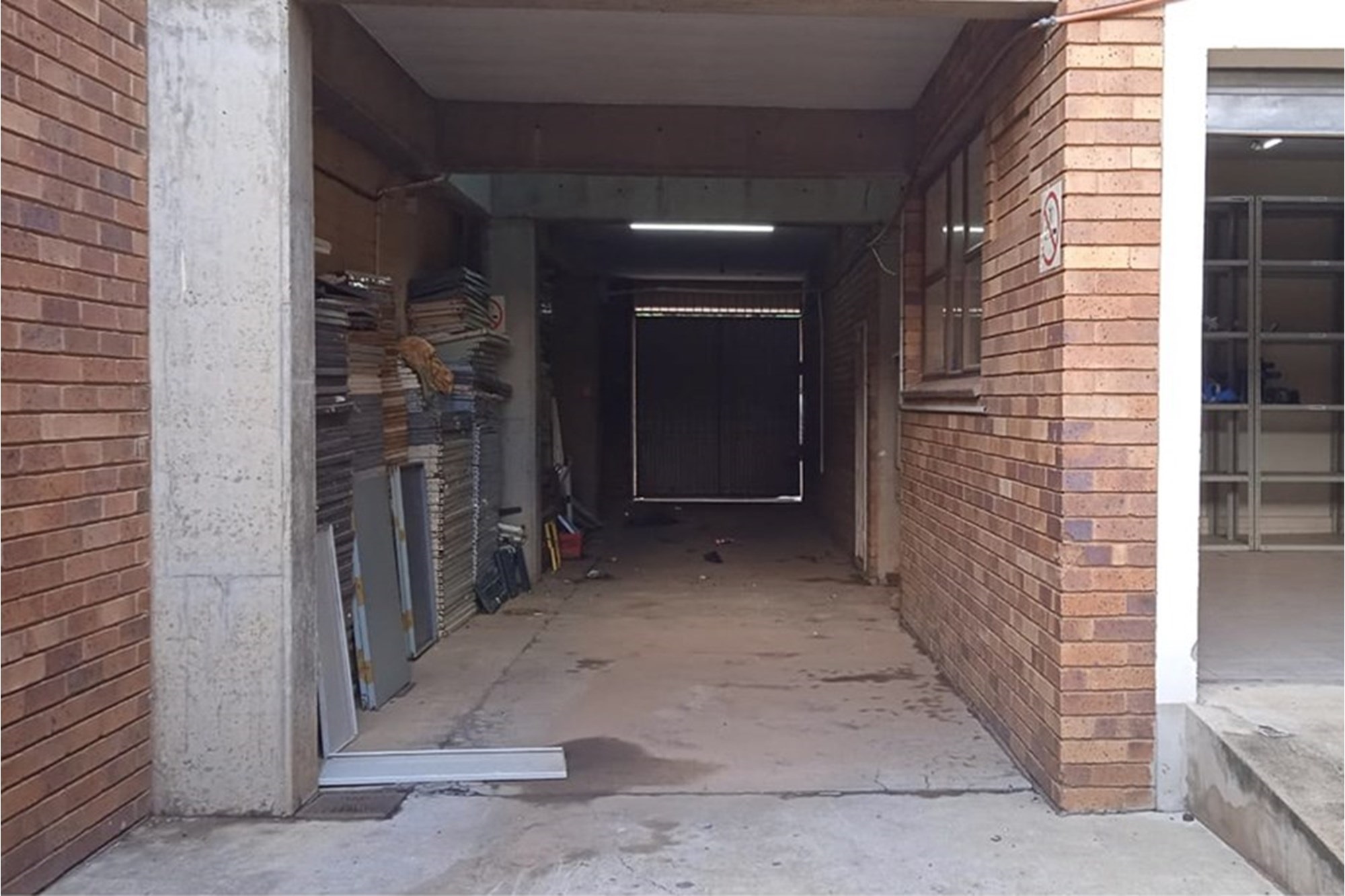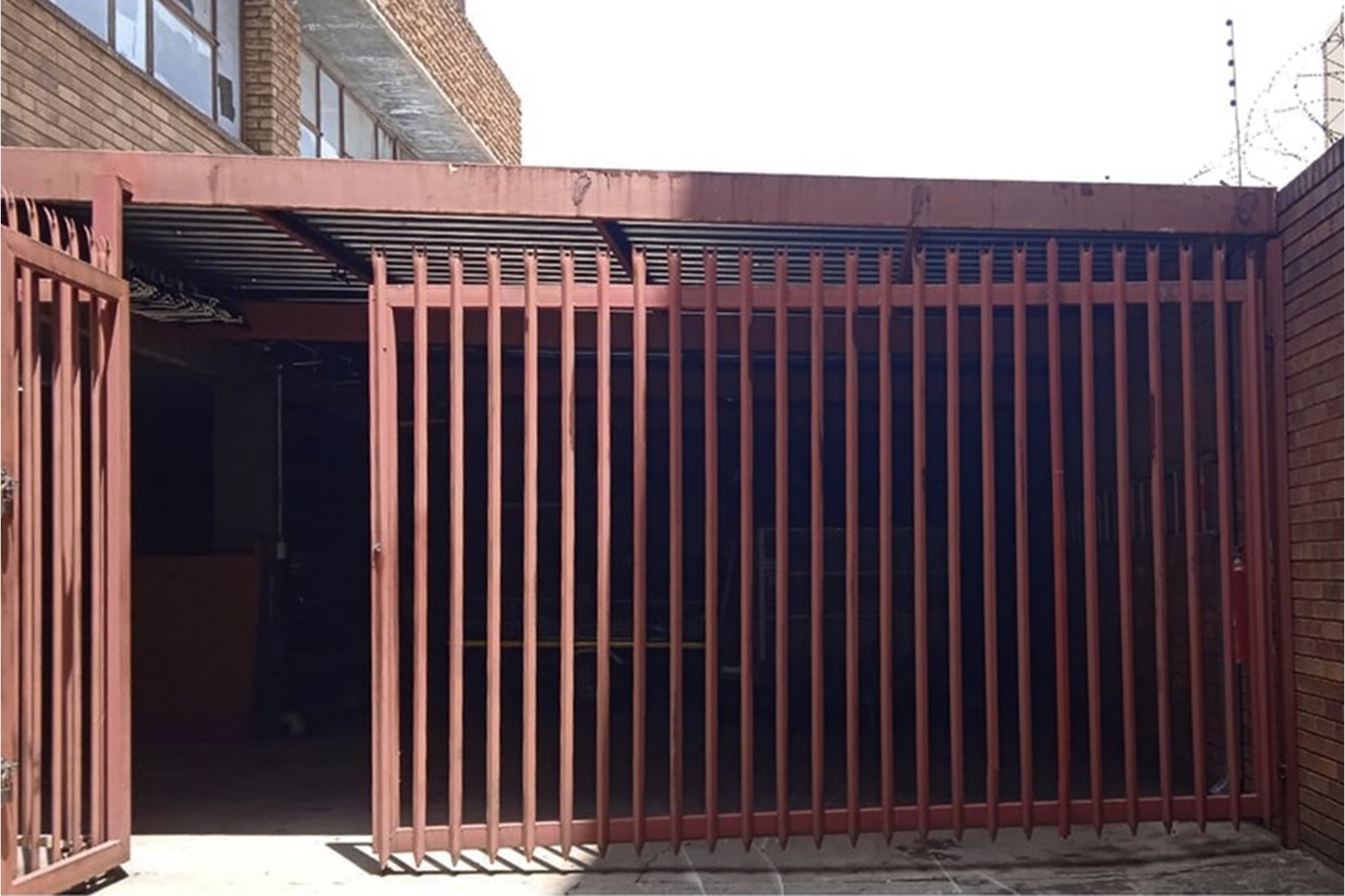 Drive-in area for deliveries, also has parking available for company vehicles (enclosed carport with security gate)