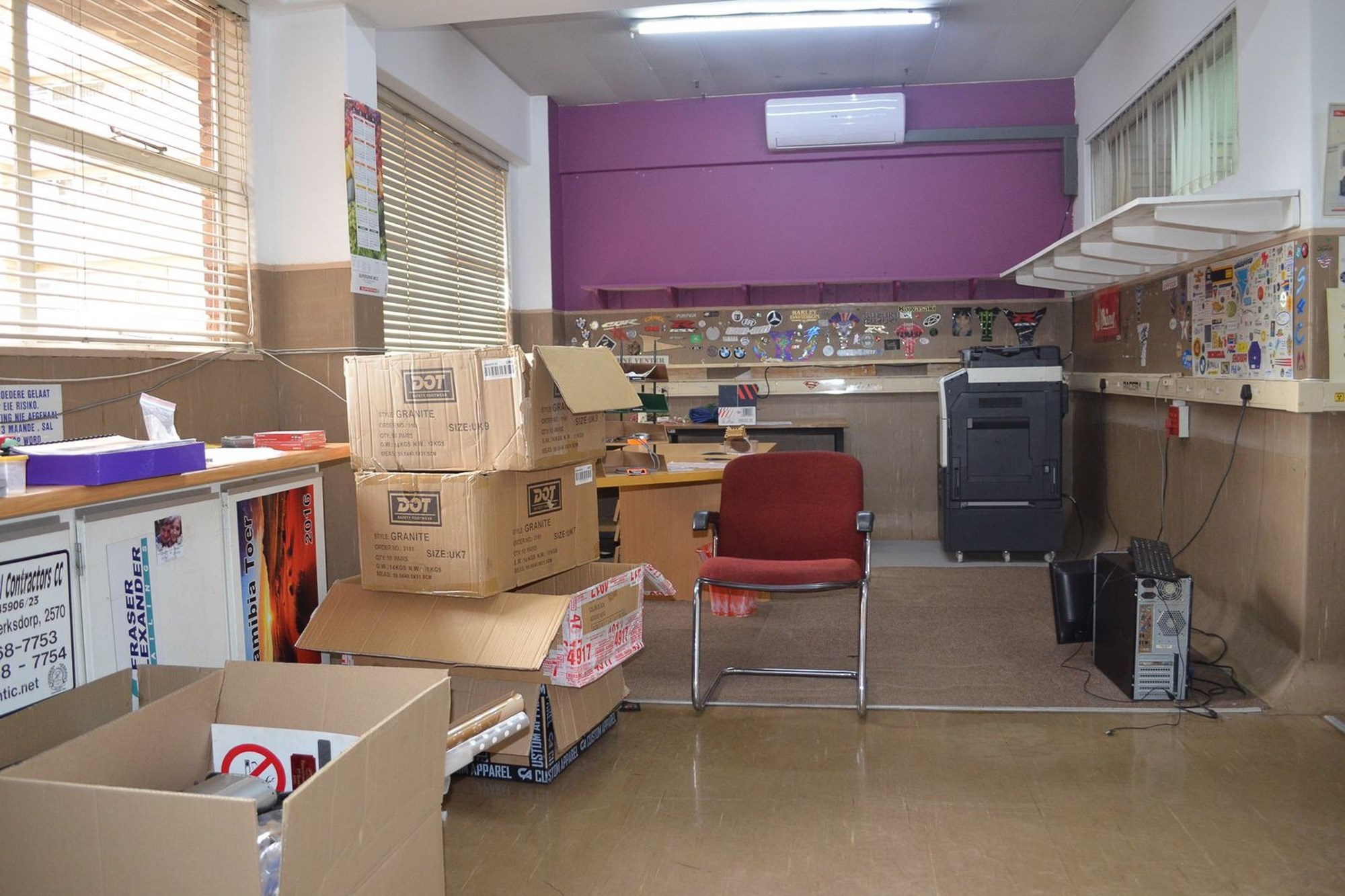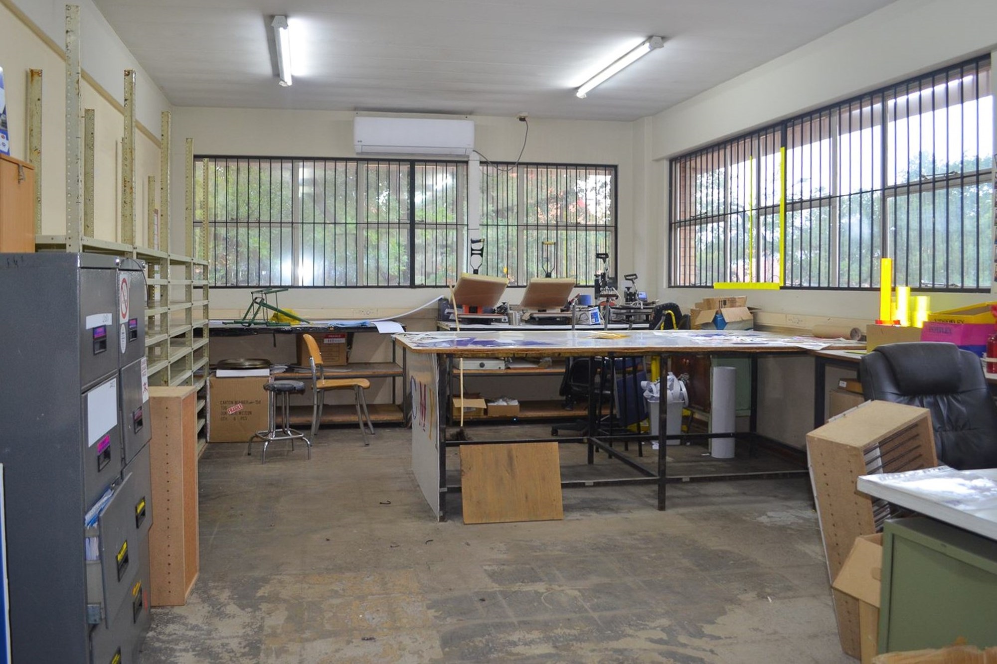Offices, reception area, working areas, storage facilities with ample storage shelves