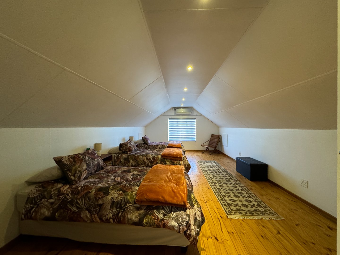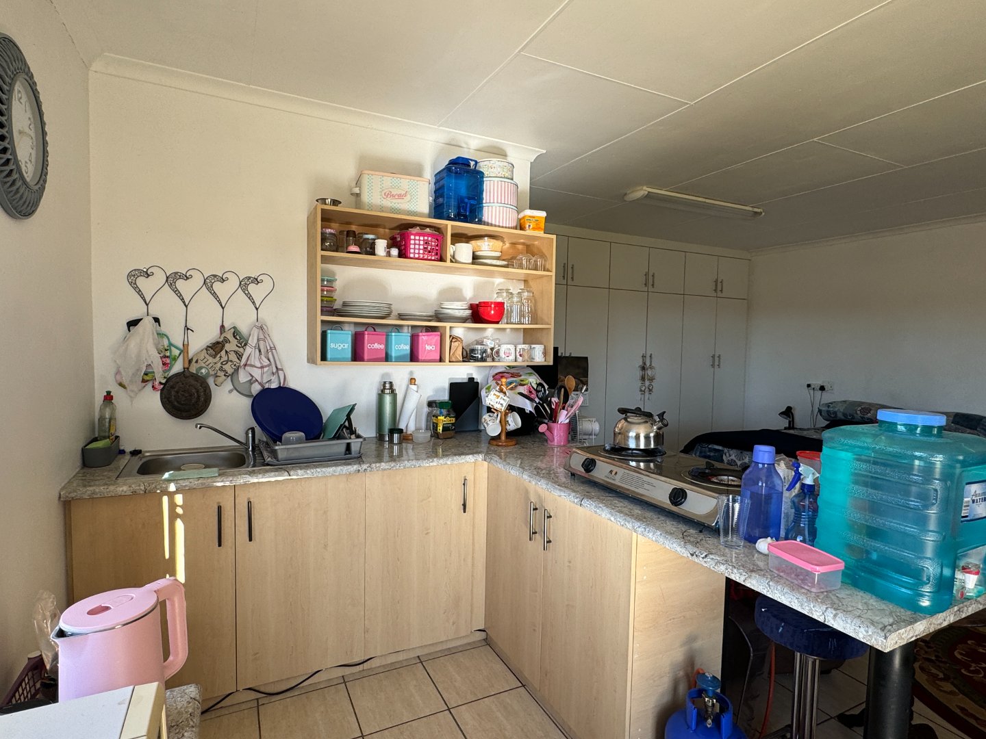 At the heart of this expansive estate lies a charming homestead designed for comfort and luxury. The main house features two spacious bedrooms, two modern bathrooms, and a versatile cellar that can easily be converted into an additional bedroom or recreational space. A generously sized kitchen and pantry cater to culinary enthusiasts, while an open-plan lounge and dining area offer a seamless flow for entertaining guests towards the spacious “braai” area.