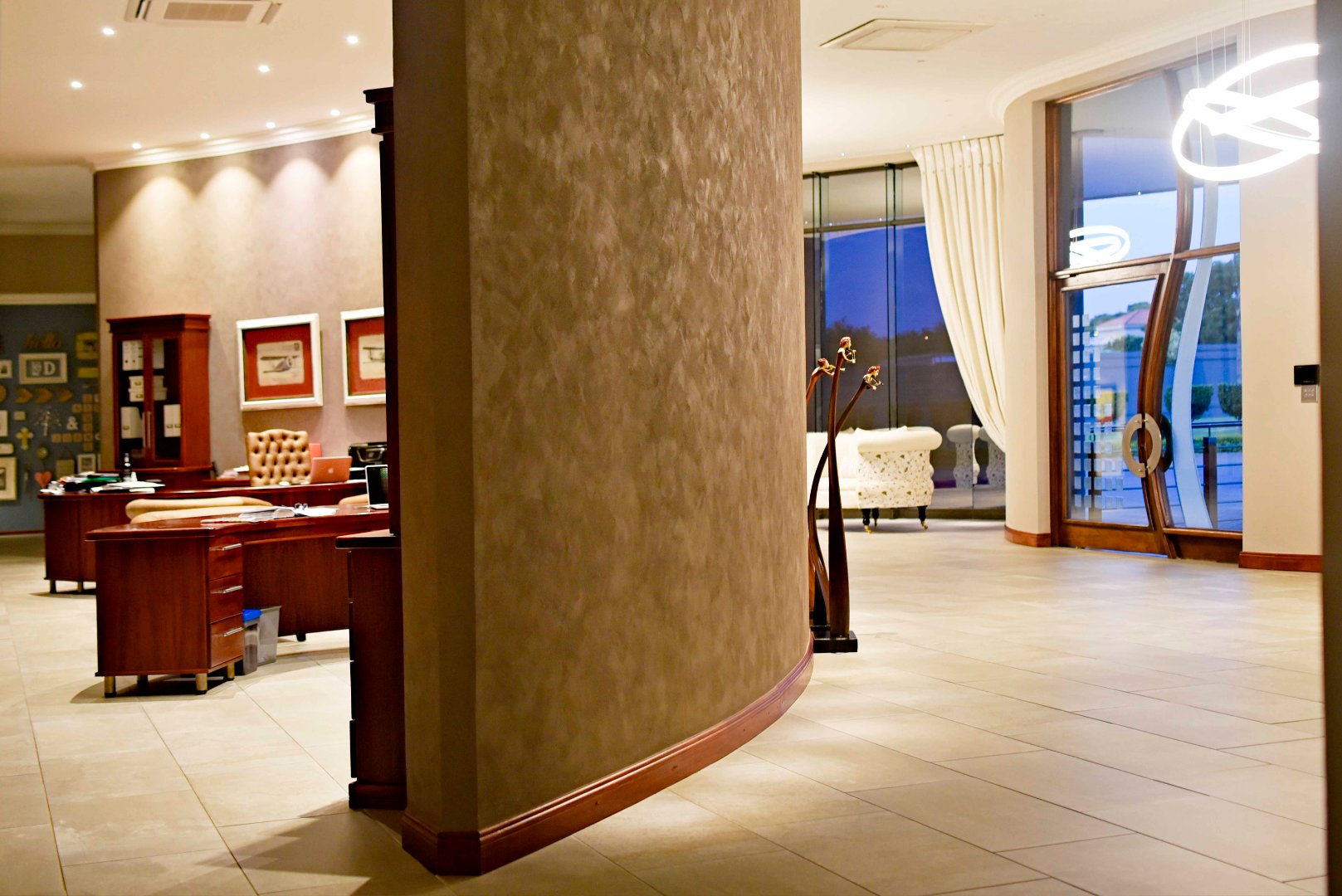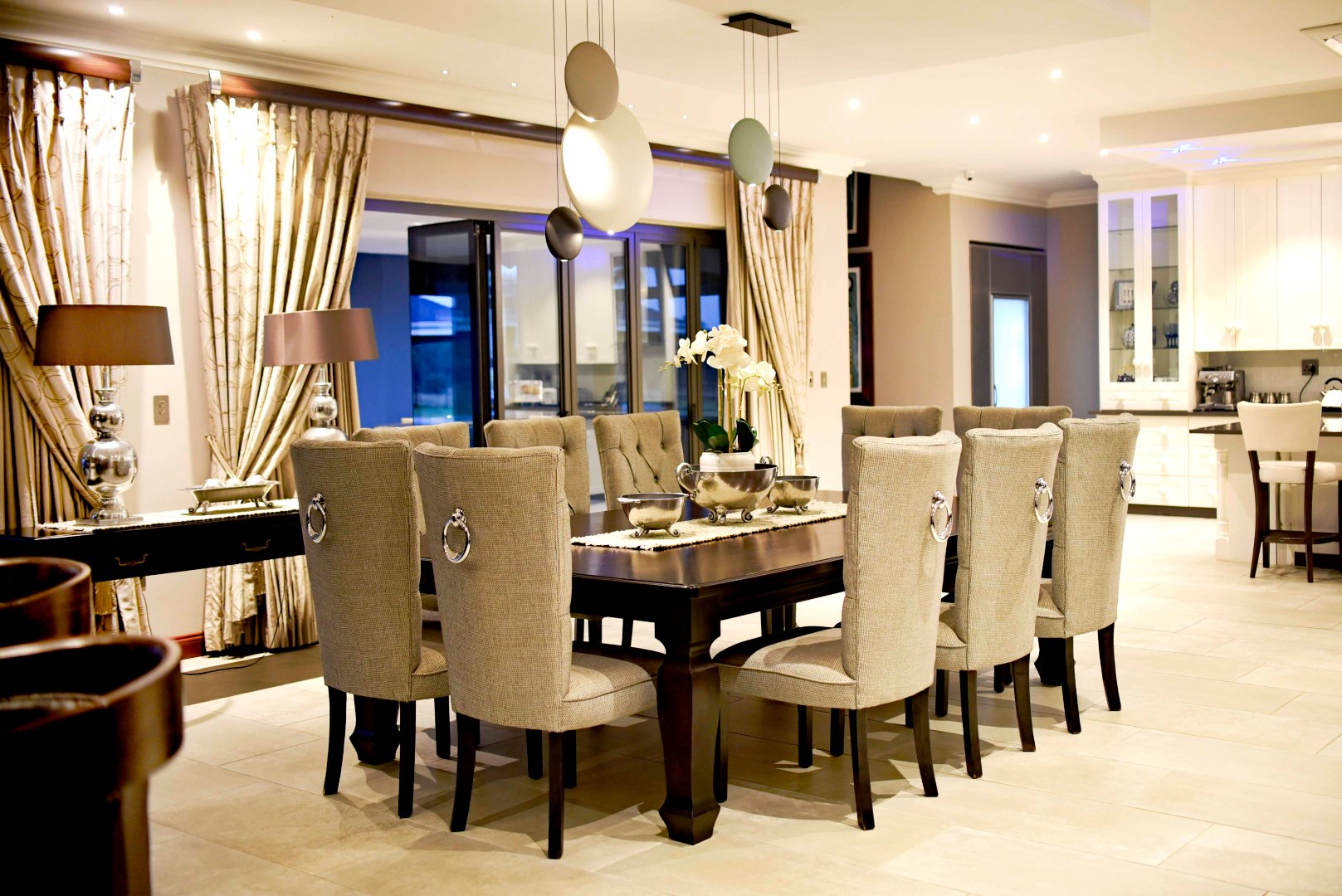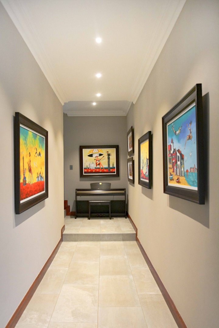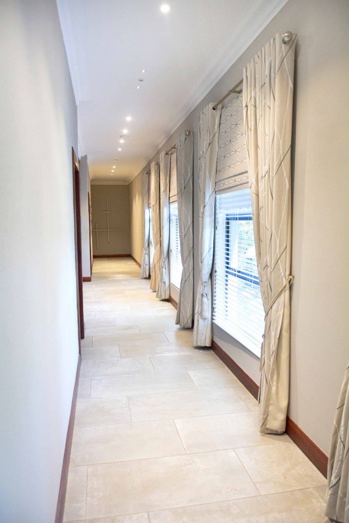 This luxurious four-bedroom family home combines striking architectural design with an immaculate, light-filled layout. From the moment you enter the grand double-volume entrance hall-framed by glass doors and large windows-you're welcomed into a space filled with natural light and centred around a beautiful chandelier that sets the tone for the rest of the home. The home's design makes use of light and neutral tones, enhancing the sense of space and calm throughout.