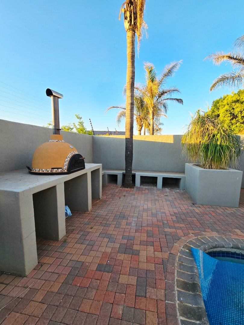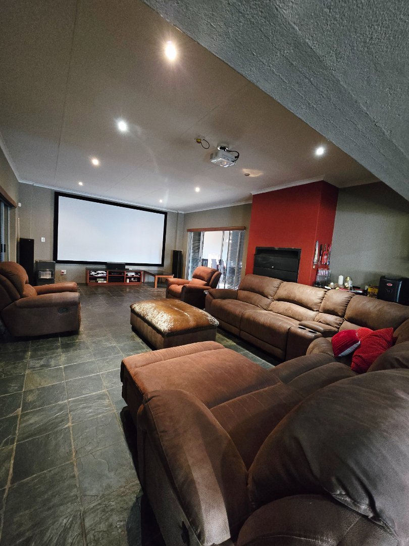 Covered patio with dual built-in braais, currently set up as a private cinema, plus a 7-seater jacuzzi for year-round relaxation.