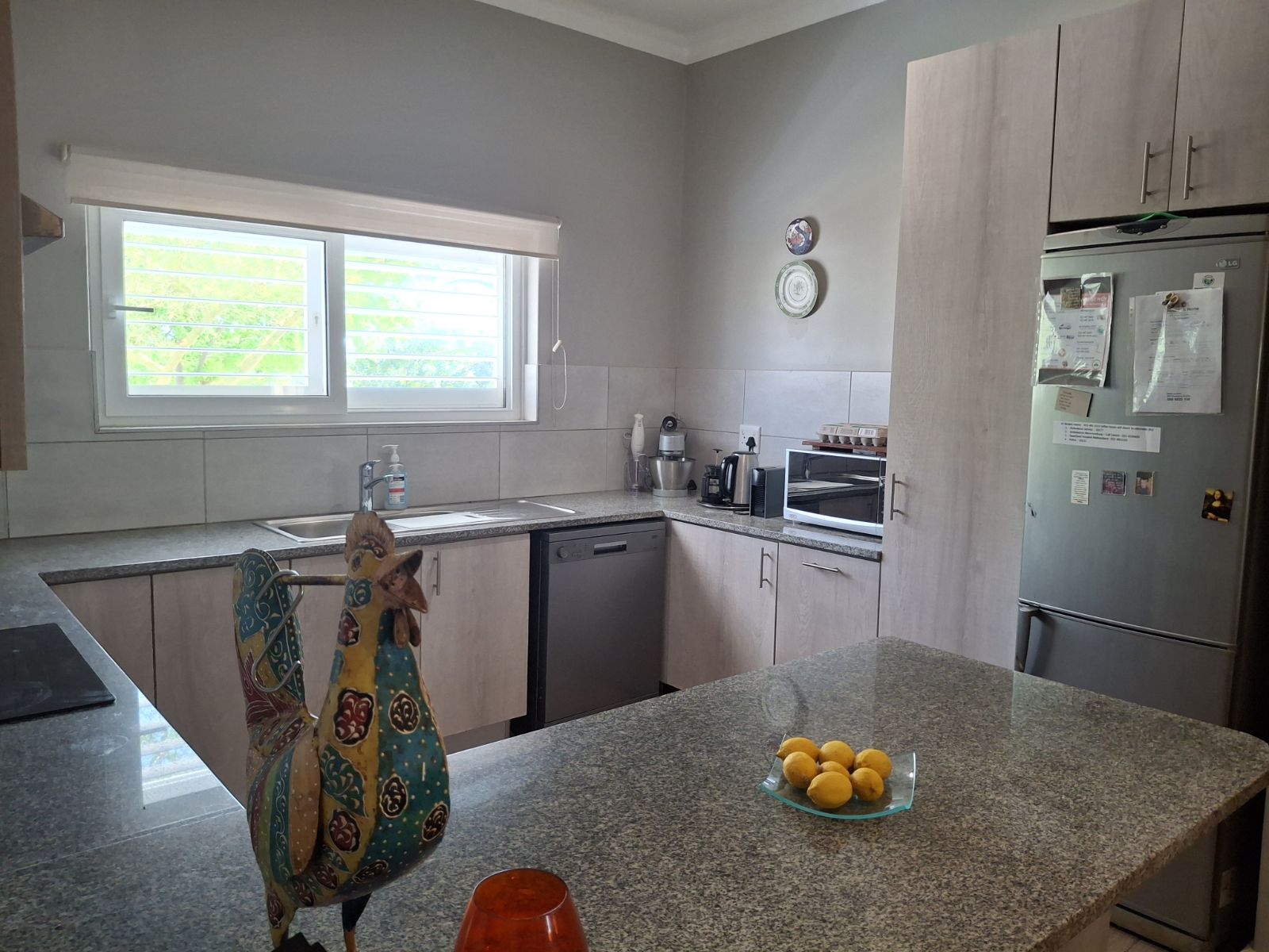 The home features an inviting open-plan lounge, dining, and kitchen area with double-volume ceilings, creating a bright and airy atmosphere. The kitchen is fitted with granite countertops, a dishwasher connection and ample cupboard space — ideal for easy everyday living.