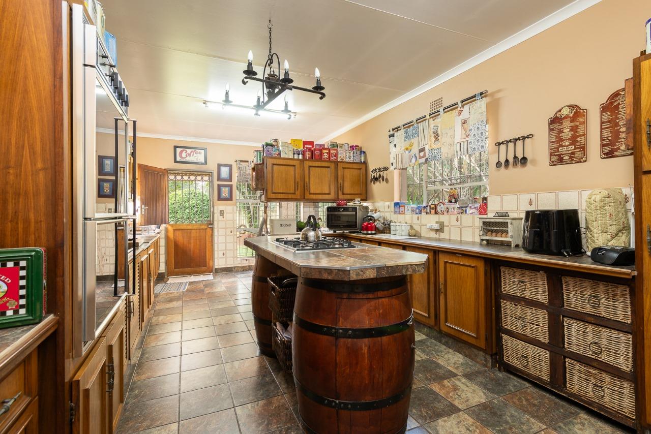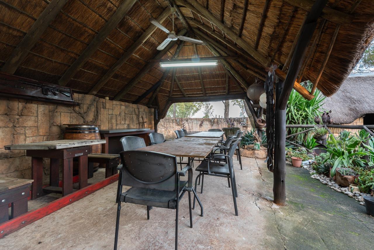 The property is an entertainer's paradise, with a sparkling swimming pool, two lapas equipped with braai areas, and an outdoor toilet to cater to your social gatherings. A double garage provides ample parking and storage space.