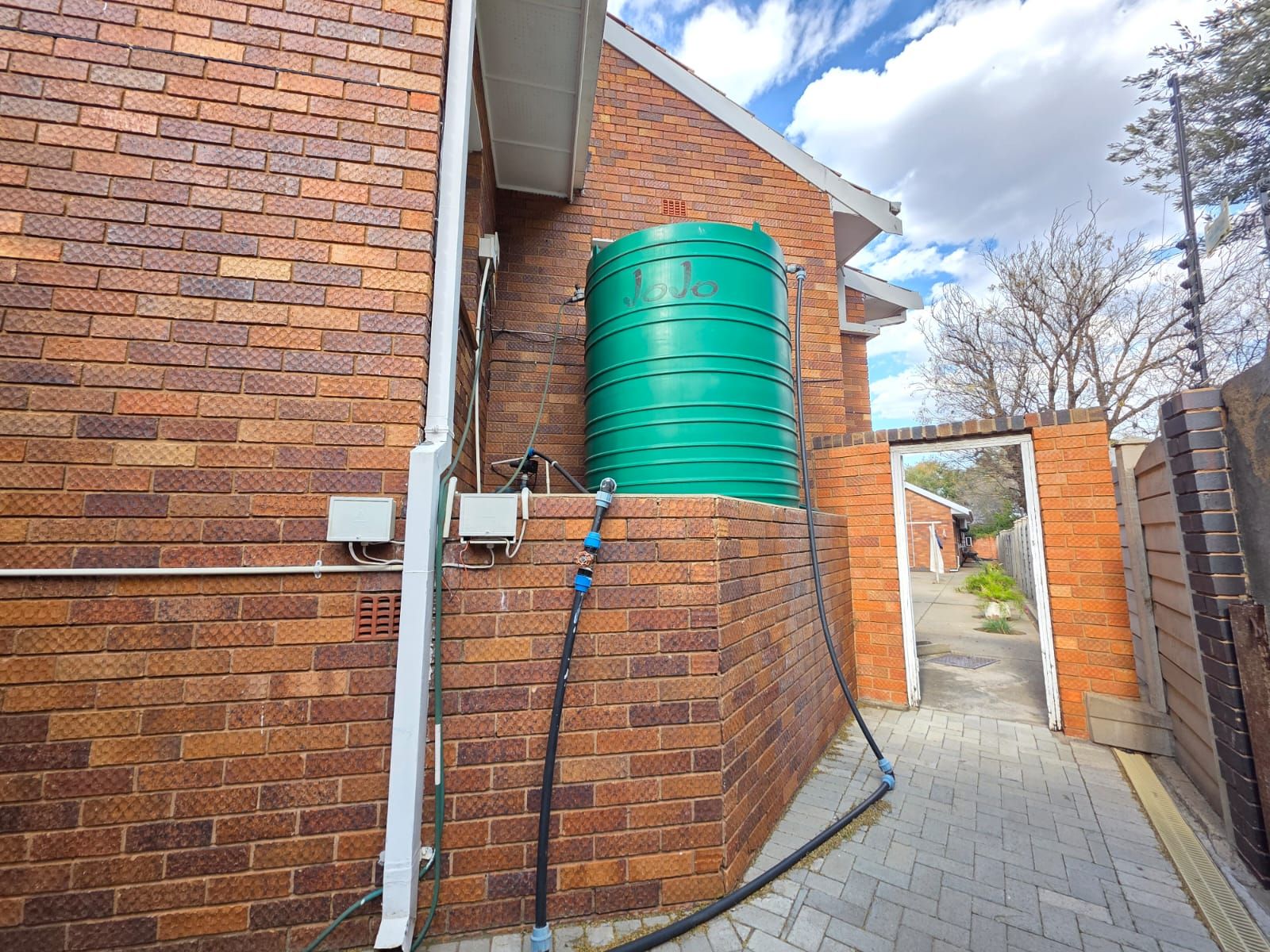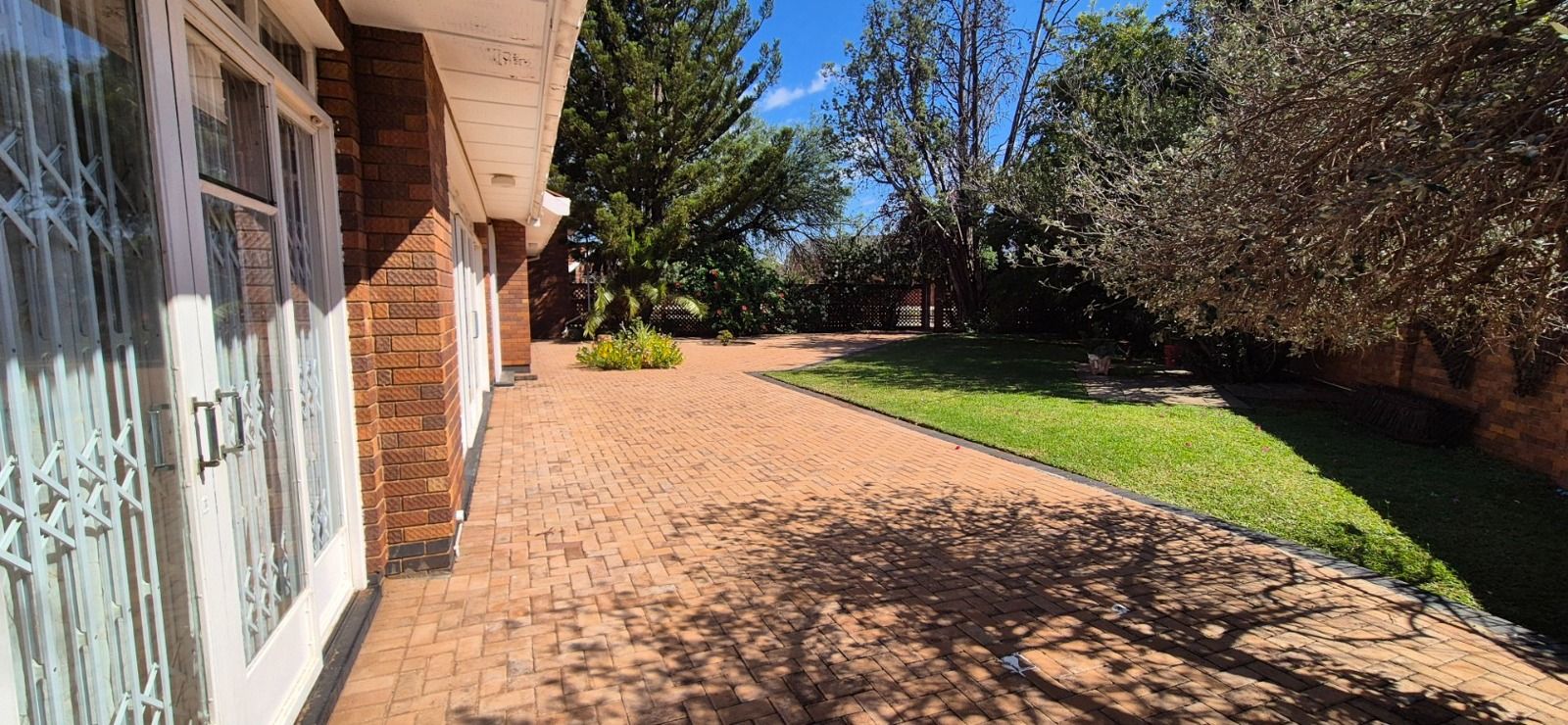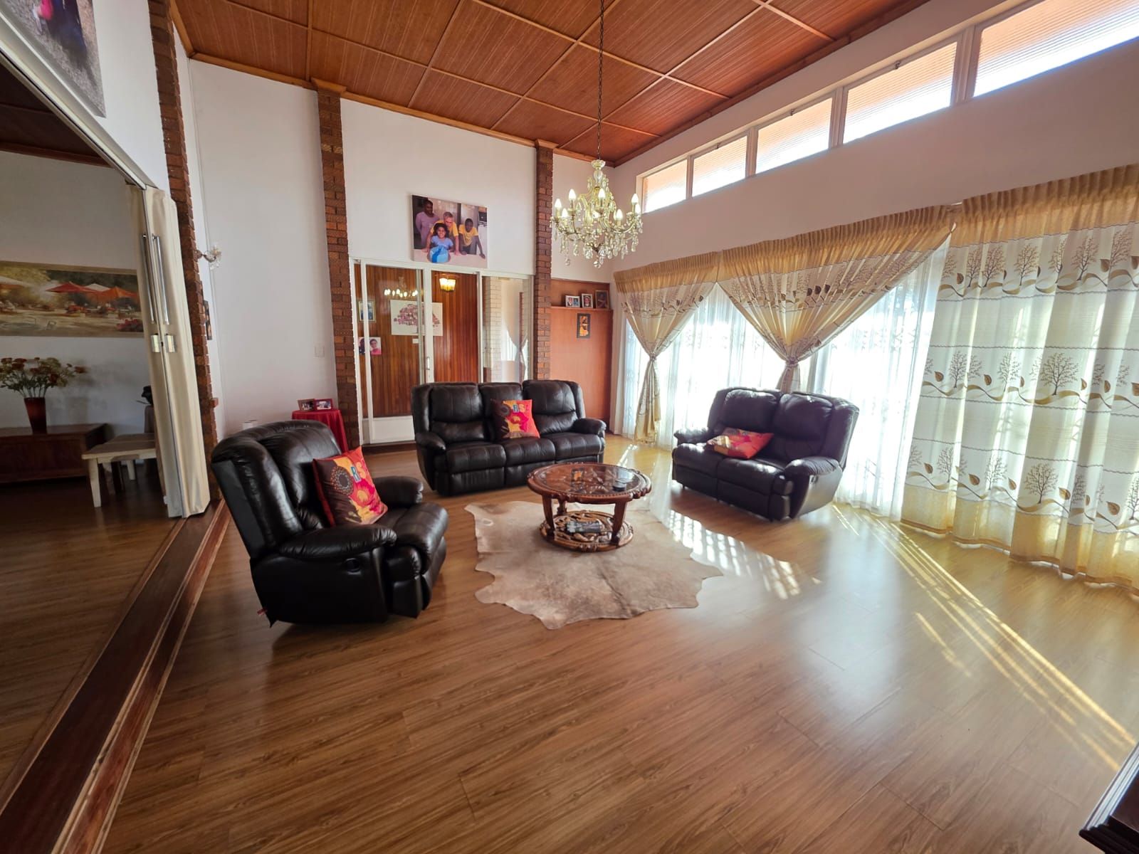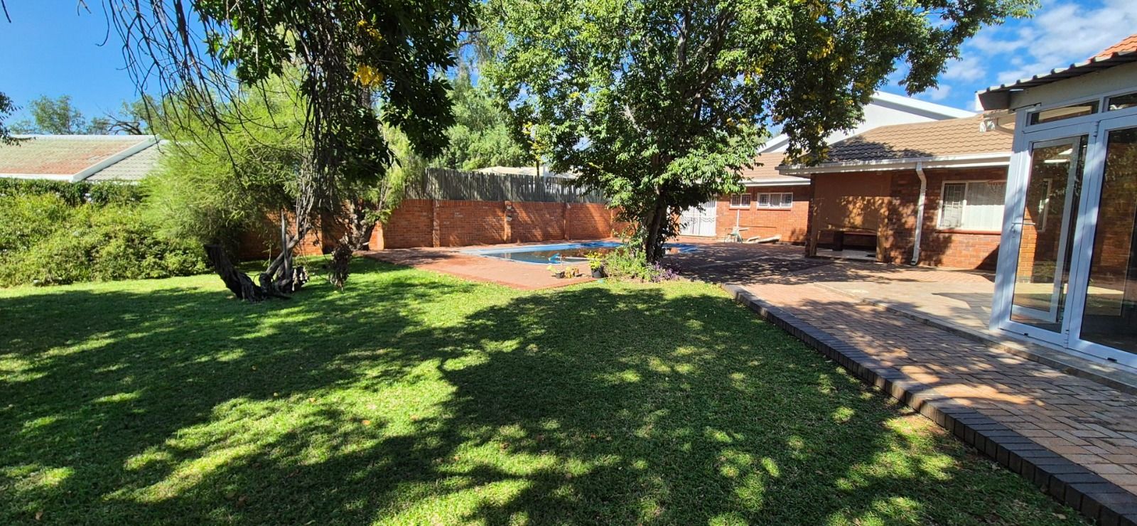 Outdoor living is just as inviting, with a sparkling swimming pool, well-maintained garden with irrigation, borehole, and Jo-Jo tank. Parking is plentiful with a double garage, single garage, and four secure parking spaces.