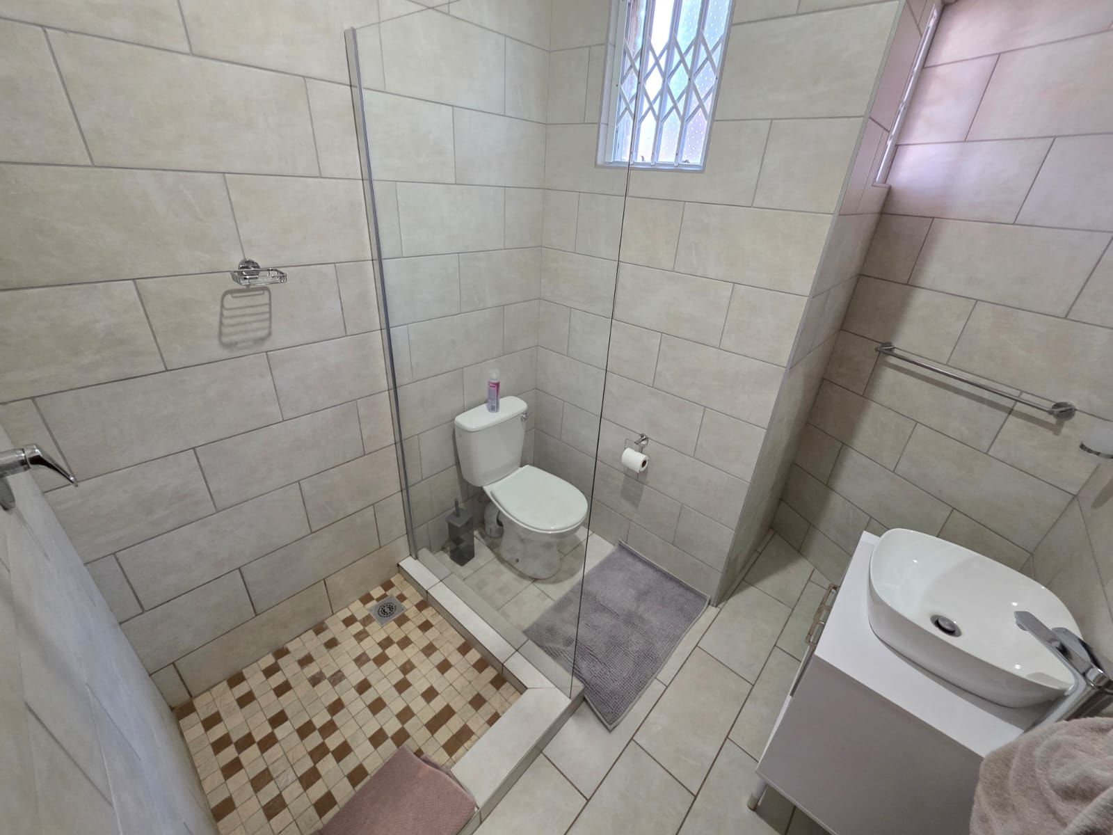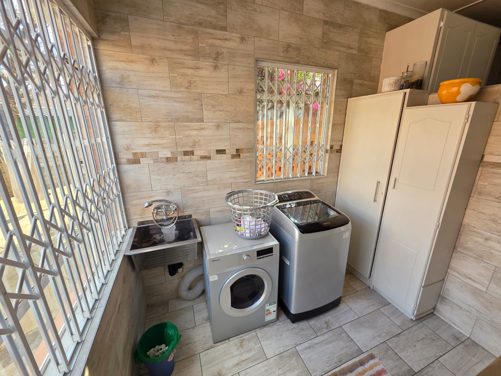 Safety and security are a priority, with the property fully walled and equipped with an alarm system, burglar bars, Trellidoors, an electric gate, outdoor beams at the flat, and a watercooler for added comfort.