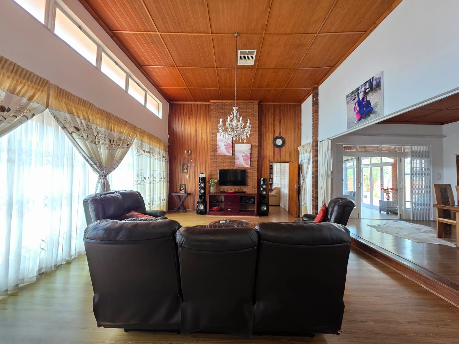 The home also includes a dedicated linen room with built-in cupboards and a fully enclosed patio with aluminium stack doors—perfect for year-round enjoyment. Bedrooms five and six, along with a full bathroom and second kitchen, are part of the flatlet, offering privacy and independence.