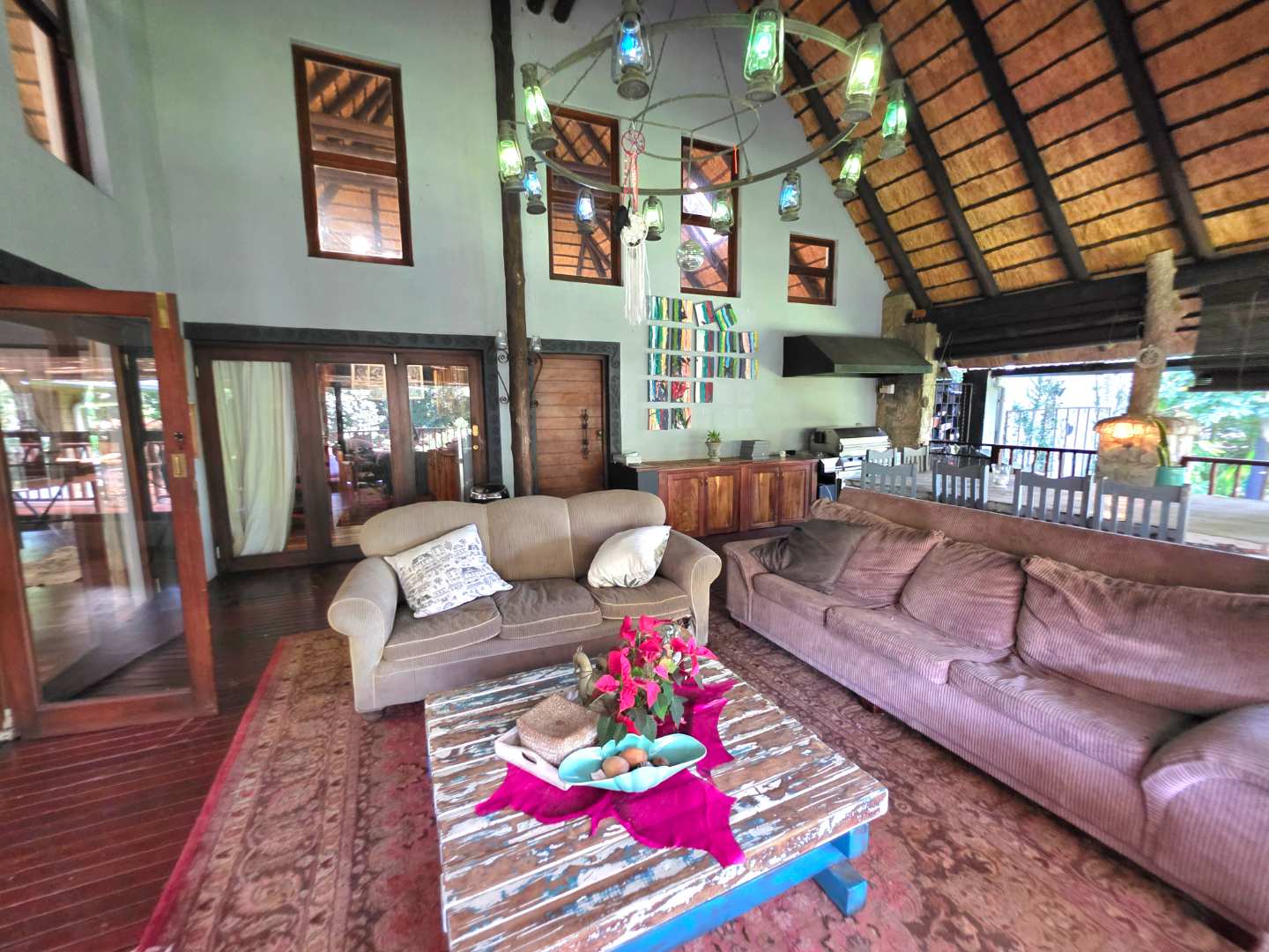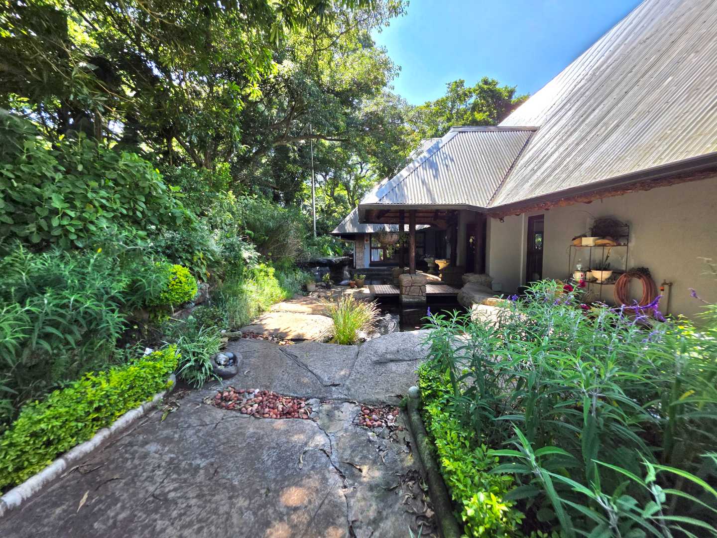 Set in the sought-after Maytime / Kloof Golf Course SRA, this remarkable property offers a rare blend of luxury lodge-style architecture, natural beauty and central convenience. With its African-inspired design elements, koi pond entrance and warm timber finishes, the home delivers a private retreat atmosphere without sacrificing access to schools, amenities or major routes.