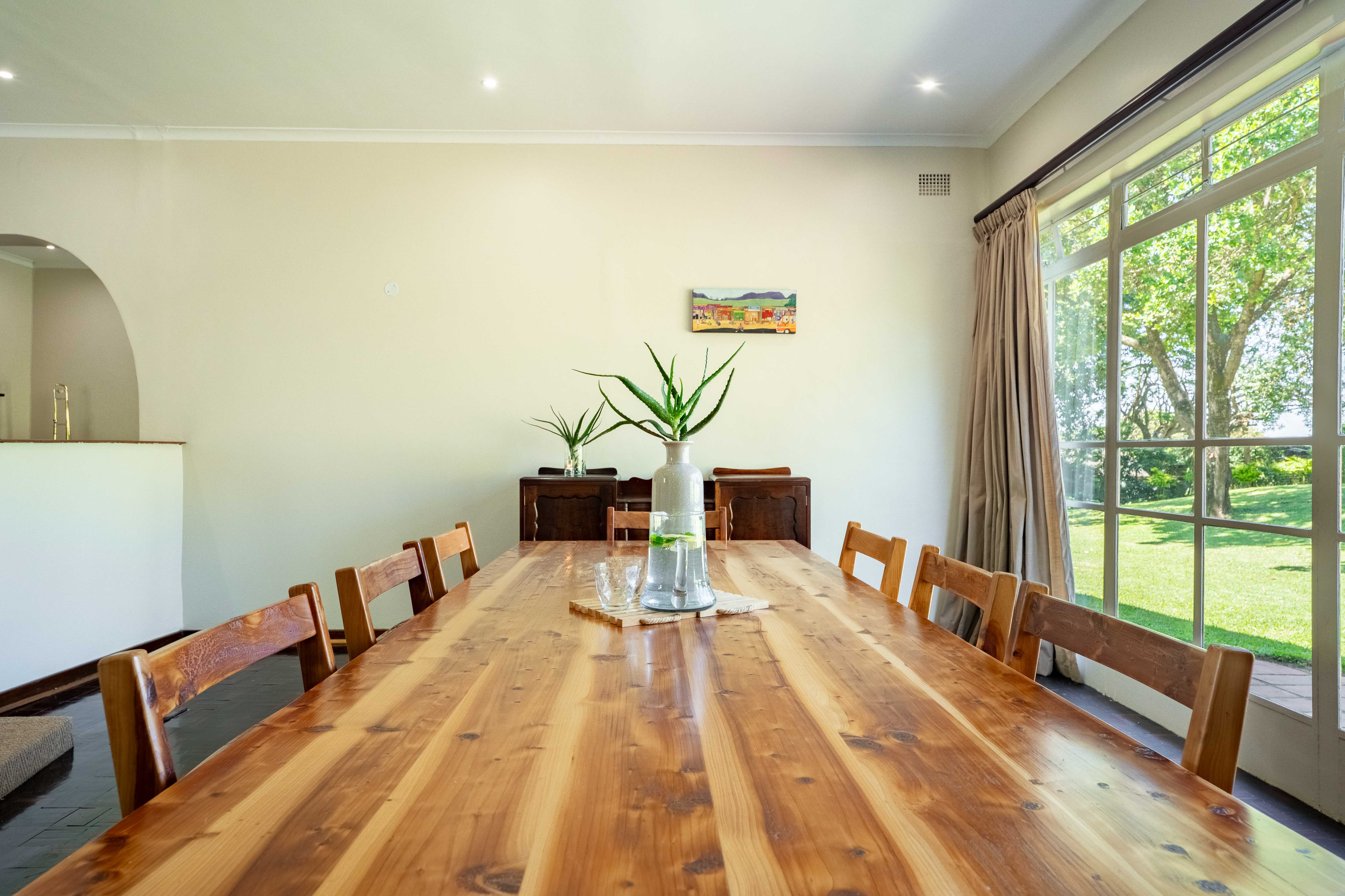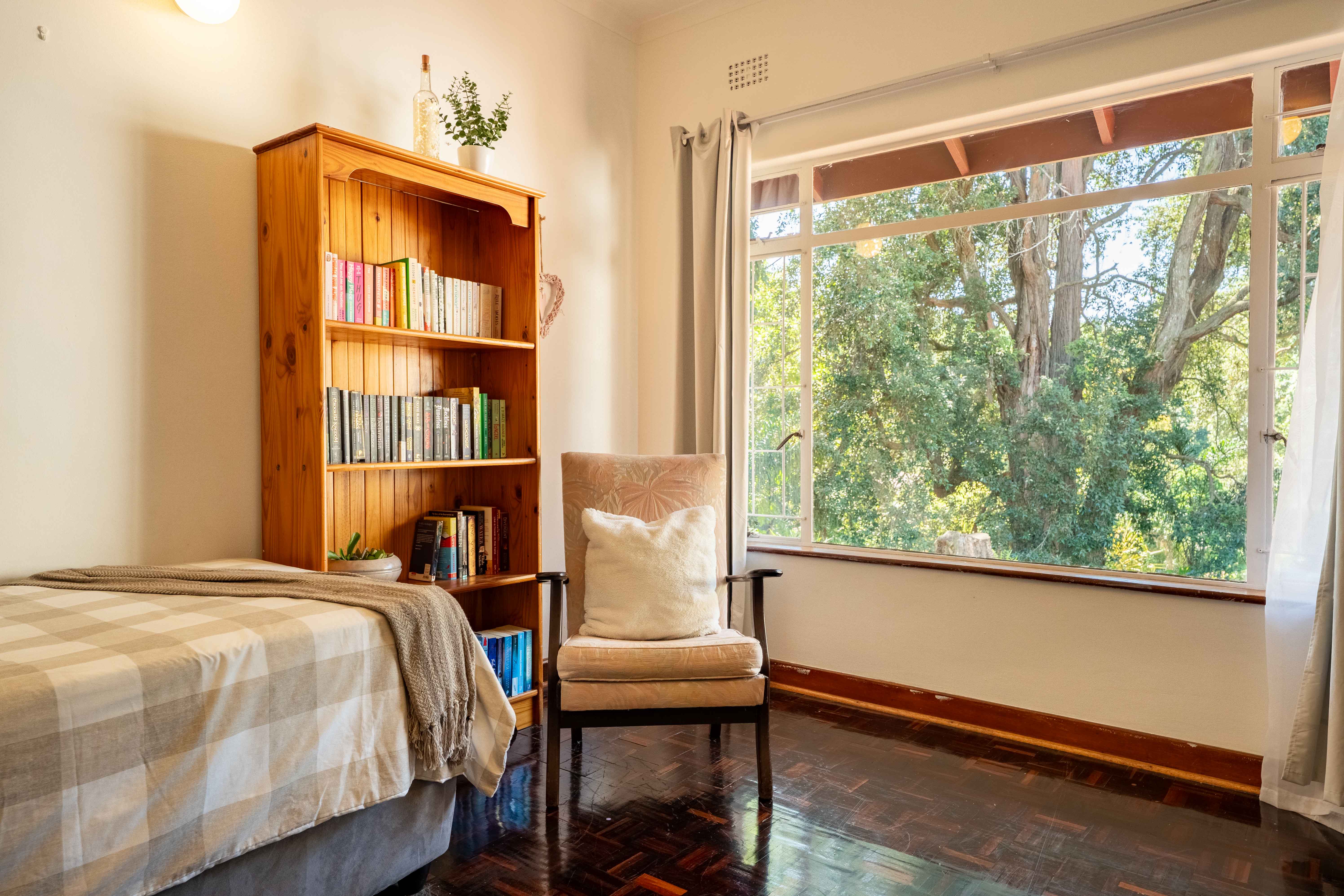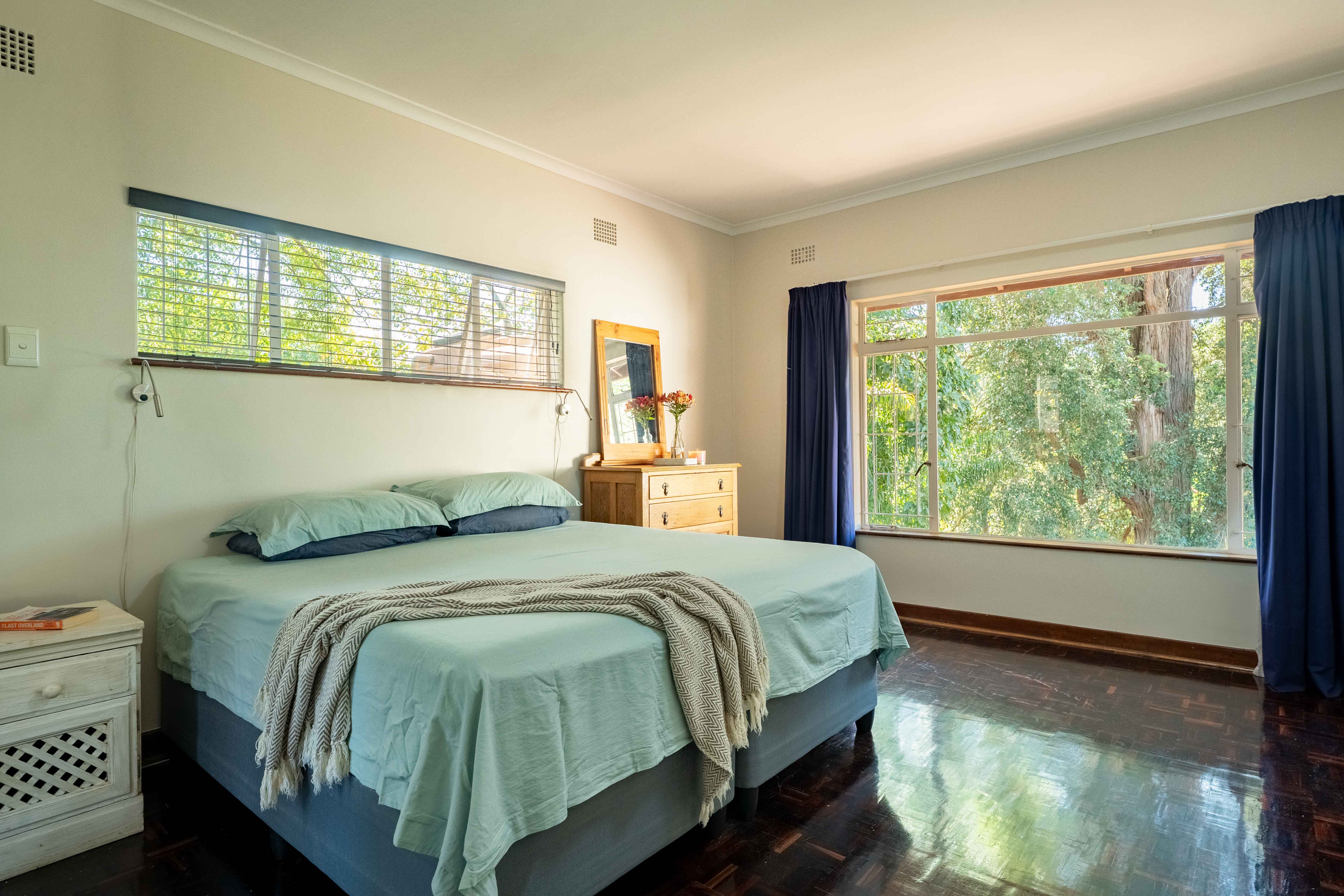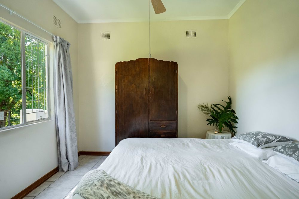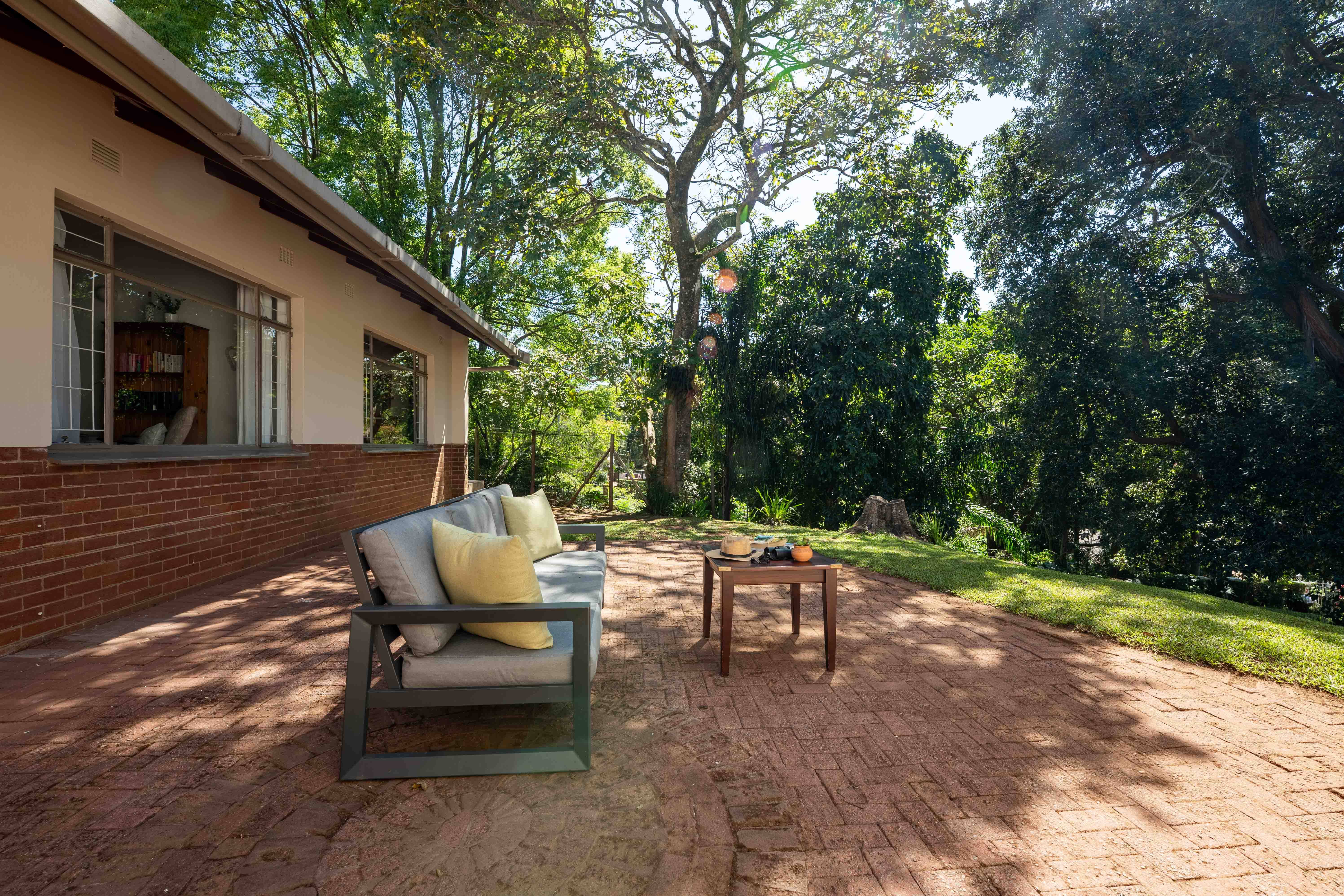 This home has the practical features, solid proportions, large windows and a straightforward layout that works well for family living. The house sits on a sizeable garden in Kloof, with established trees providing shade and enough open lawn for children or pets to play without feeling cramped.