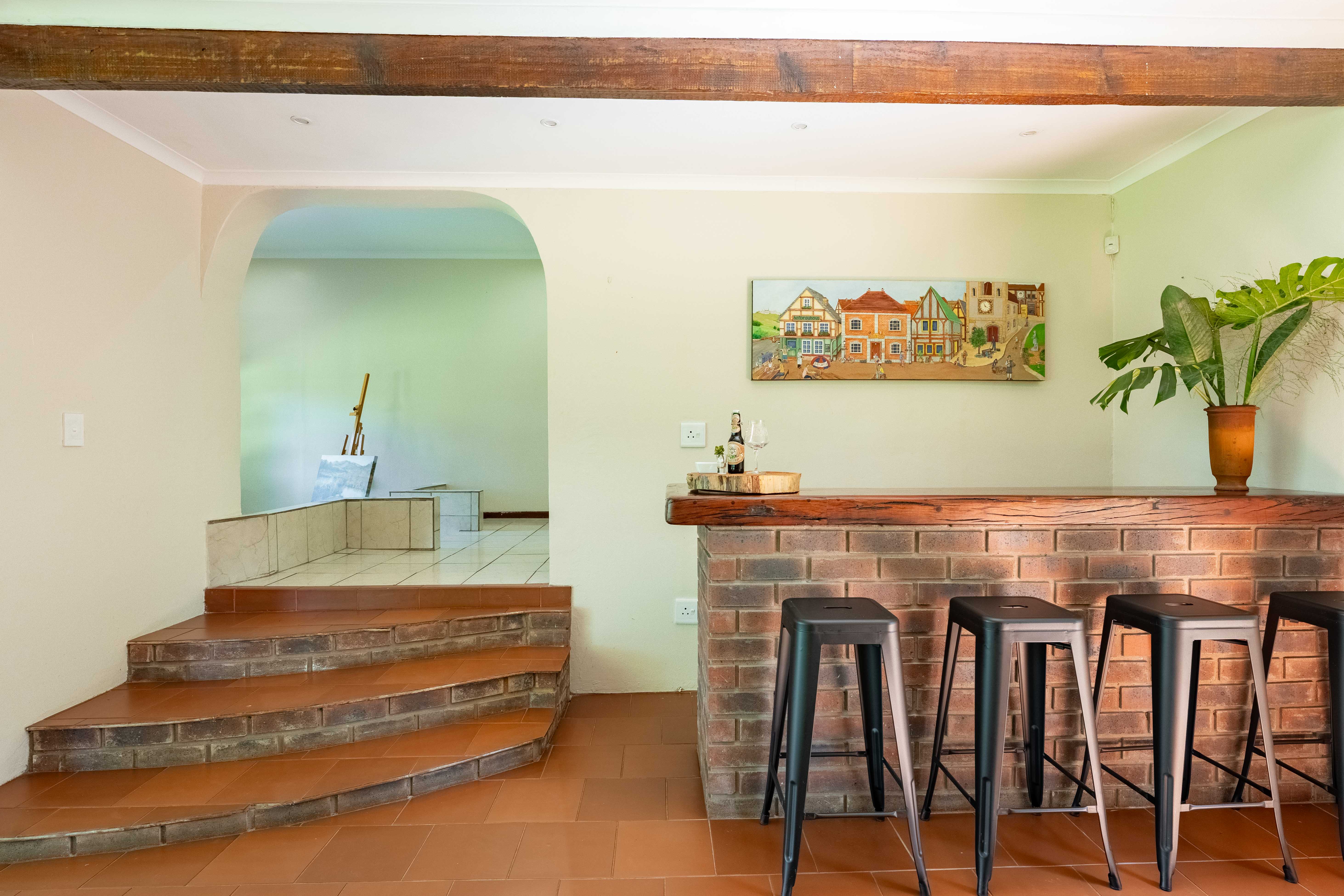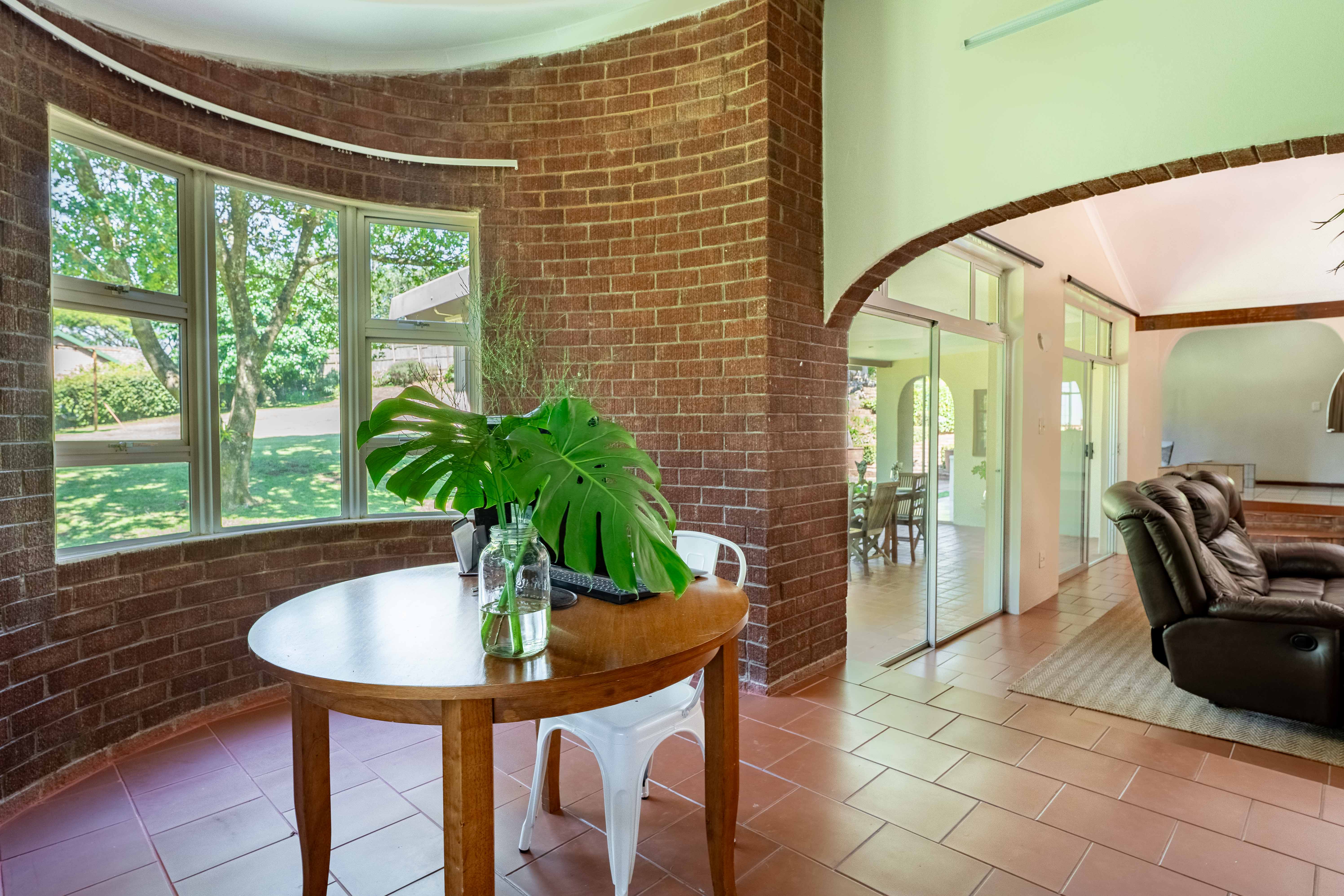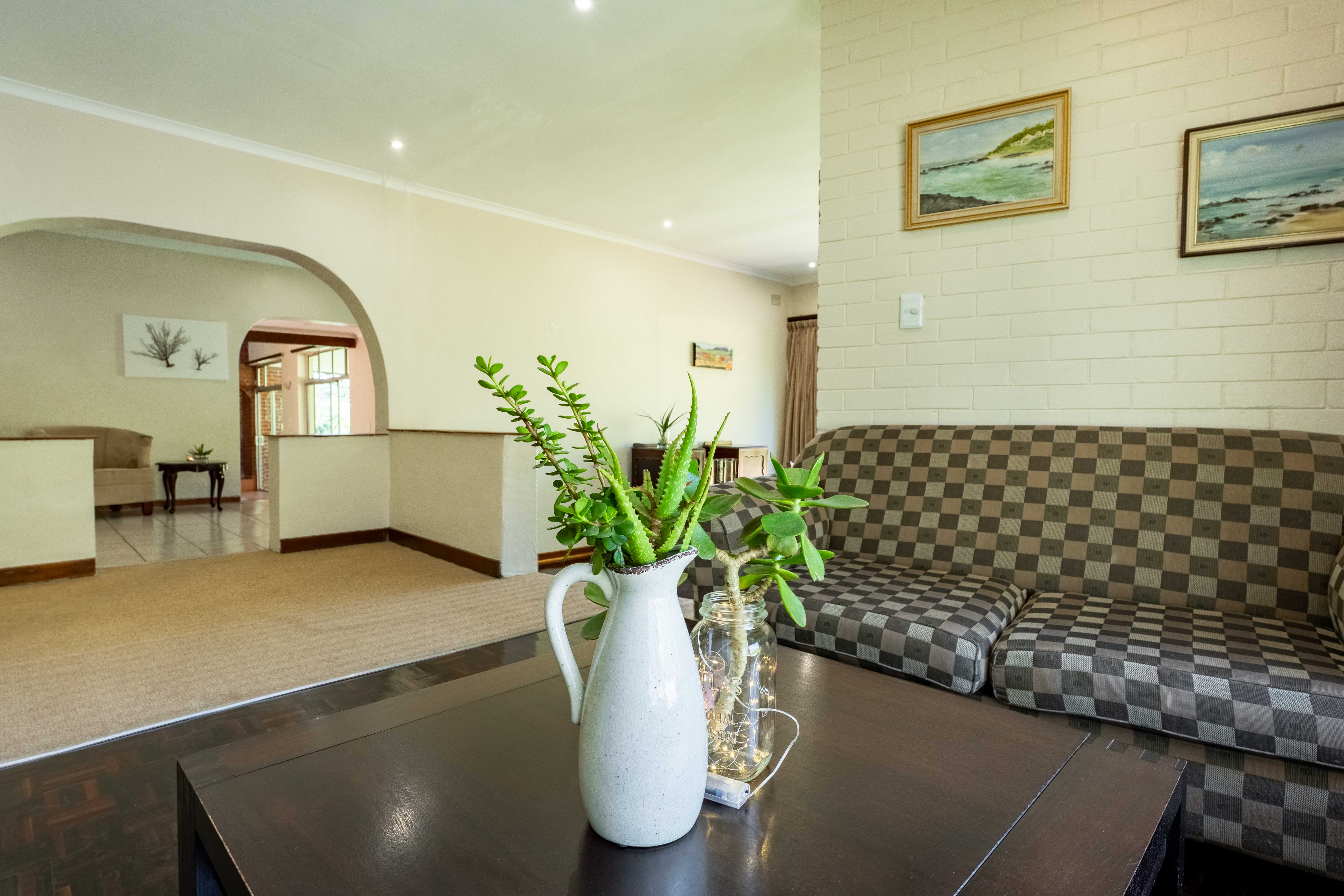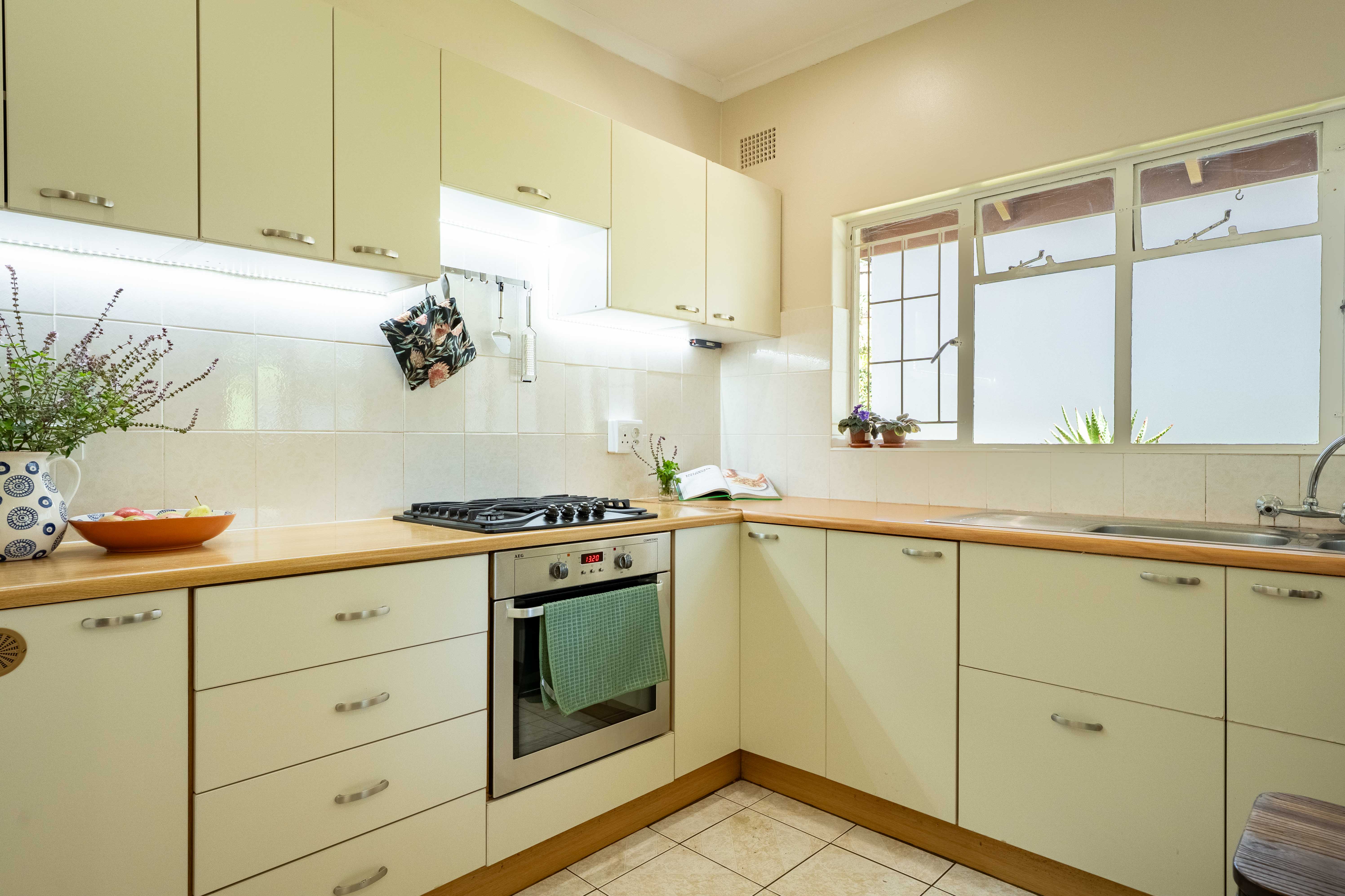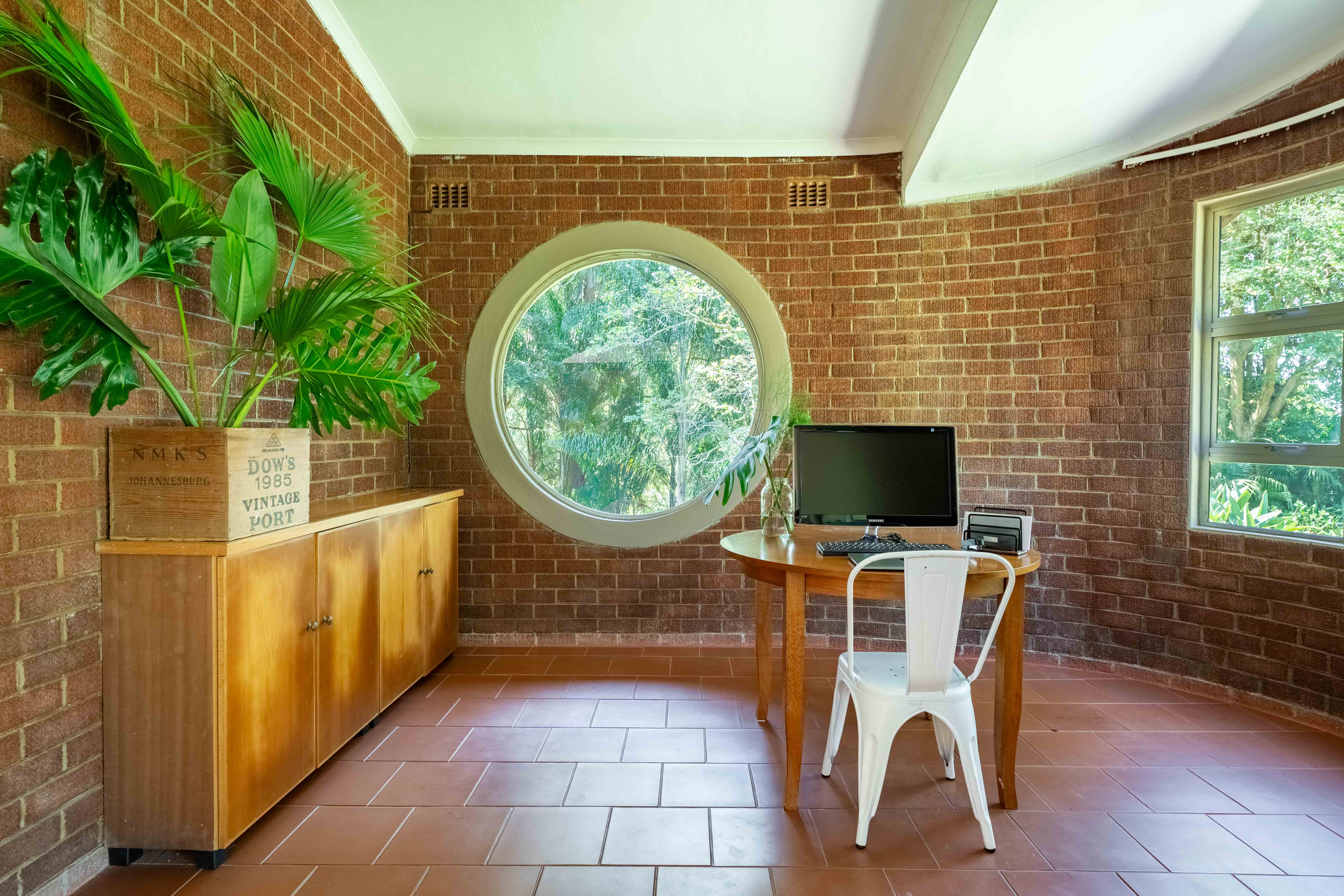This home has the practical features, solid proportions, large windows and a straightforward layout that works well for family living. The house sits on a sizeable garden in Kloof, with established trees providing shade and enough open lawn for children or pets to play without feeling cramped.
