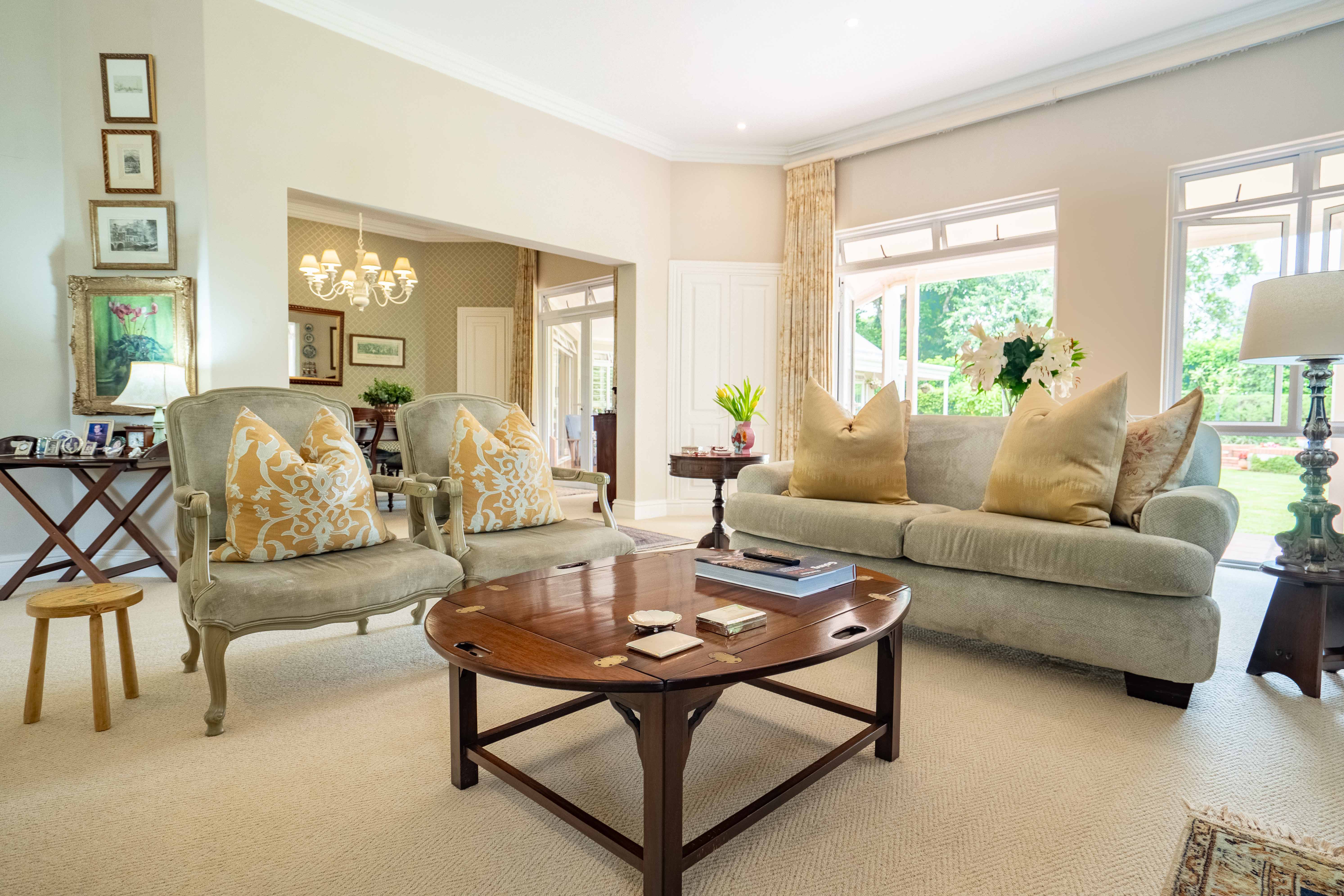 Welcome to Hurlstone in the heart of the renowned Kloof Blue Zone and Golf Course Area. This home is built to wrap you in the arms of its ambience and you will start seeing your families future here from the first glance! The 140sqm verandah is north facing and made for moments with friends and family, it overlooks the exceptional, manicured gardens with endless play space. Inside you have an expansive lower level with a size ale formal lounge and elegant dining room which lead out to the verandah. There is also an open play living space with TV lounge that flows to the full fitted kitchen and breakfast room and also boasts doors to the verandah. Both living rooms have fireplaces.