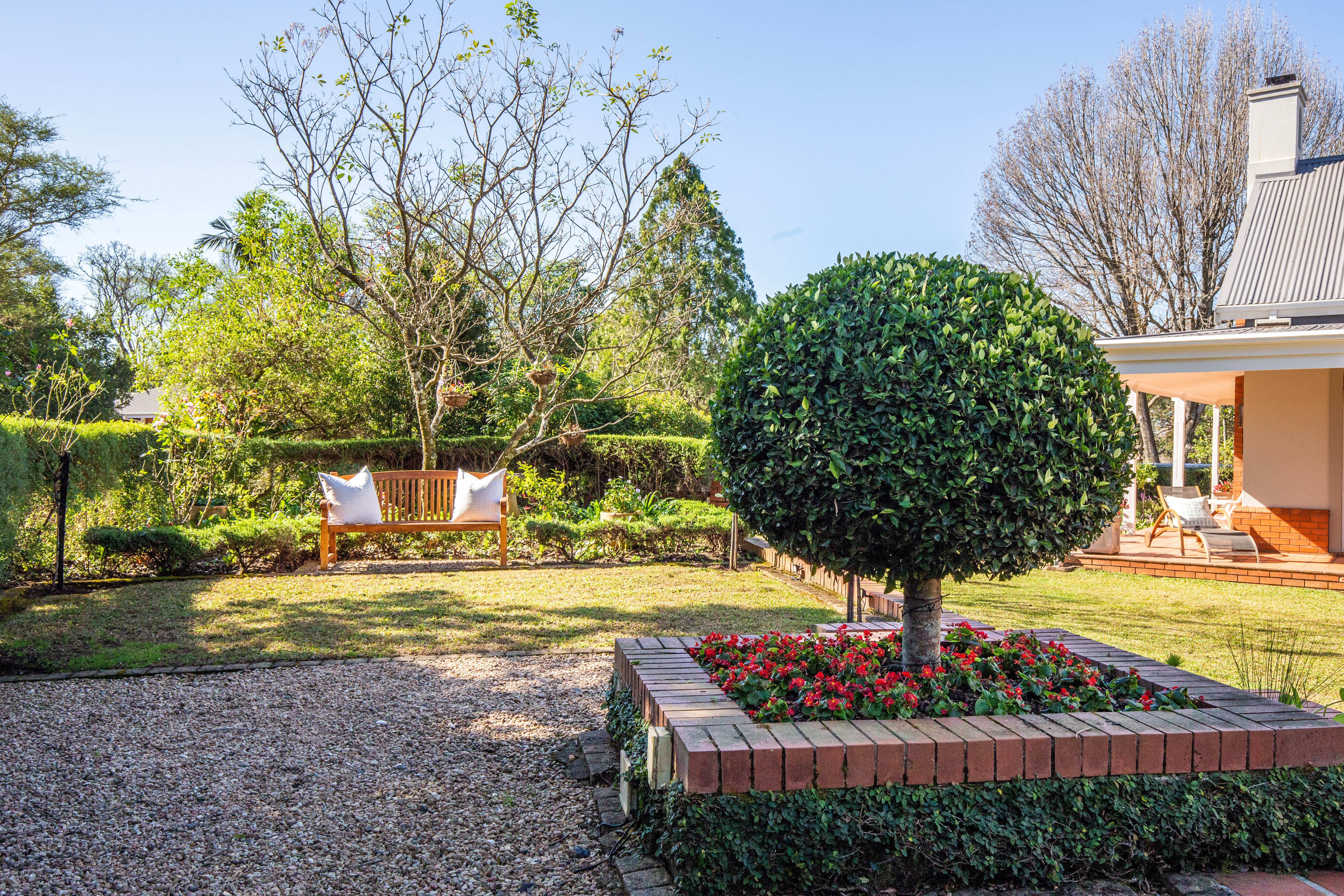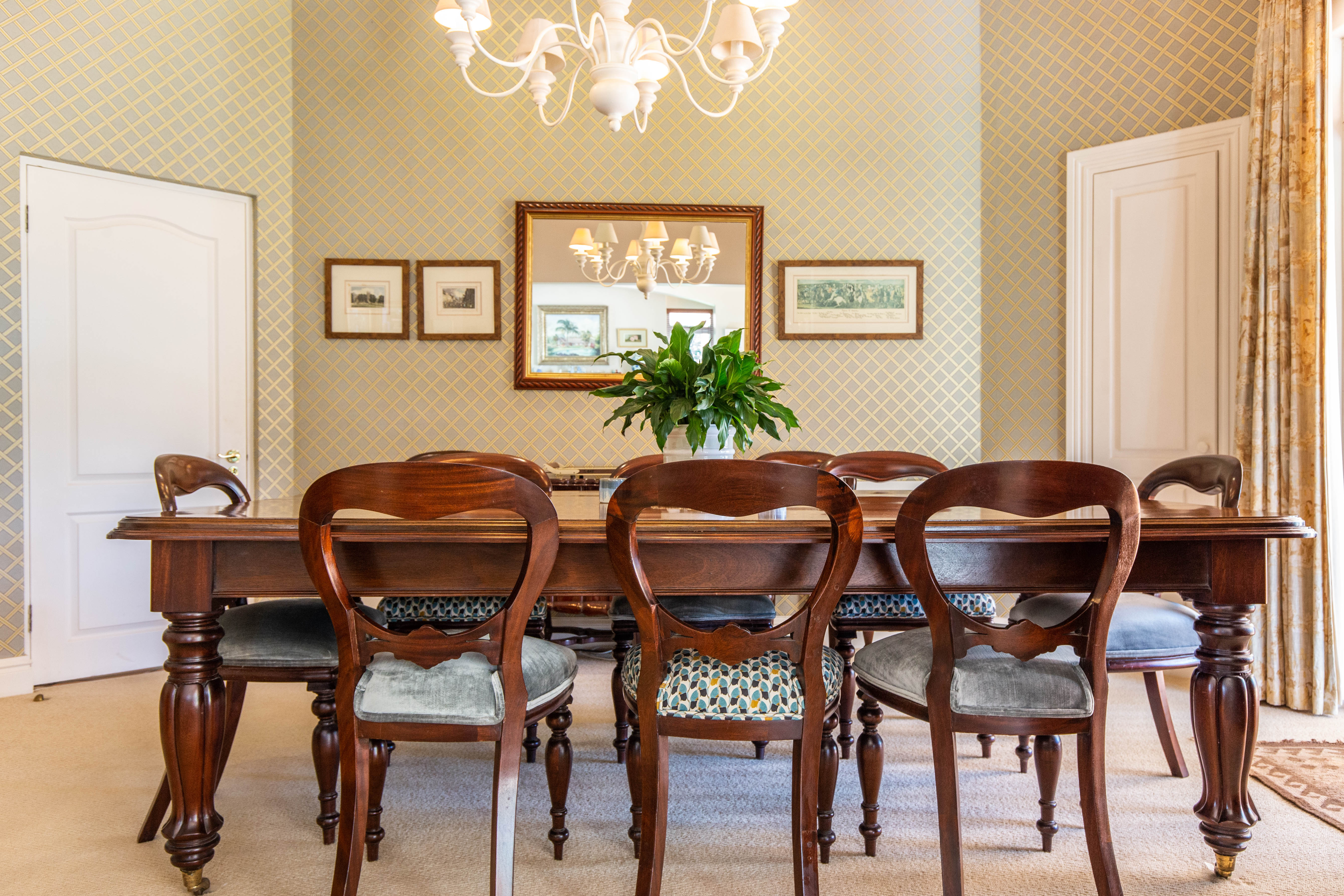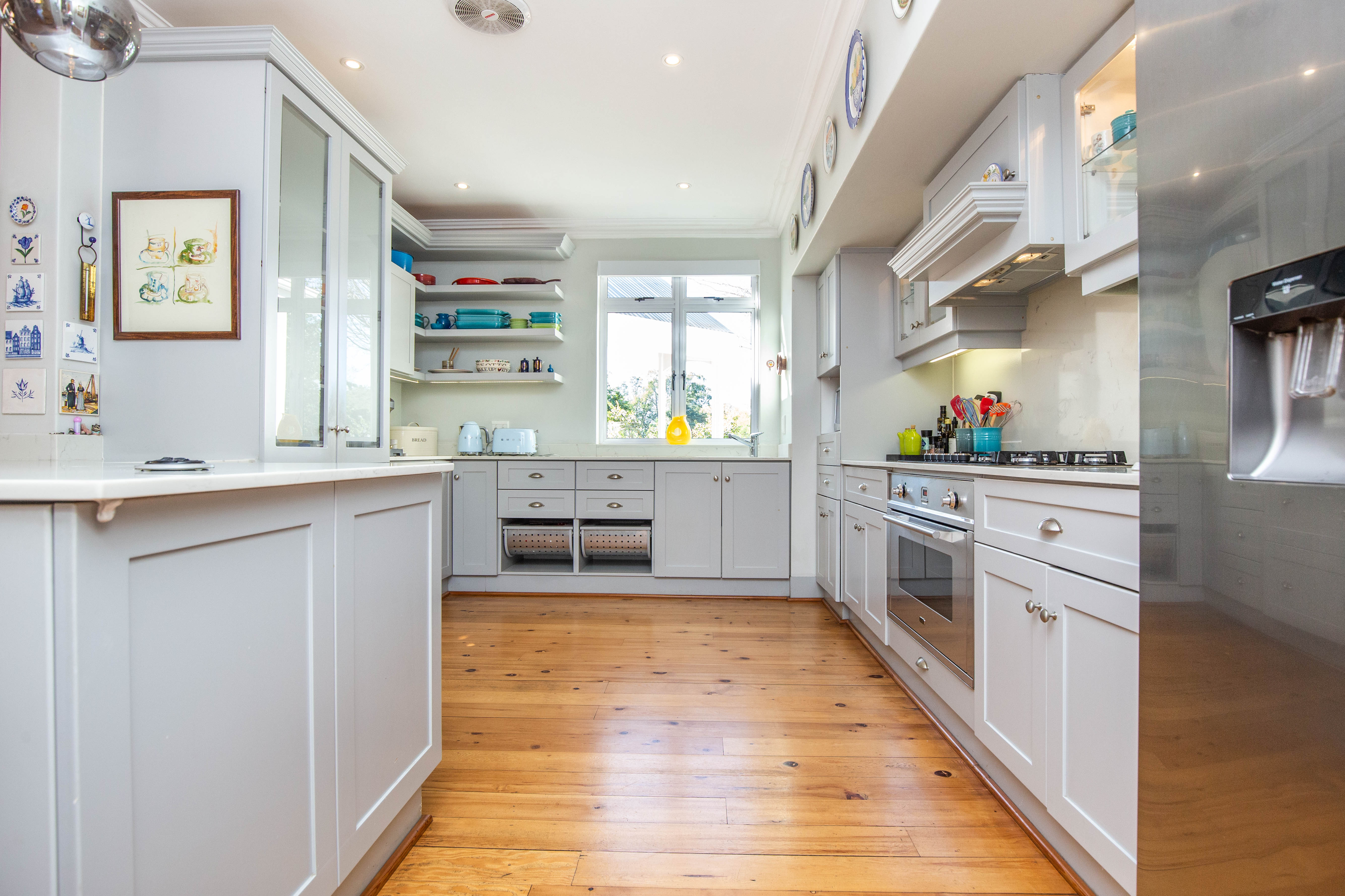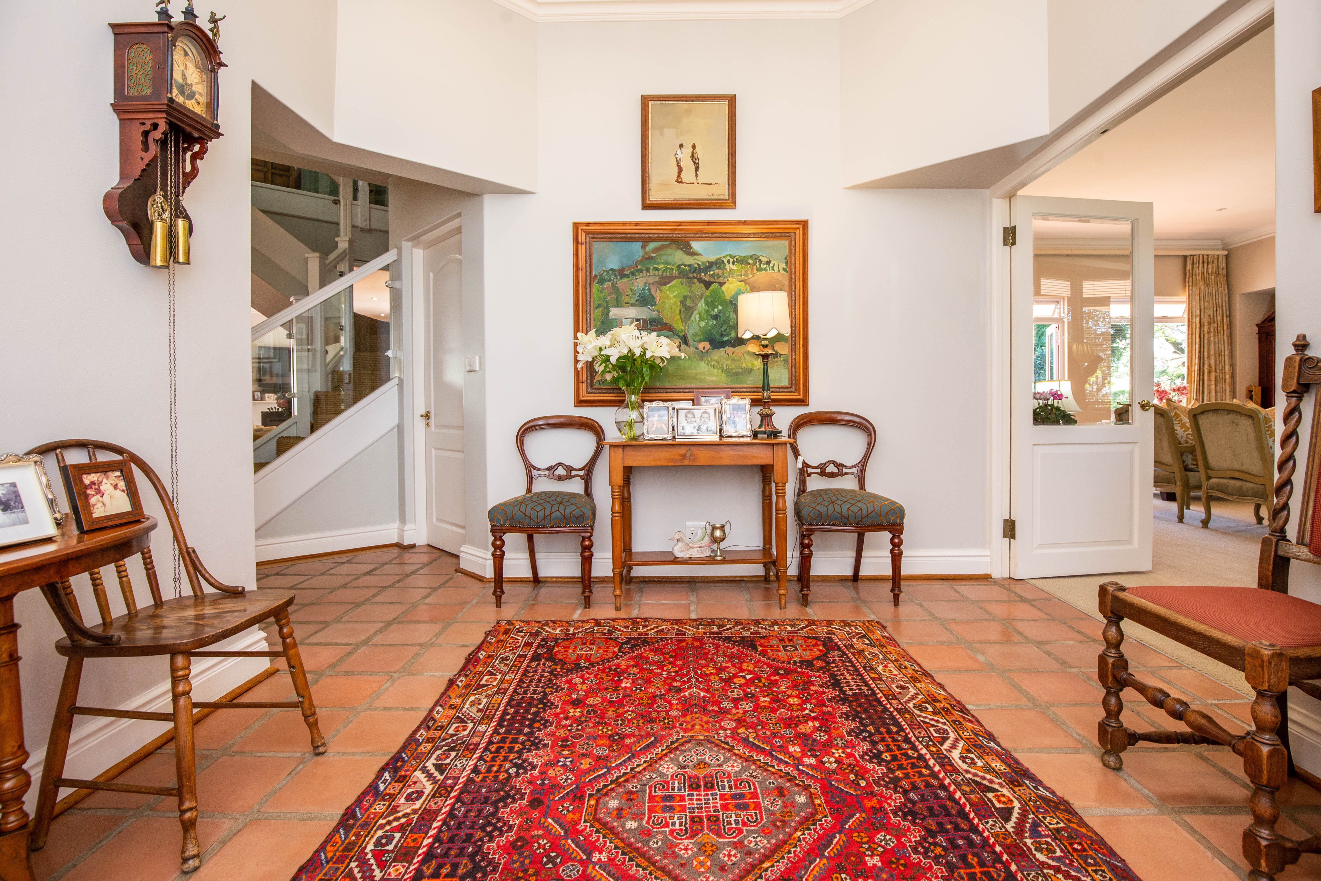 Welcome to gorgeous Hurlstone Estate, the crown jewel of the Kloof Golf Course Blue Zone. This elite private Estate is home to just 5 prestigious homes and offers a superior lifestyle for the discerning investor. A home here is a rare find indeed and we are proud to offer one of the finest! This home has a colonial farmhouse aesthetic with the quintessential expansive wrap verandah leading out to a bowling green level lawn in both the south and north gardens. The landscaping is breathtaking and you have complete privacy from the neighbouring homes. The home boasts solid Oregon feature floors and luxury carpeting throughout. You can enjoy a formal lounge with fireplace that leads out to the verandah as well as a separate formal dining room elegantly appointed. The heart of the home is family focused with an open plan bespoke kitchen that opens to the air-conditioned TV lounge and breakfast room, both of which offer doors to the gardens. The kitchen also has a large utilities room for laundry and scullery space.