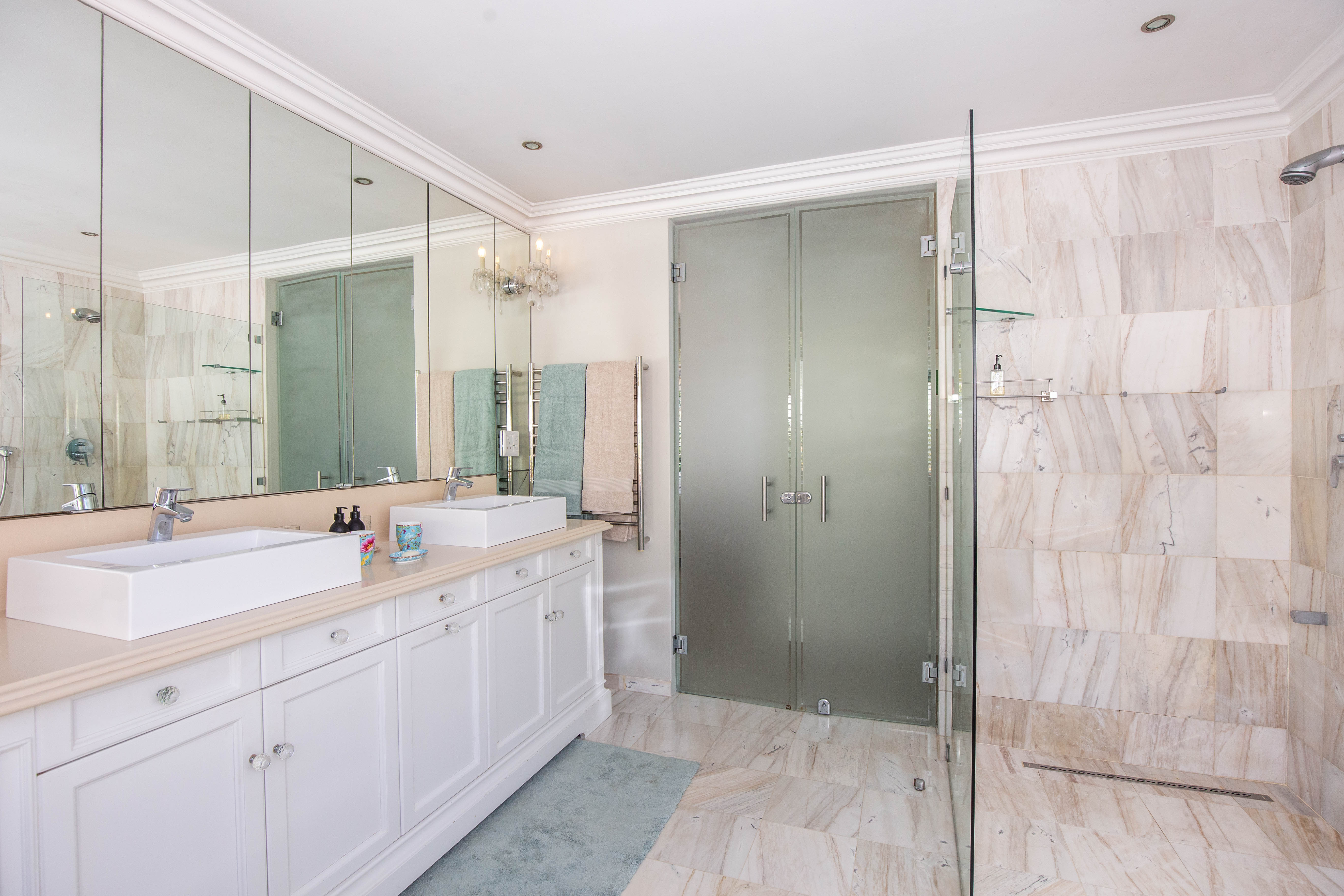 Downstairs you have the fully air-conditioned main suite with exquisite en suite and walk in closets as well as doors to the verandah. A further two full en suite and bright bedrooms are set close to the main suite and also offer doors to the garden. Upstairs is another full air- conditioned suite perfect as additional family entertainment space, gym, hobby room or as another bedroom suite. It has a large lounging area, a smaller space which can be used as a study or bedroom area and a full en suite bathroom. This home also provides you with 2 staff rooms and a staff kitchen adjoined which combined could be converted to a great cottage. This home is the perfect opportunity for those who love the independence of freestanding combined with the security of complex living. Space and light abound in this gorgeous home and you are nestled in the renowned Blue Zone with top notch security and easy access to the best private schools the area has to offer as well as quick highway access. Own the most desirable address in the Upper Highway at Hurlstone. I look forward to your appointment!