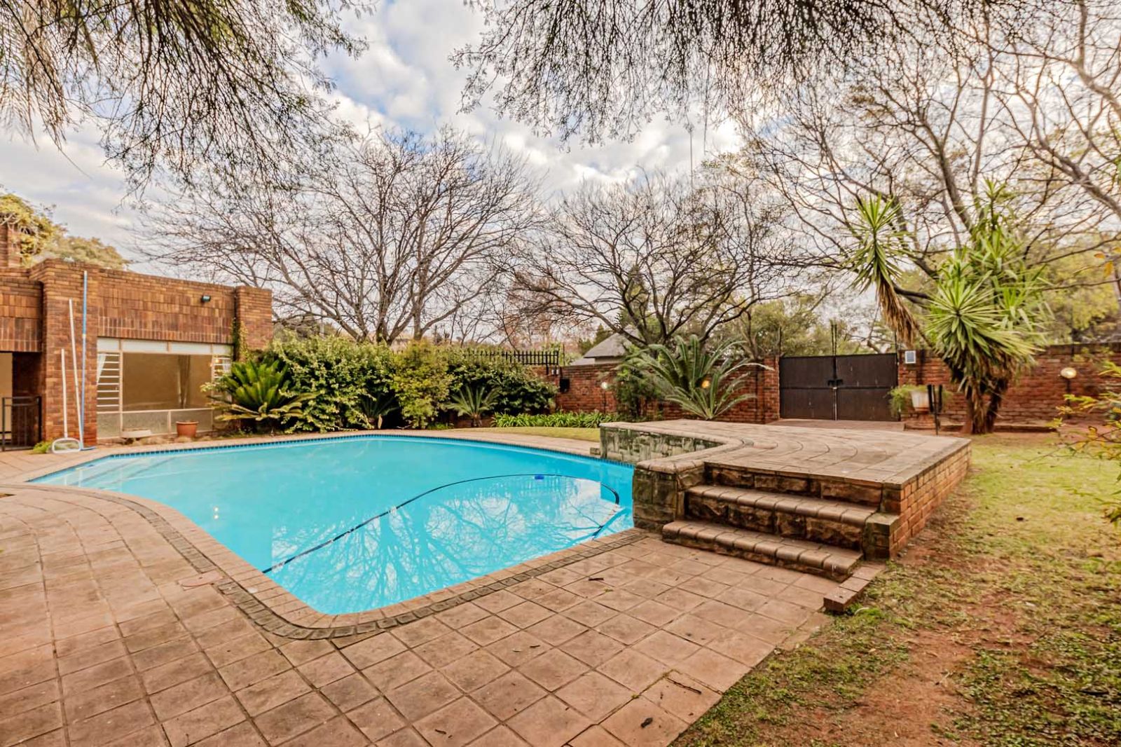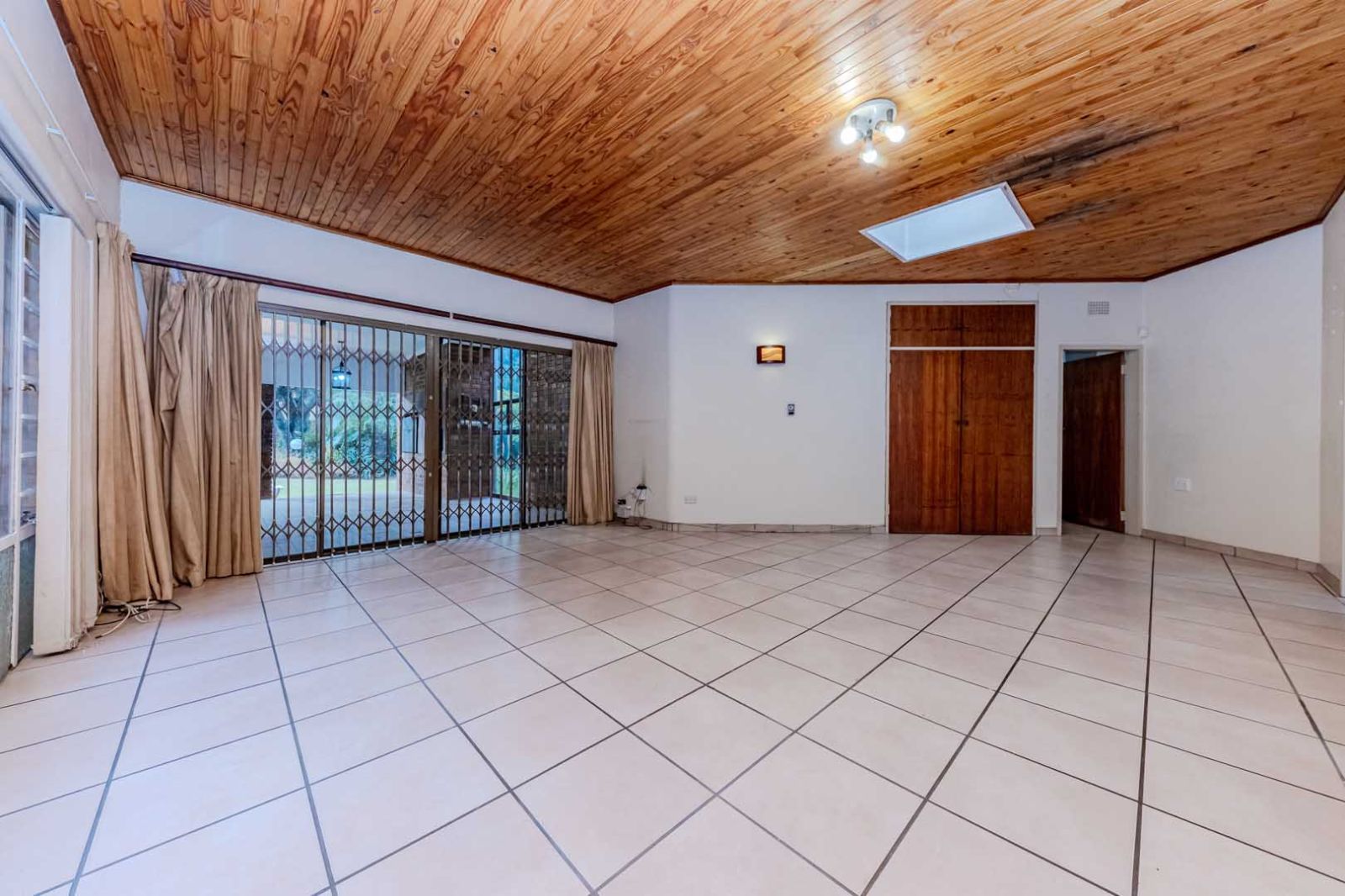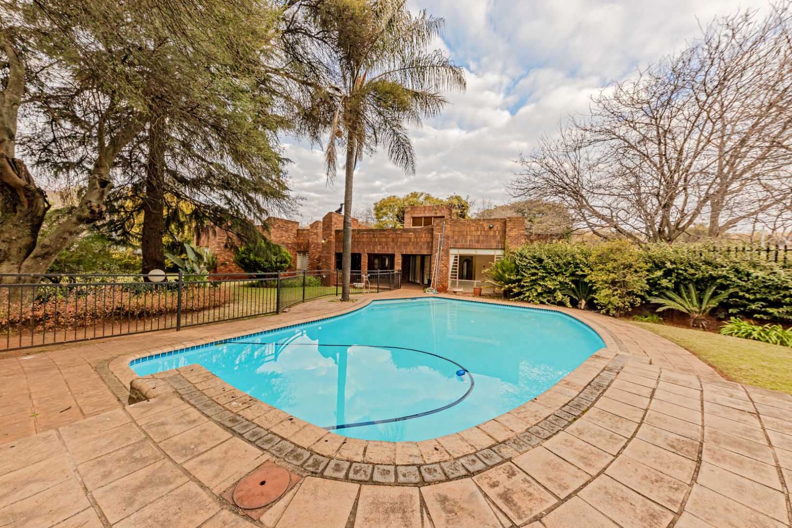 The dining room opens to a covered patio with built in braai, perfect for entertaining while overlooking the sparkling pool and the lush mature garden.