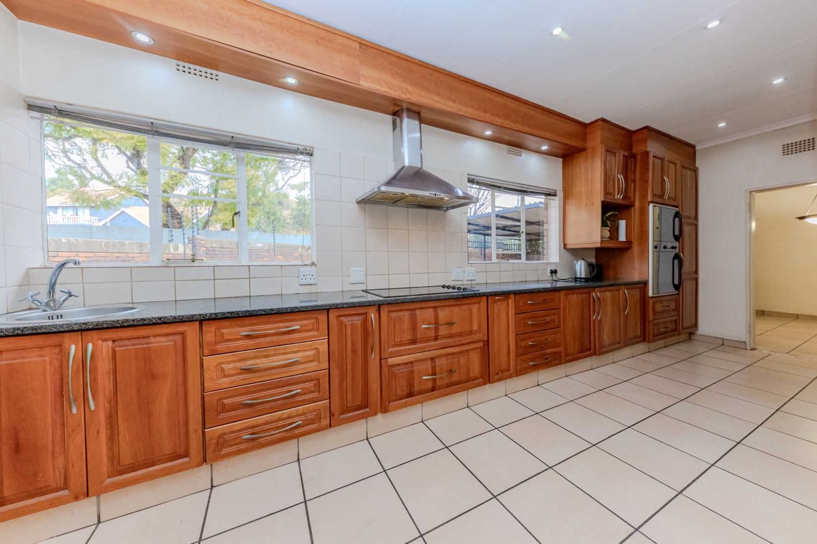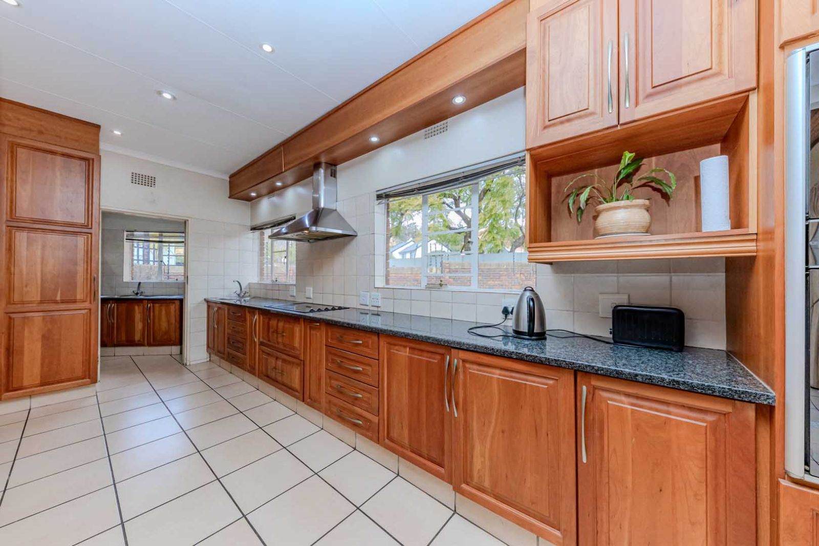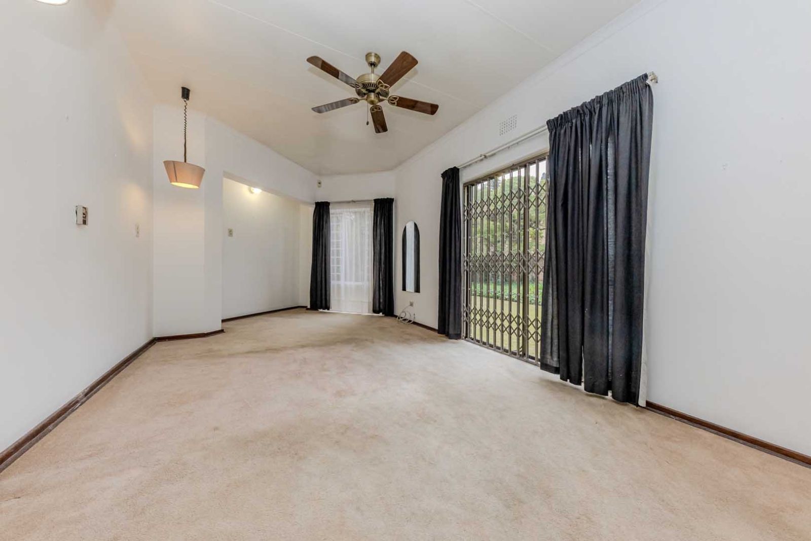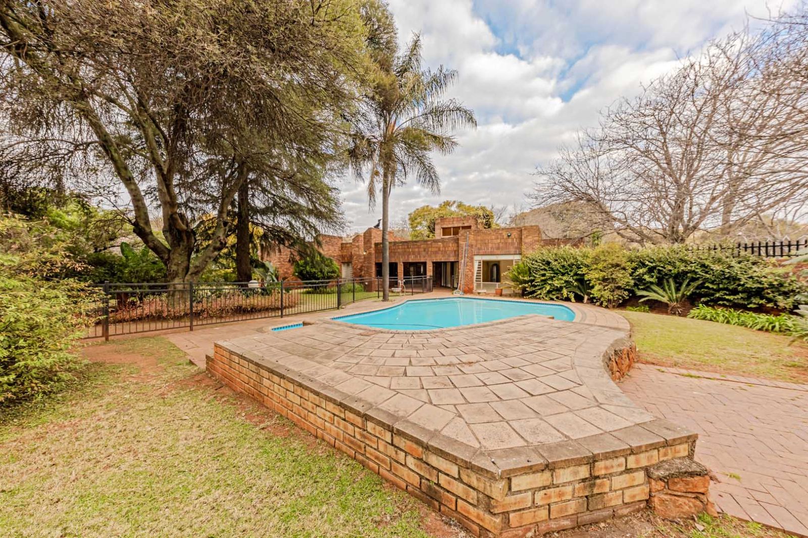 The dining room opens to a covered patio with built in braai, perfect for entertaining while overlooking the sparkling pool and the lush mature garden.