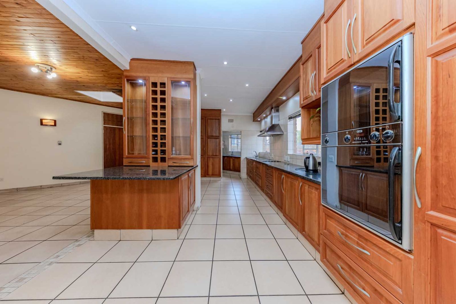 Gourmet kitchen with granite tops, generous counter space, high-end cupboards, double eye-level oven, hob and separate scullery.