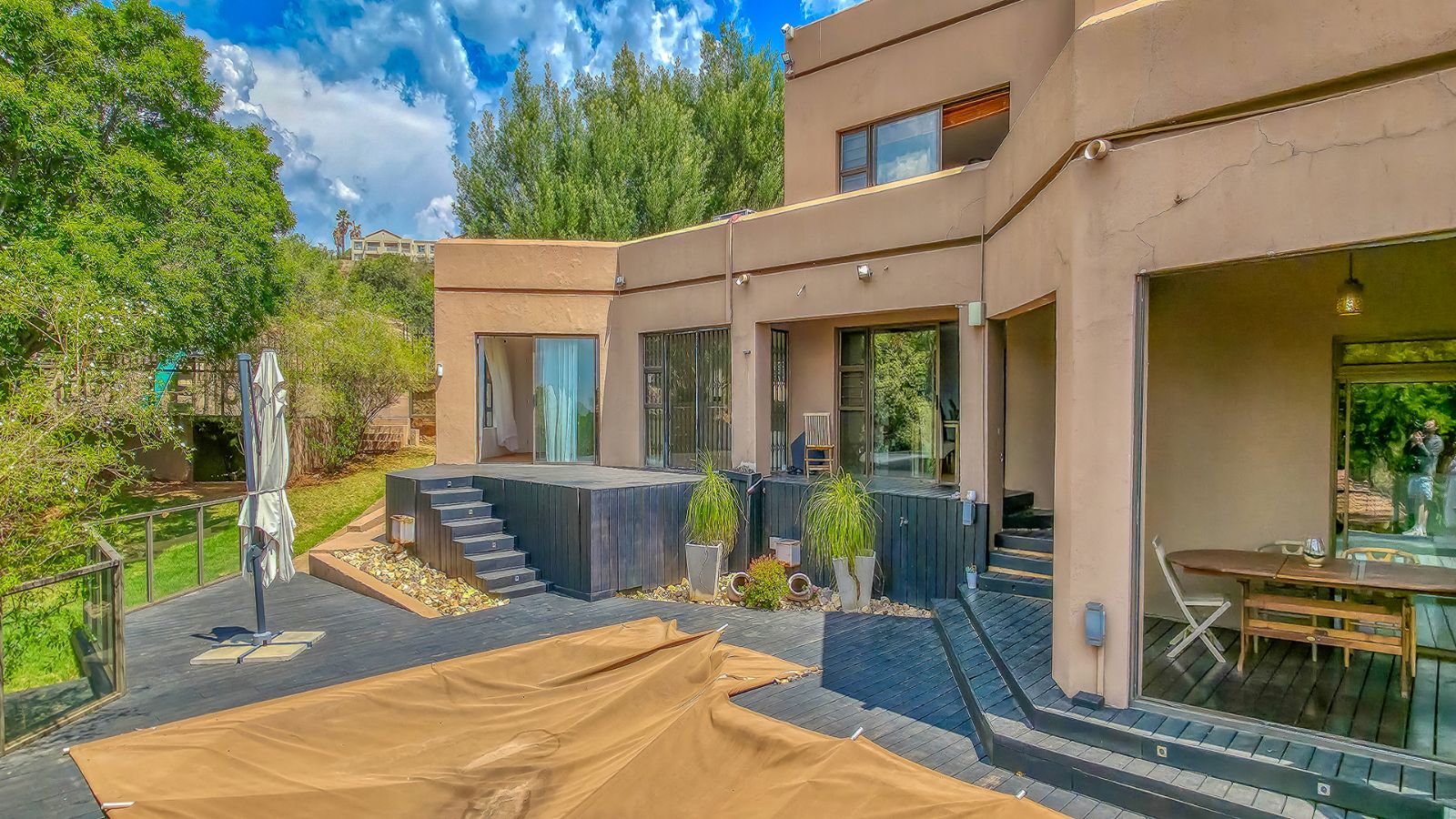 Nestled in the leafy suburb of Kloofendal, surrounded by majestic rock formations and sweeping views, this modern double story home perfectly blends luxury, comfort and style.
