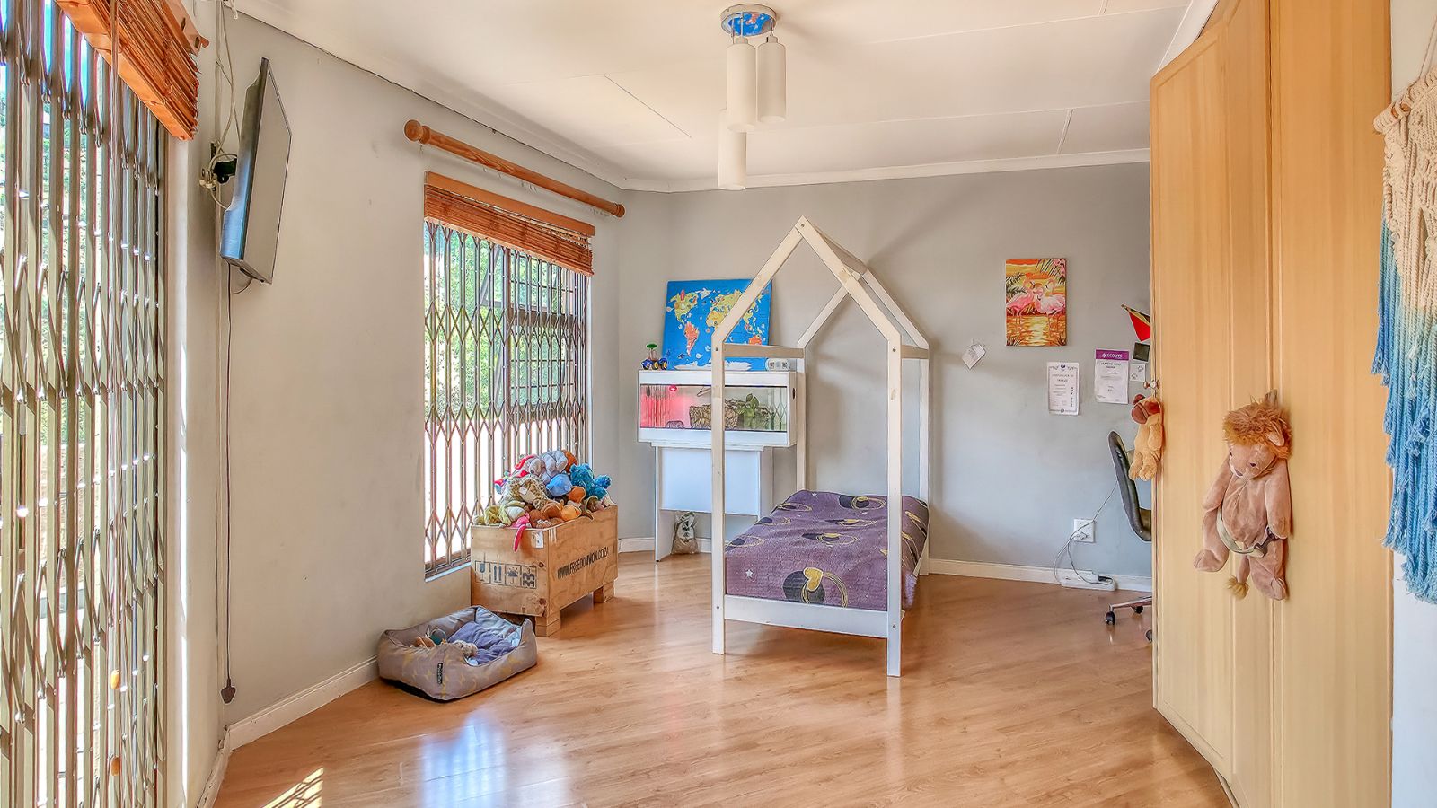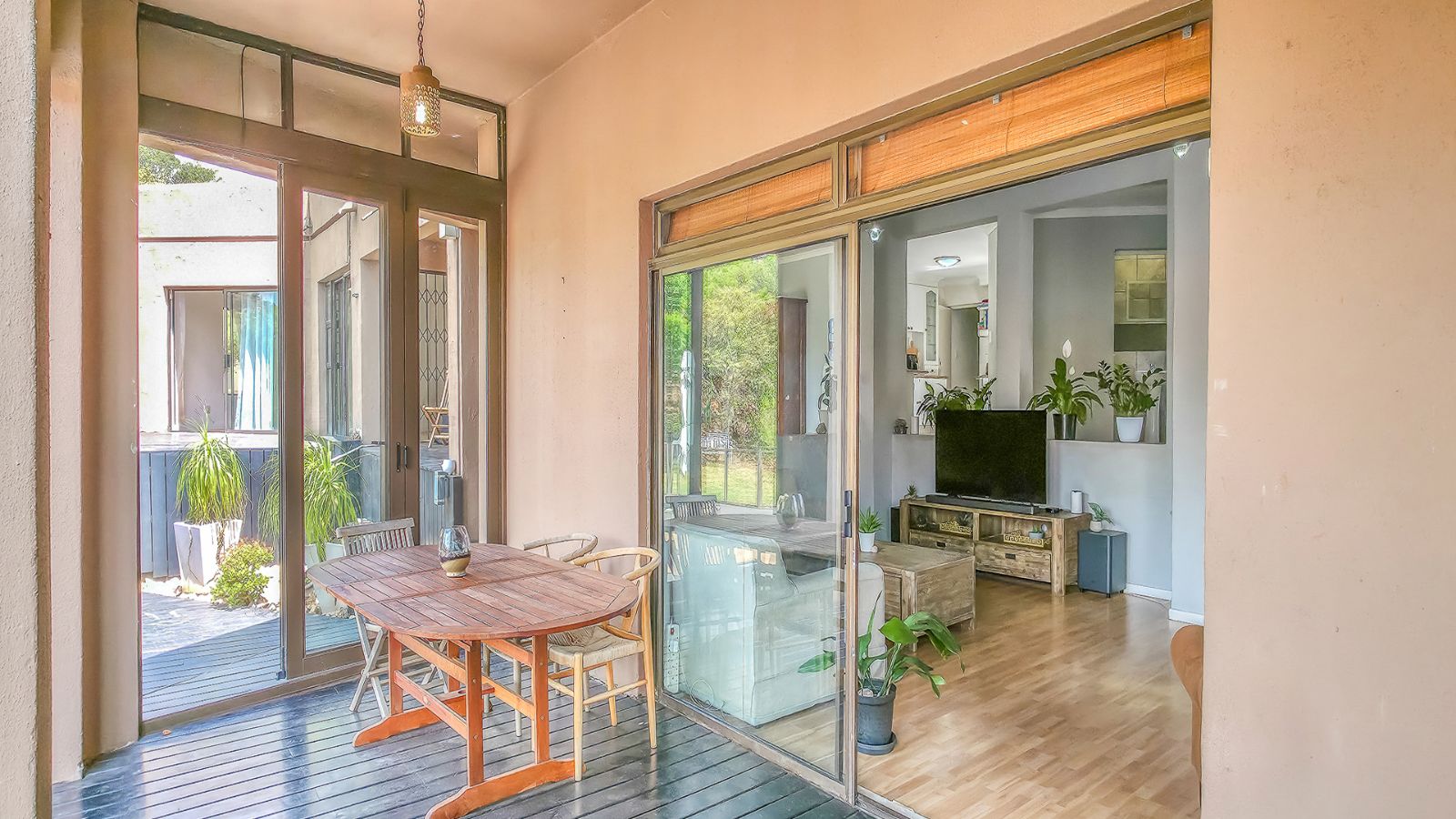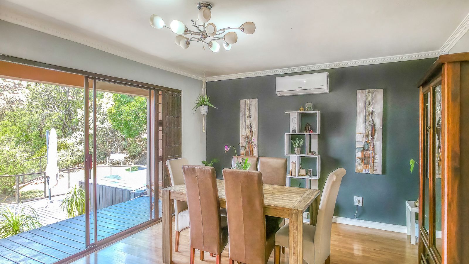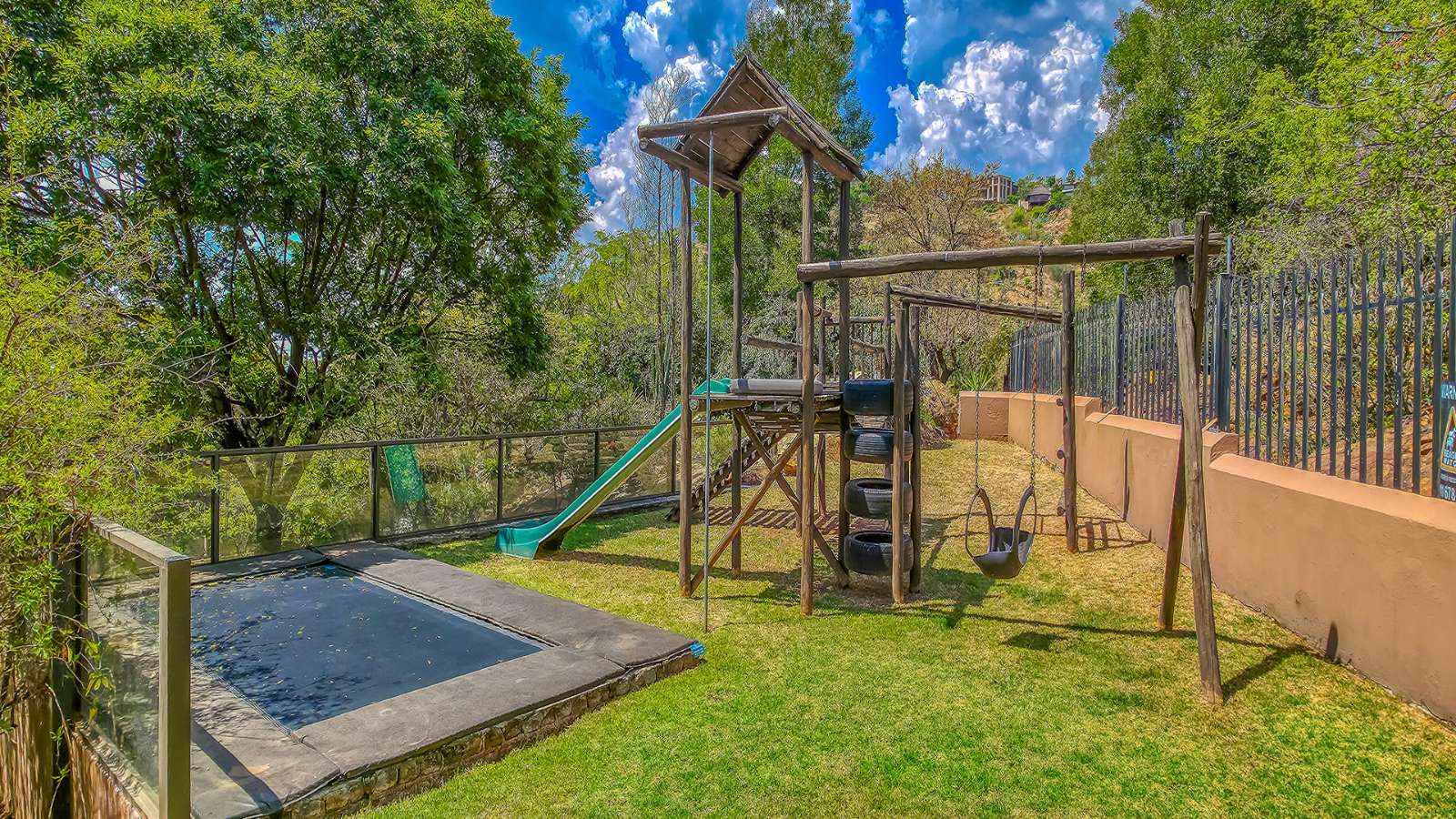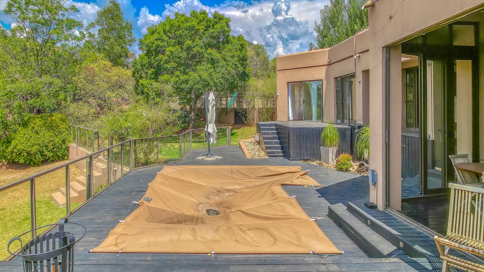 The open plan living areas flow seamlessly onto wooden decks that overlook a manicured garden, a secluded braai area and a secure play area for children - this home is ideal for family living as it also has a large flat that offers versatile space for the extended family or a large functional office.