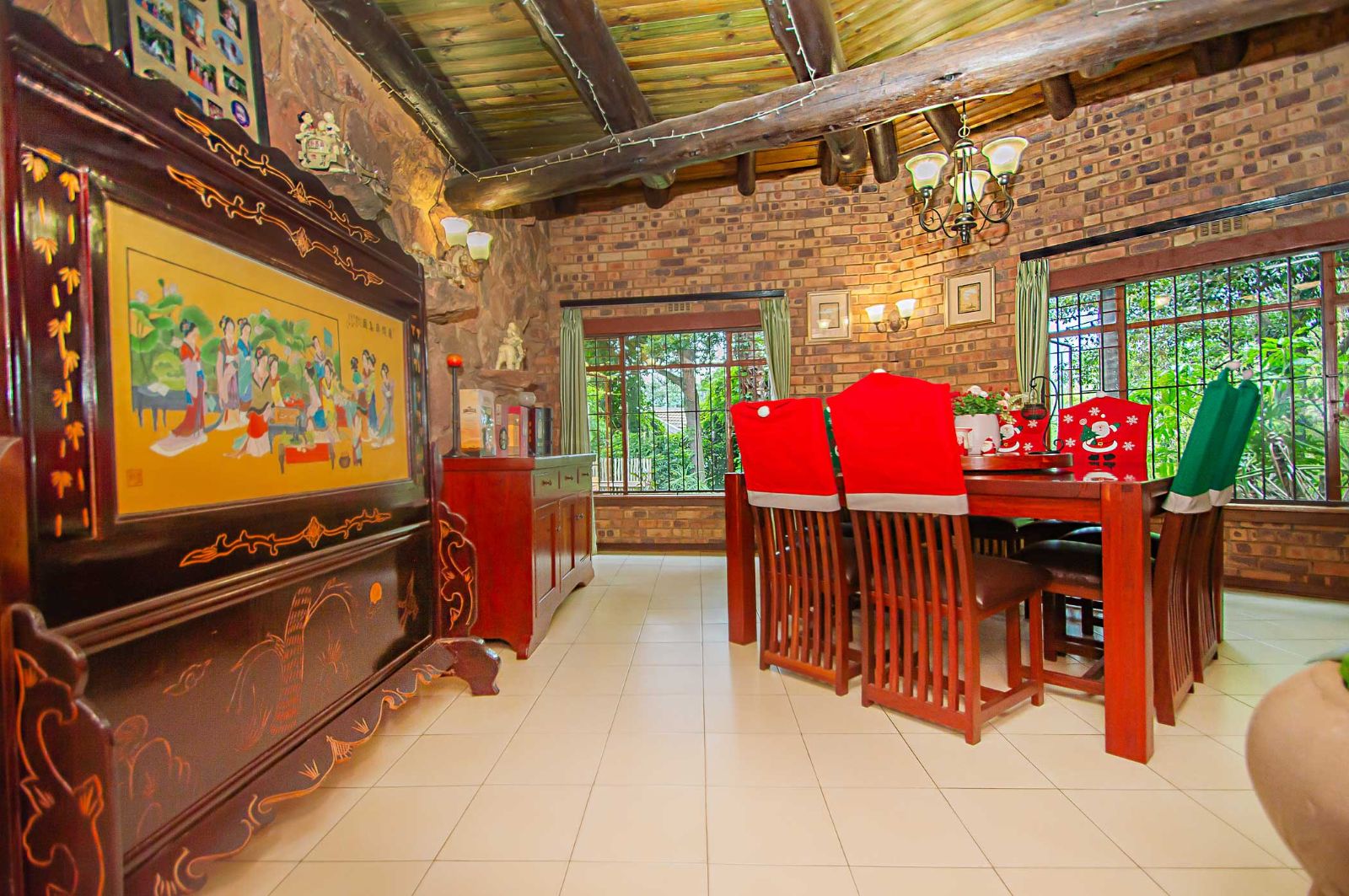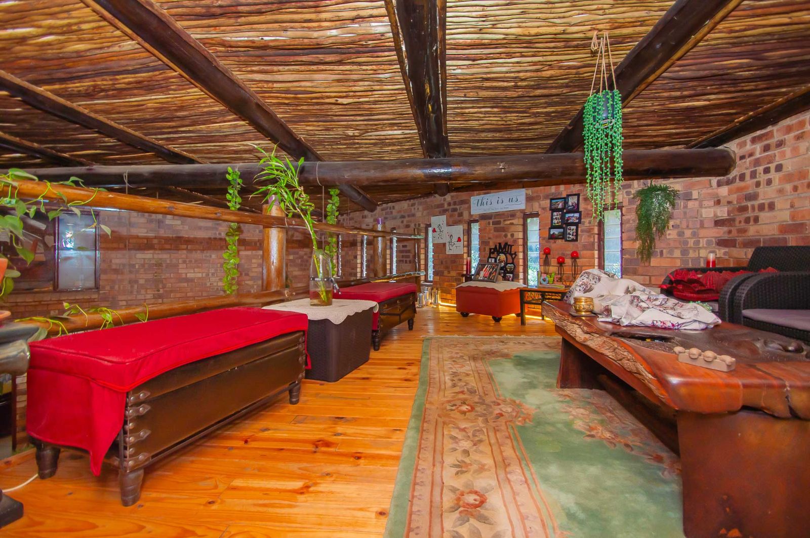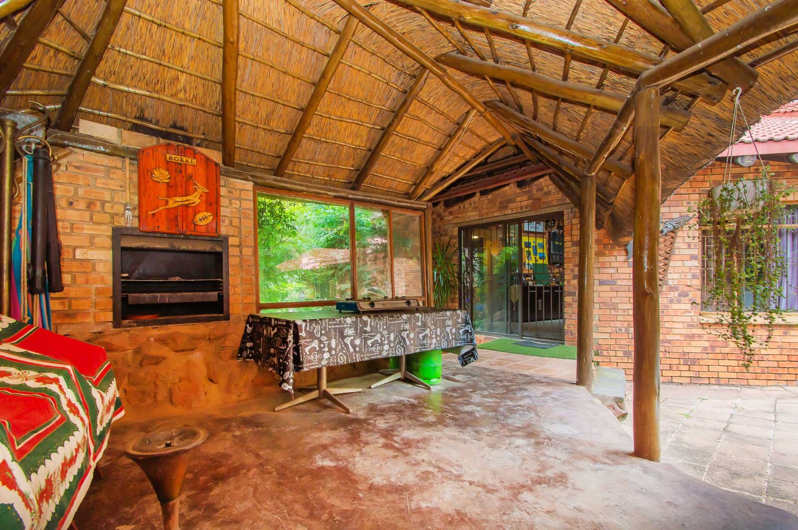This room flows into the dining room, lounge, family room, and bar which opens up onto the thatched lapa, covered entertainers patio and swimming pool (note: the swimming pool needs resurfacing and repairs)