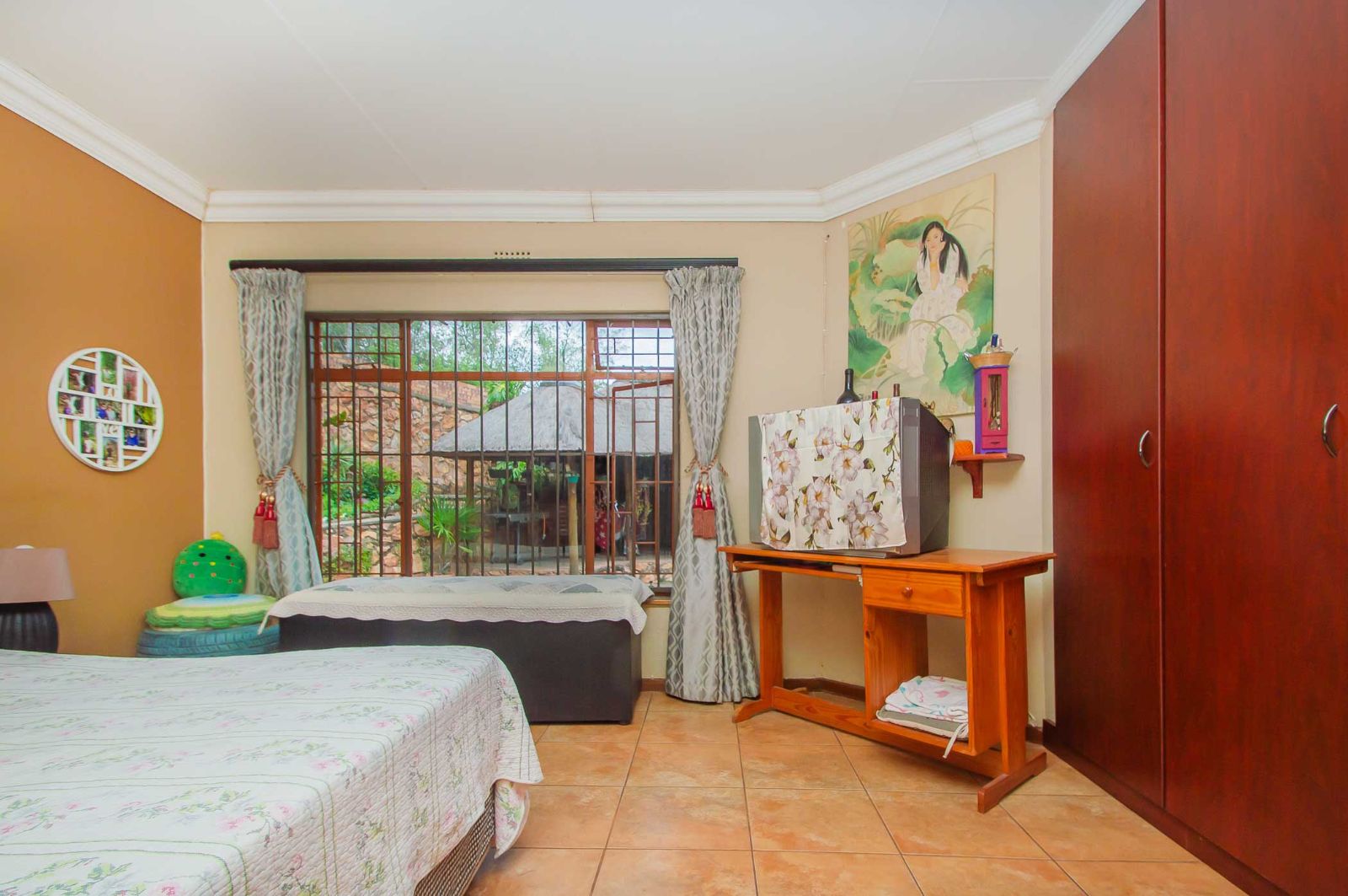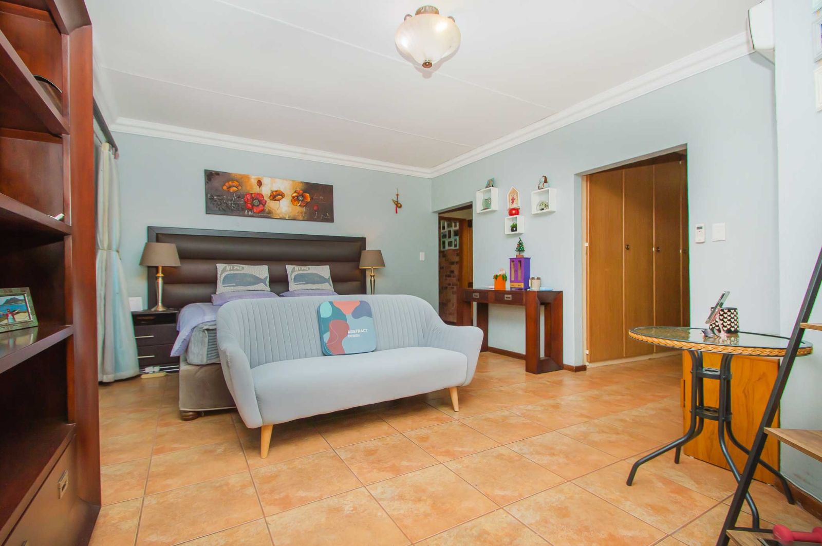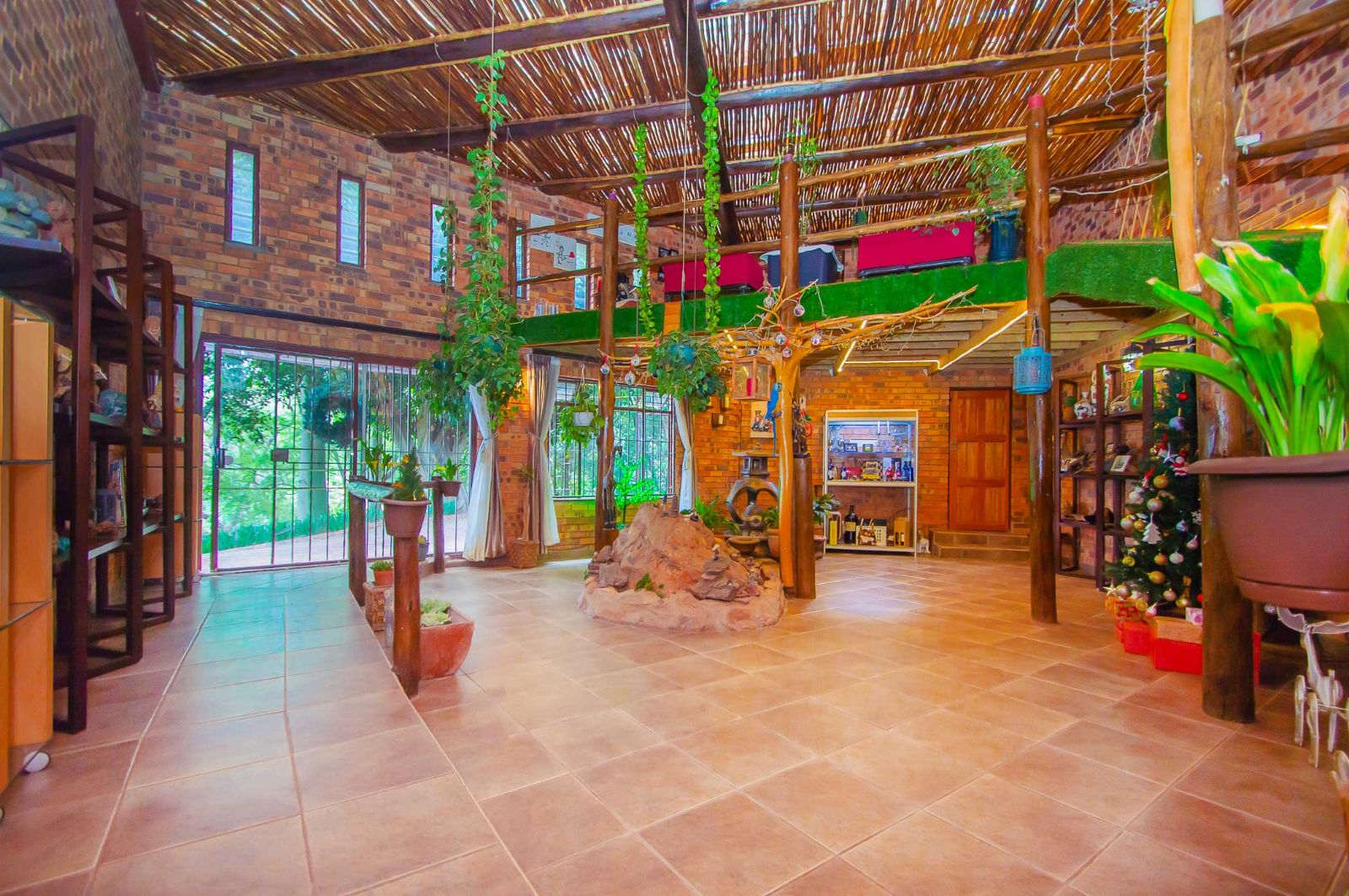 This room flows into the dining room, lounge, family room, and bar which opens up onto the thatched lapa, covered entertainers patio and swimming pool (note: the swimming pool needs resurfacing and repairs)