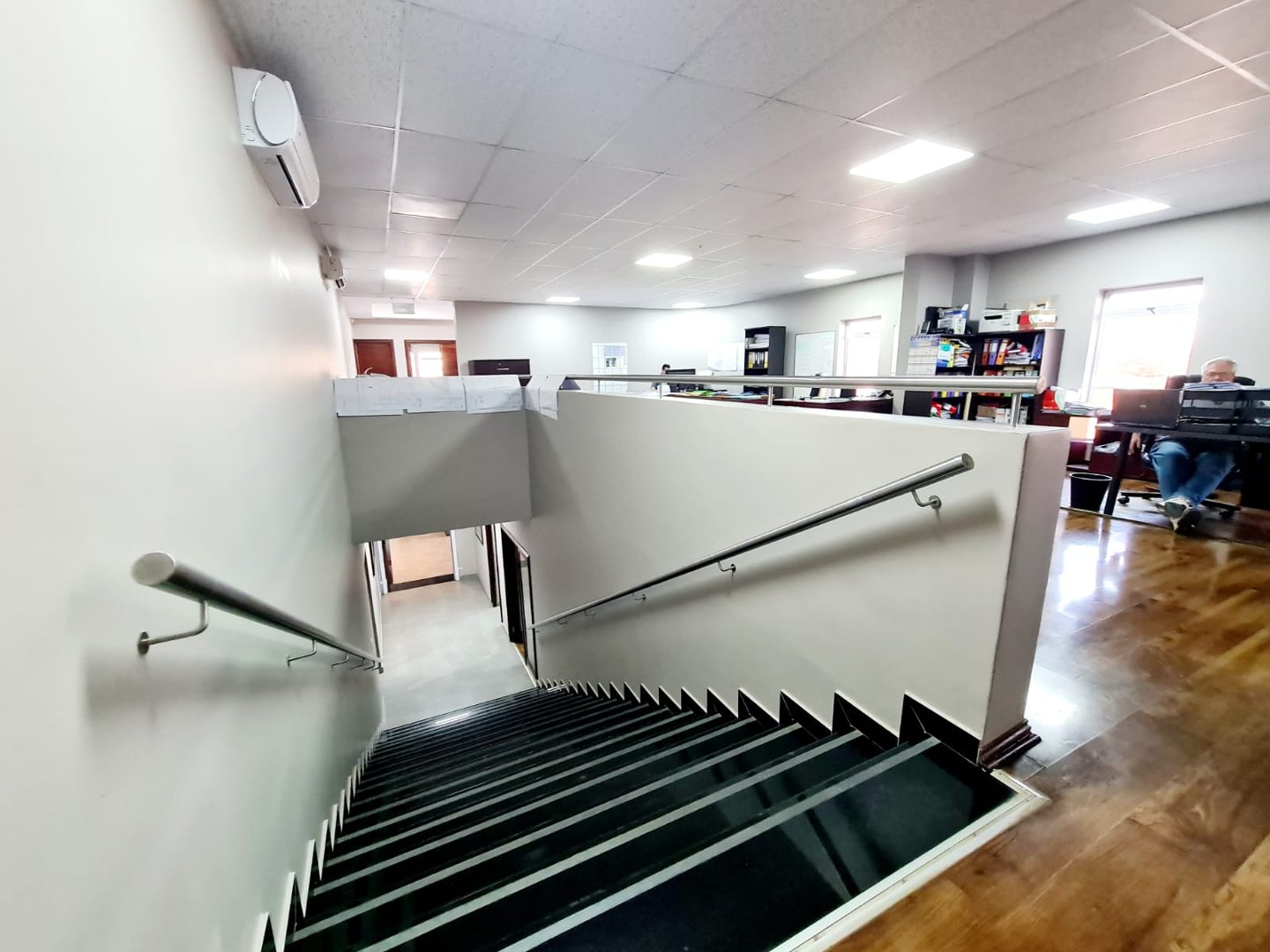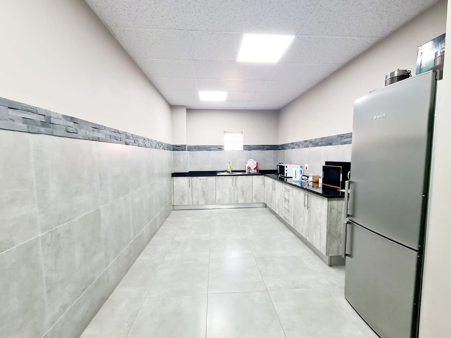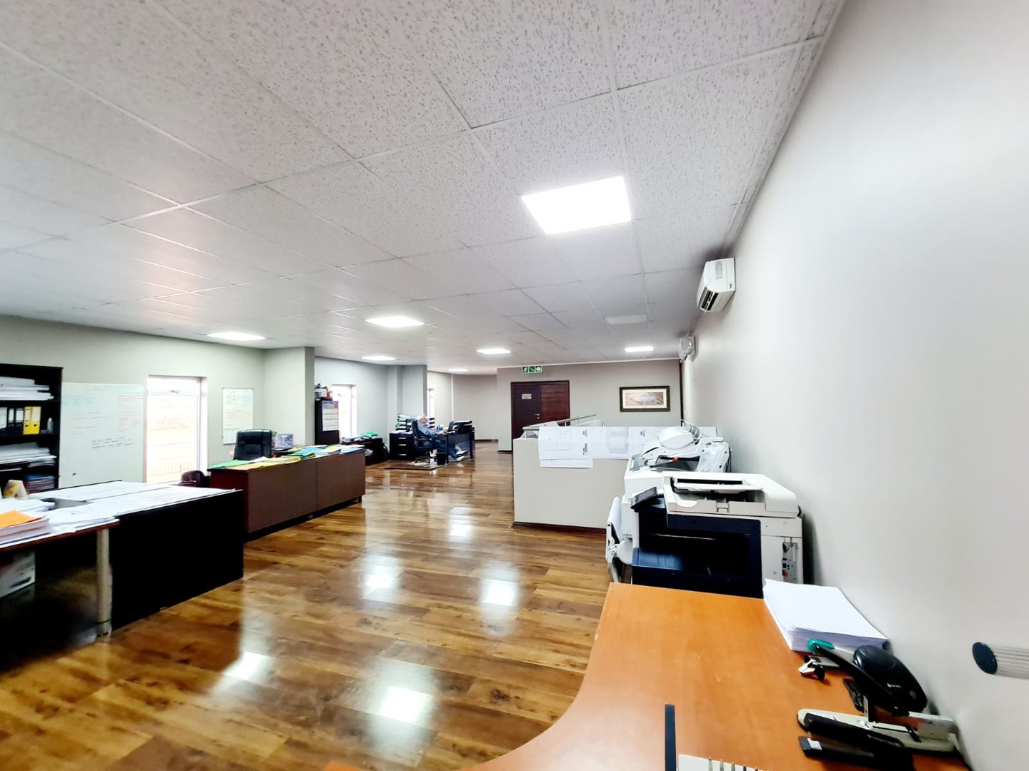 Office Area: 668 square meters comprising a welcoming reception area, two fully-equipped kitchens, two boardrooms, and seven offices. The office space features large windows that allow for ample natural light, air-conditioning, and accessible ablutions for both staff and visitors. The interior is finished with stylish tiled flooring and includes a balcony for additional space.