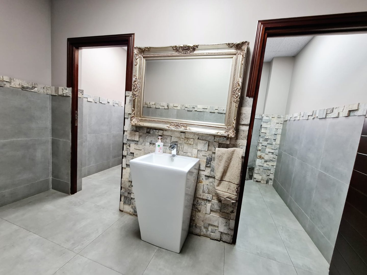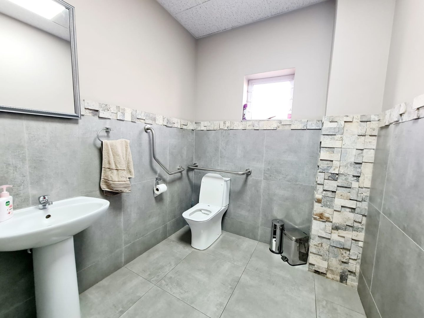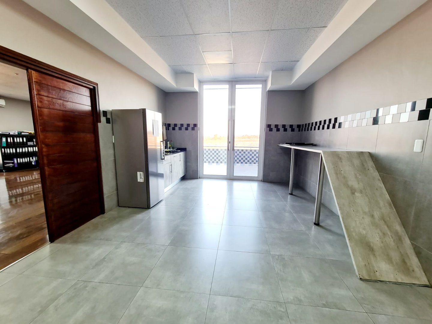 Office Area: 668 square meters comprising a welcoming reception area, two fully-equipped kitchens, two boardrooms, and seven offices. The office space features large windows that allow for ample natural light, air-conditioning, and accessible ablutions for both staff and visitors. The interior is finished with stylish tiled flooring and includes a balcony for additional space.