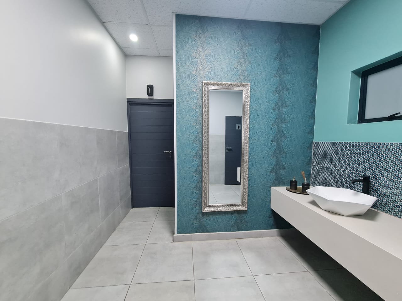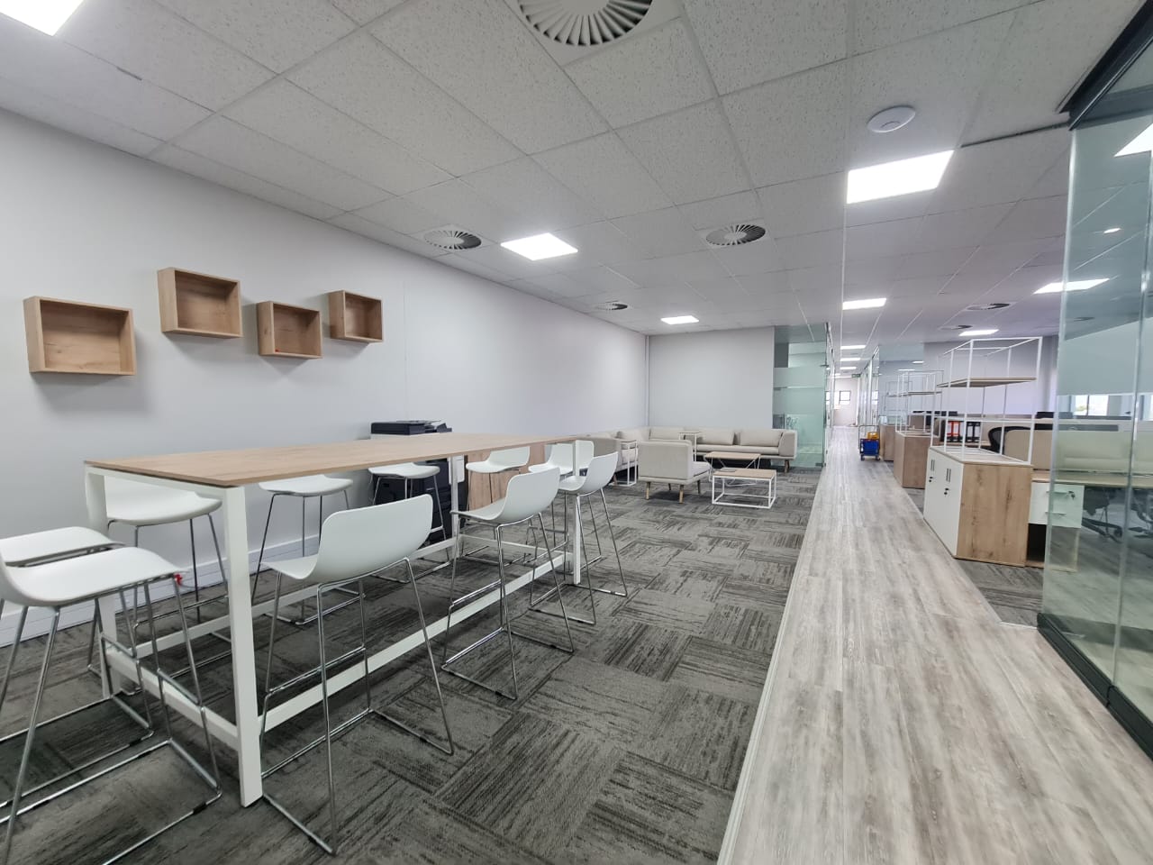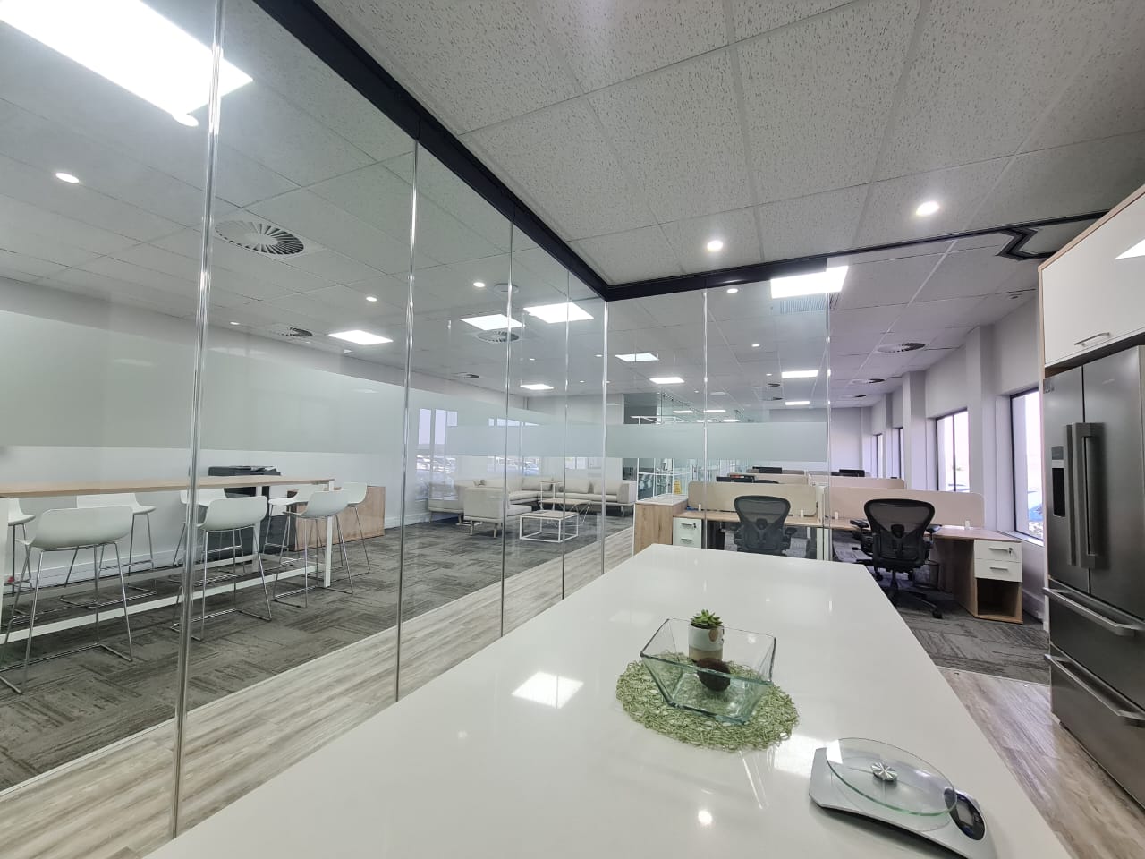 Office Space: The warehouse includes a private office area with a modern reception, open-plan layout, and a private office space. The office area features glass doors that create an open, airy environment, along with two full kitchens (one on each floor) catering to both employees and visitors.