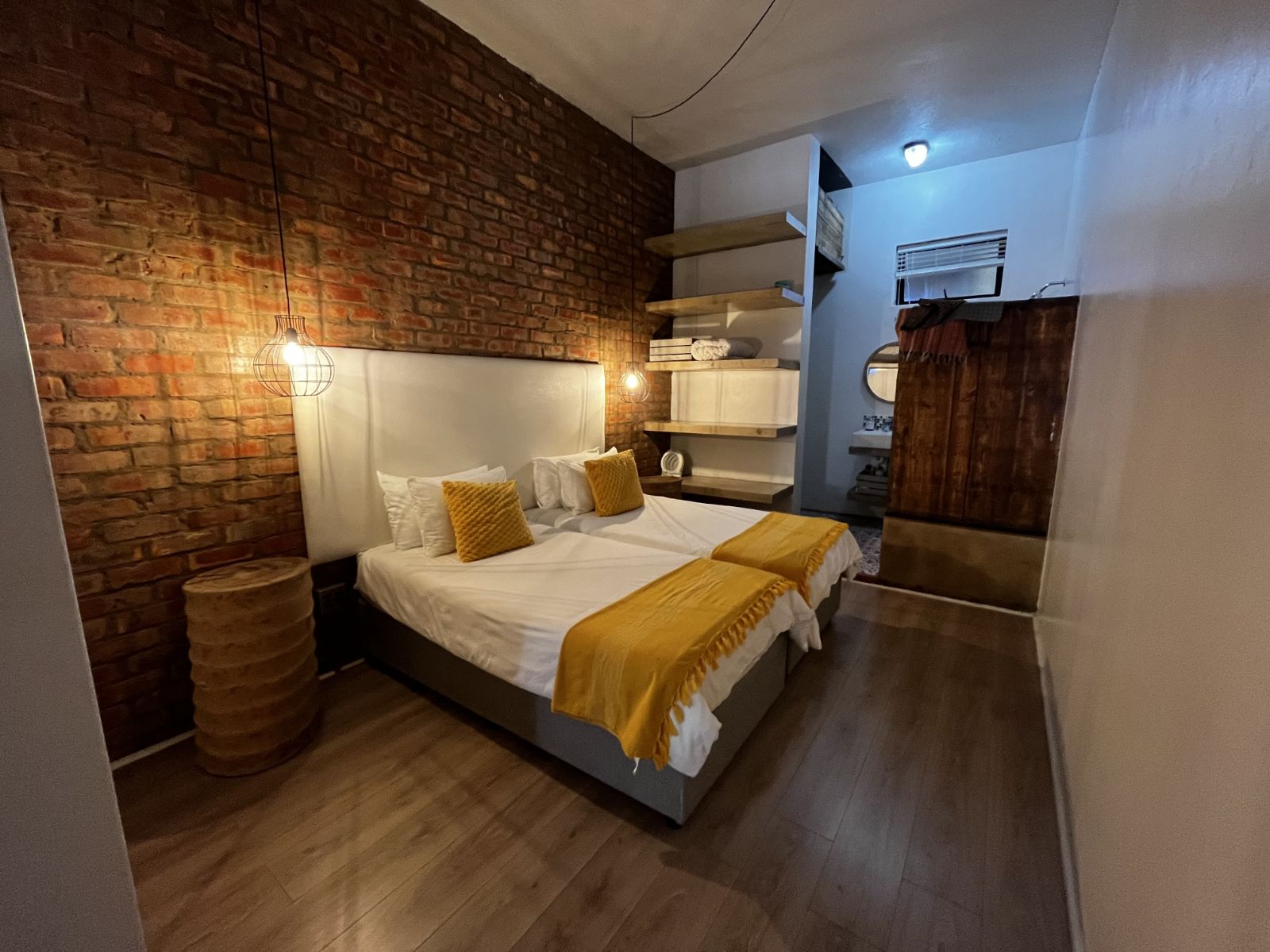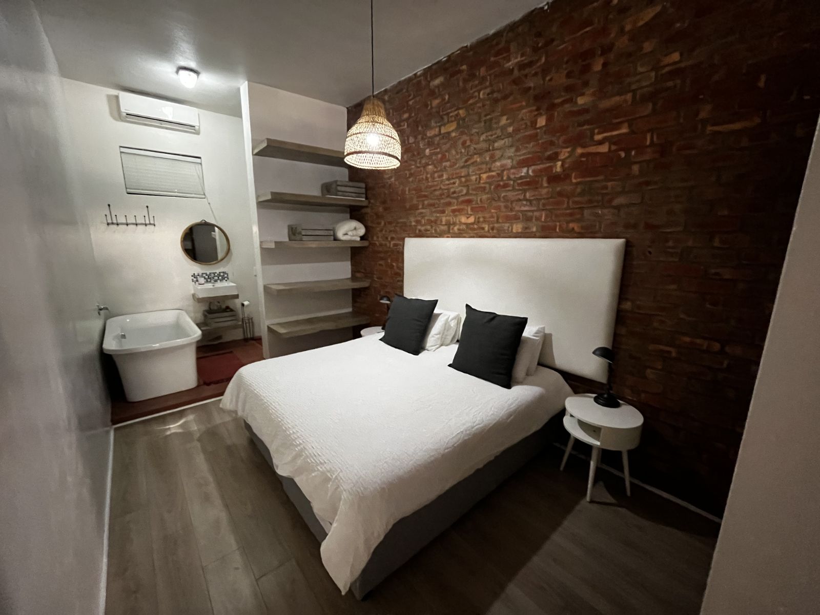 The master bedroom is large, with a brick feature wall, and leads into an en-suite bathroom with a voyeur's bath. The second bedroom is also a king size room, with en-suite bathroom with a shower. Finishes in the unit, are unique, stylish and fit perfectly with the look and feel of the unit.