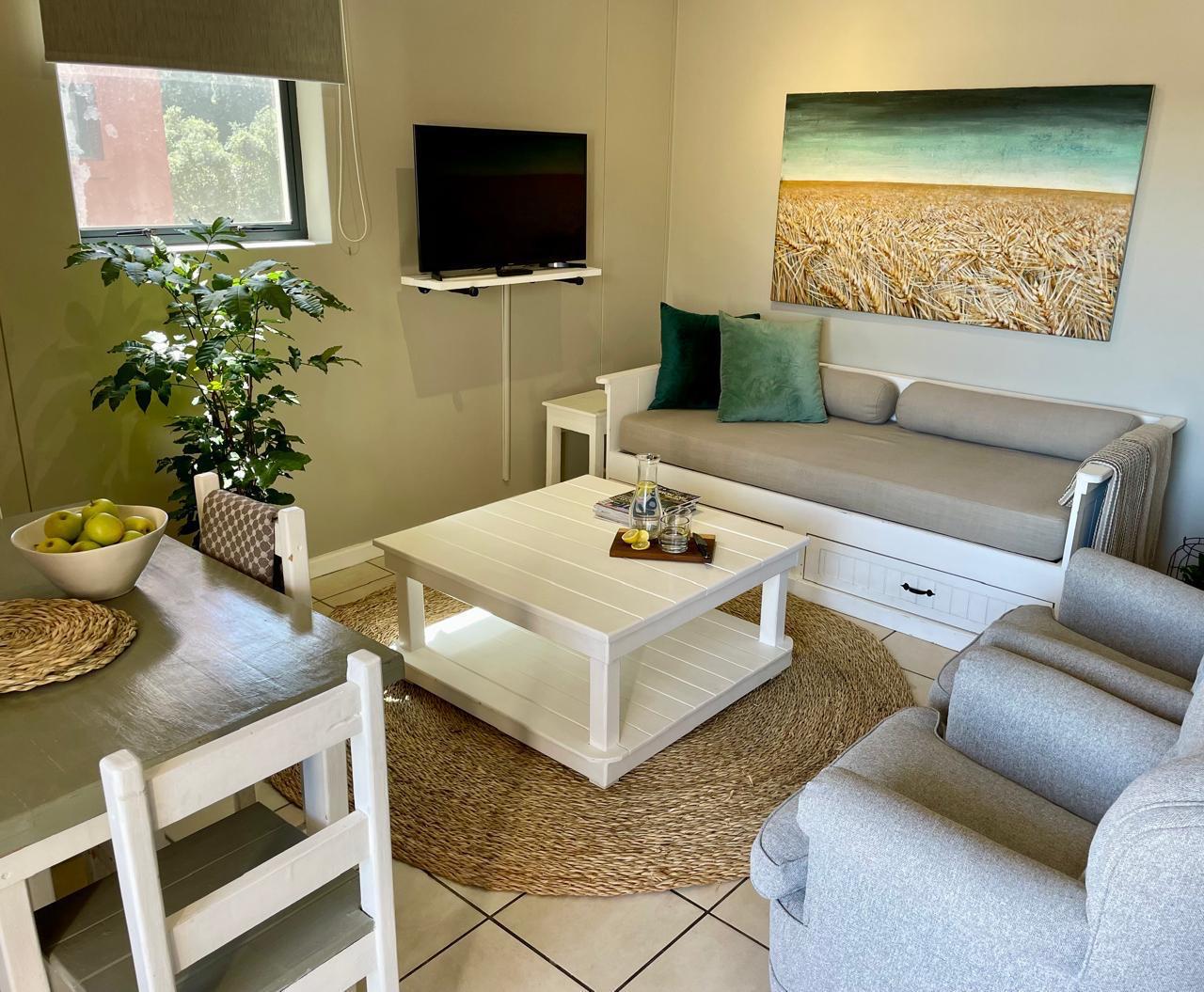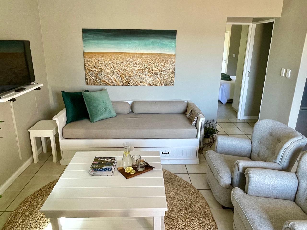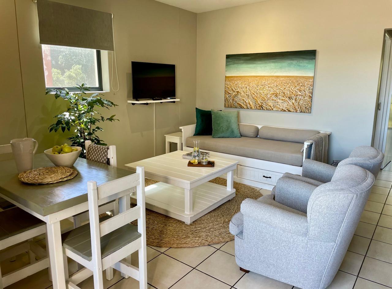 The main bedroom has views into the Pledge Nature Reserve and provides a sense of calm. The apartment is in Upper Central Knysna and close to the centre of town, shopping centres and Main access road. The Knysna Waterfront is a short drive away.