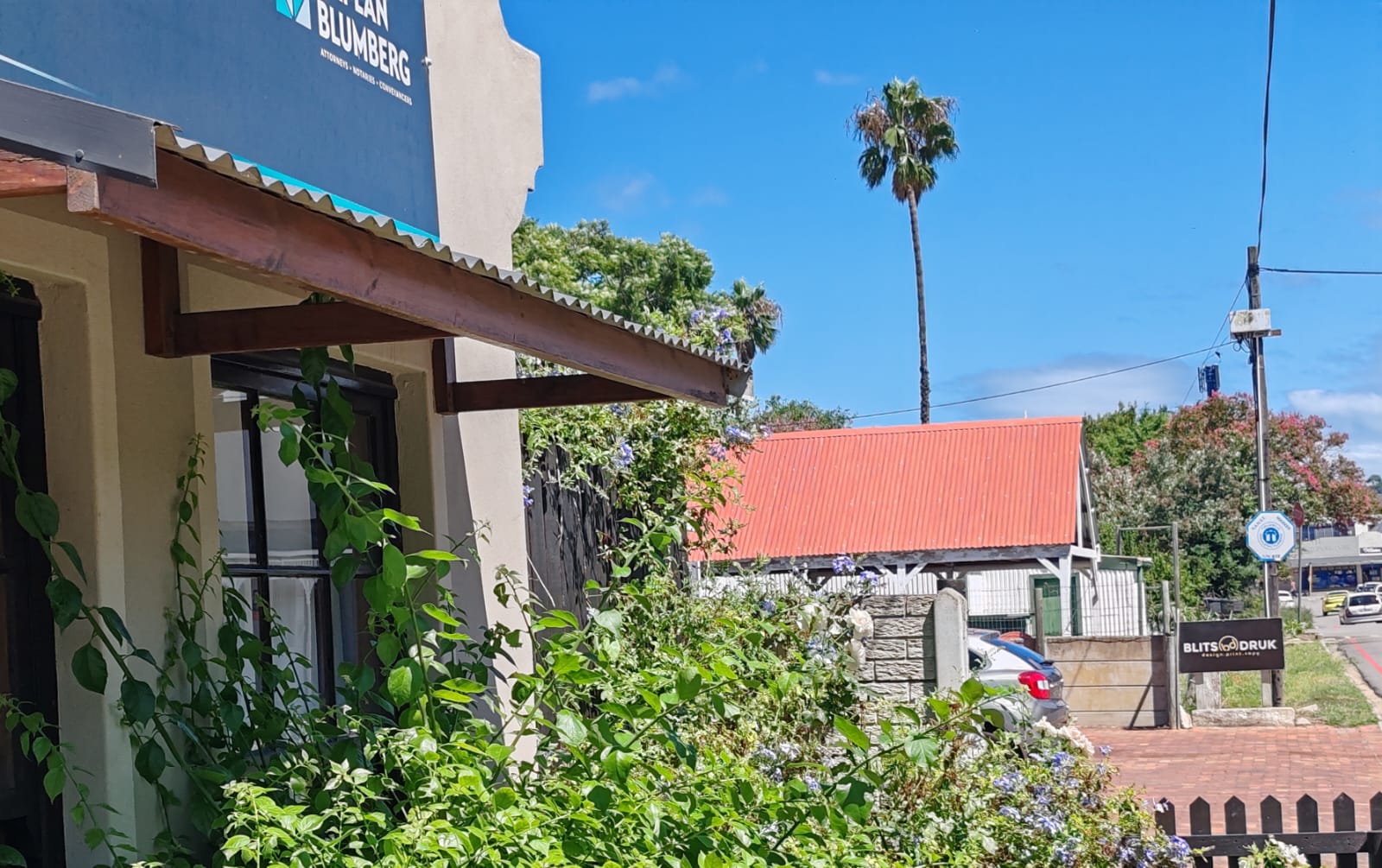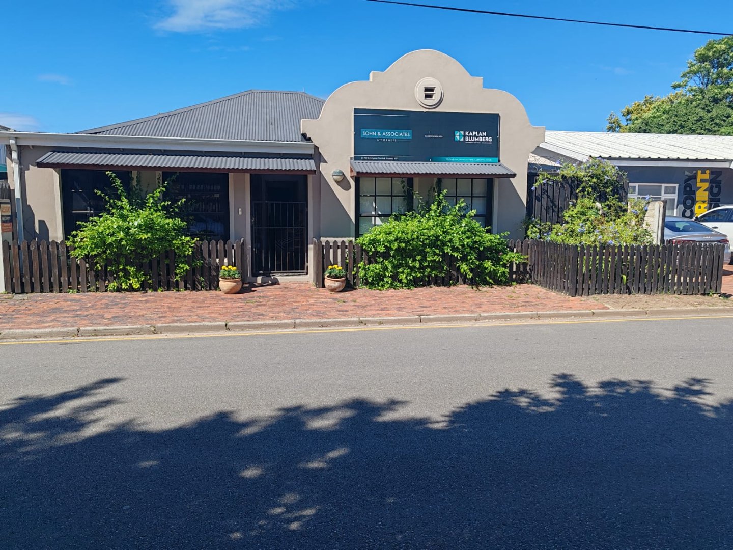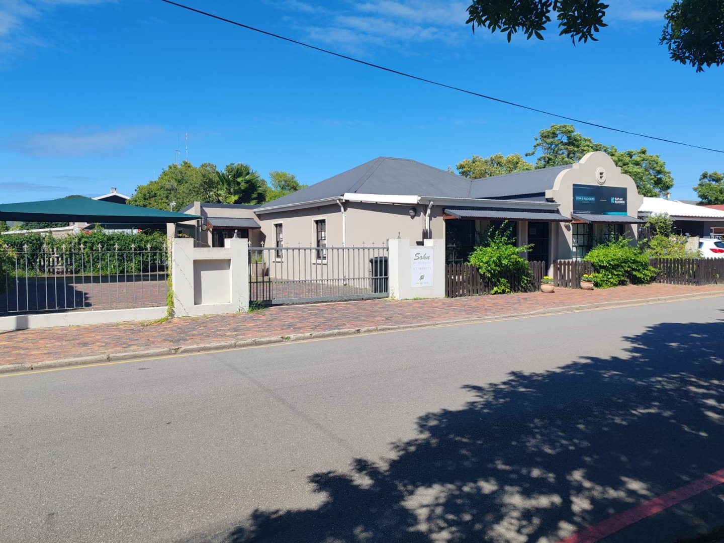 It houses a generous reception, 5 offices, a conference room, kitchen and WC, fitted with classic stone or sisal flooring paired with a modern wainscoting and downlights throughout. Modern conveniences include air-conditioning, inverters, roller blinds throughout, gas geyser and remote entry, whilst maintaining the charm of traditional sash-windows, French doors, the quintessential Gable in simplified format, ideal for signage and the attractive creepers and planters.