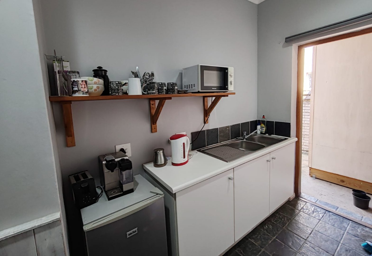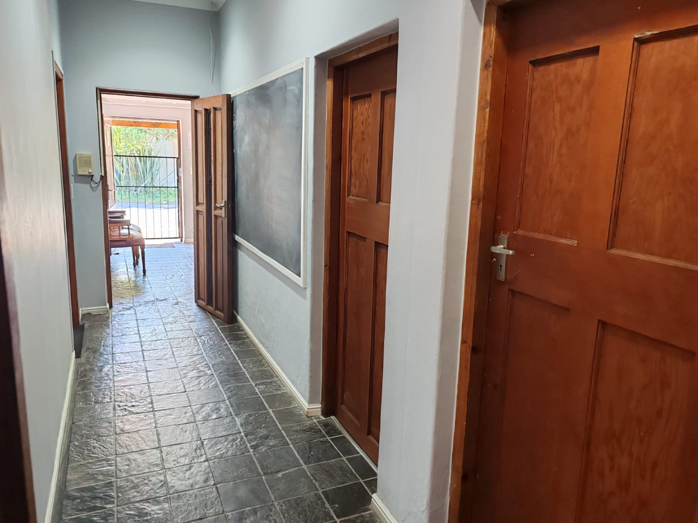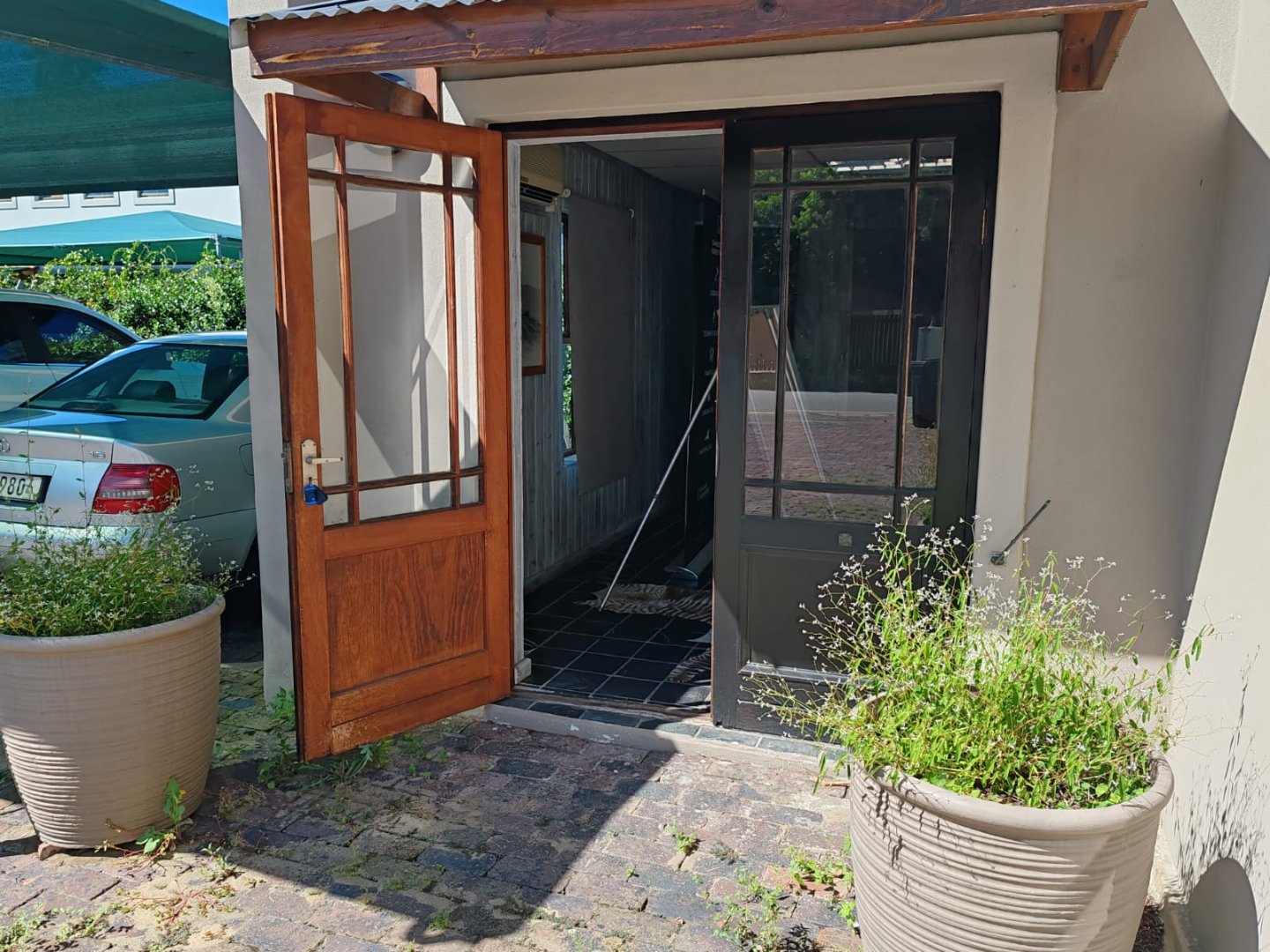 It houses a generous reception, 5 offices, a conference room, kitchen and WC, fitted with classic stone or sisal flooring paired with a modern wainscoting and downlights throughout. Modern conveniences include air-conditioning, inverters, roller blinds throughout, gas geyser and remote entry, whilst maintaining the charm of traditional sash-windows, French doors, the quintessential Gable in simplified format, ideal for signage and the attractive creepers and planters.
