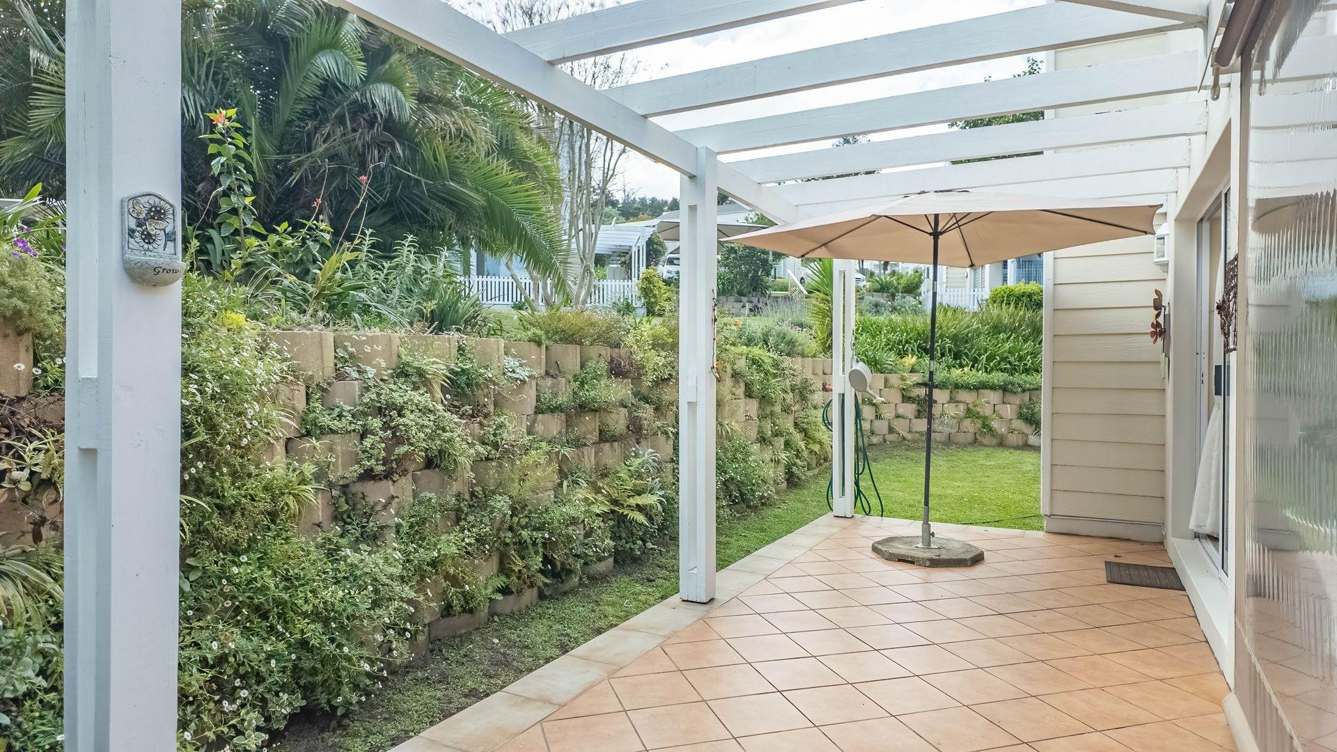 The lounge opens out onto a private patio fitted with drop-down blinds, creating the perfect spot to relax or entertain in any season. The patio leads to a tidy private garden, complemented by a small back yard.
