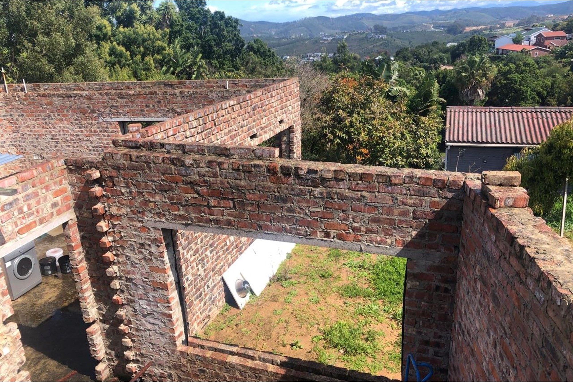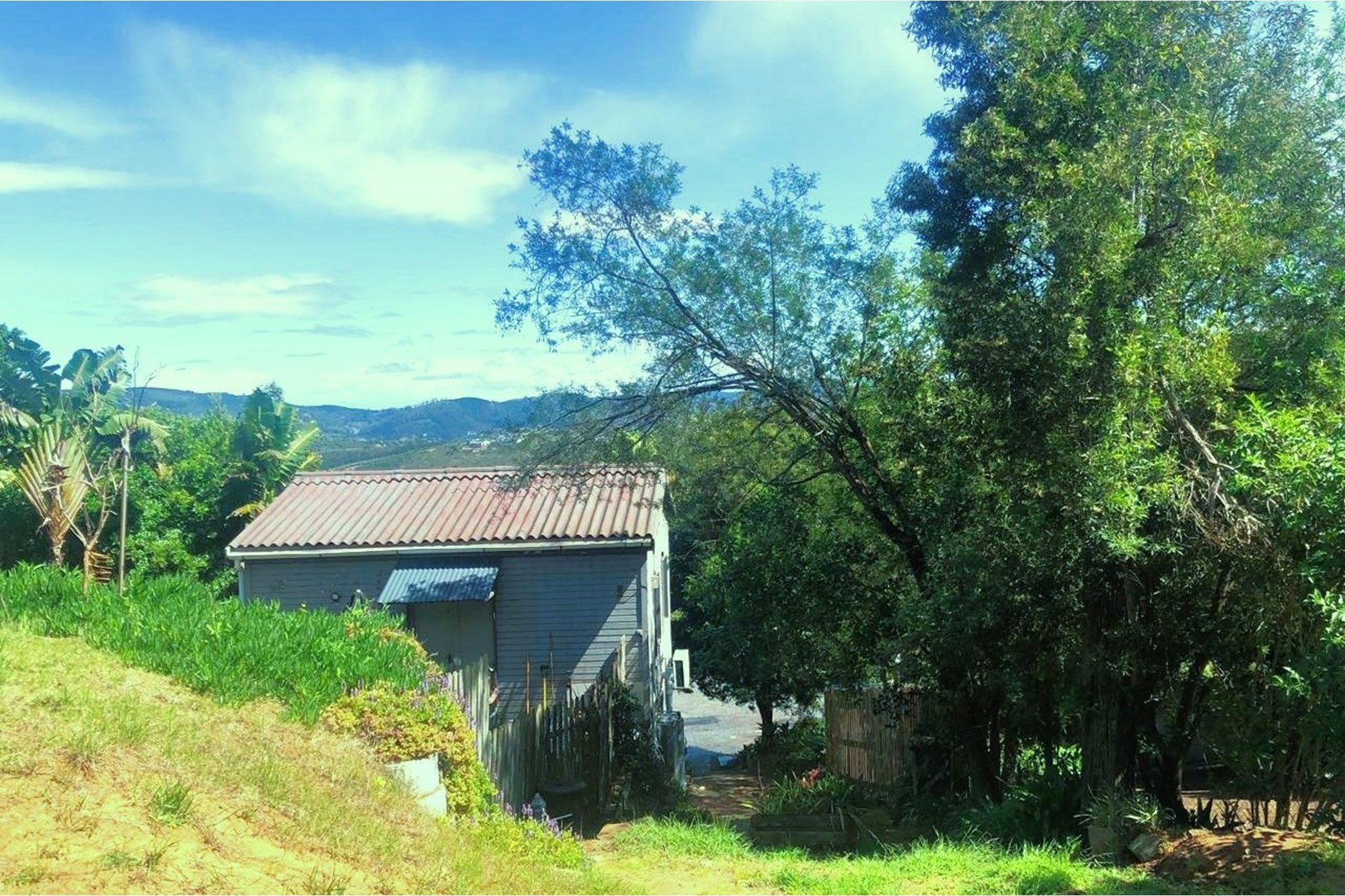 APARTMENT ABOVE DOUBLE GARAGE - This building is on street level and already built and currently inhabited. Suitable for airbnb / office when the main house has been completed, this apartment has lovely open views of the Outeniqua Mountain range and is surrounded by indigenous trees and abundant bird life.